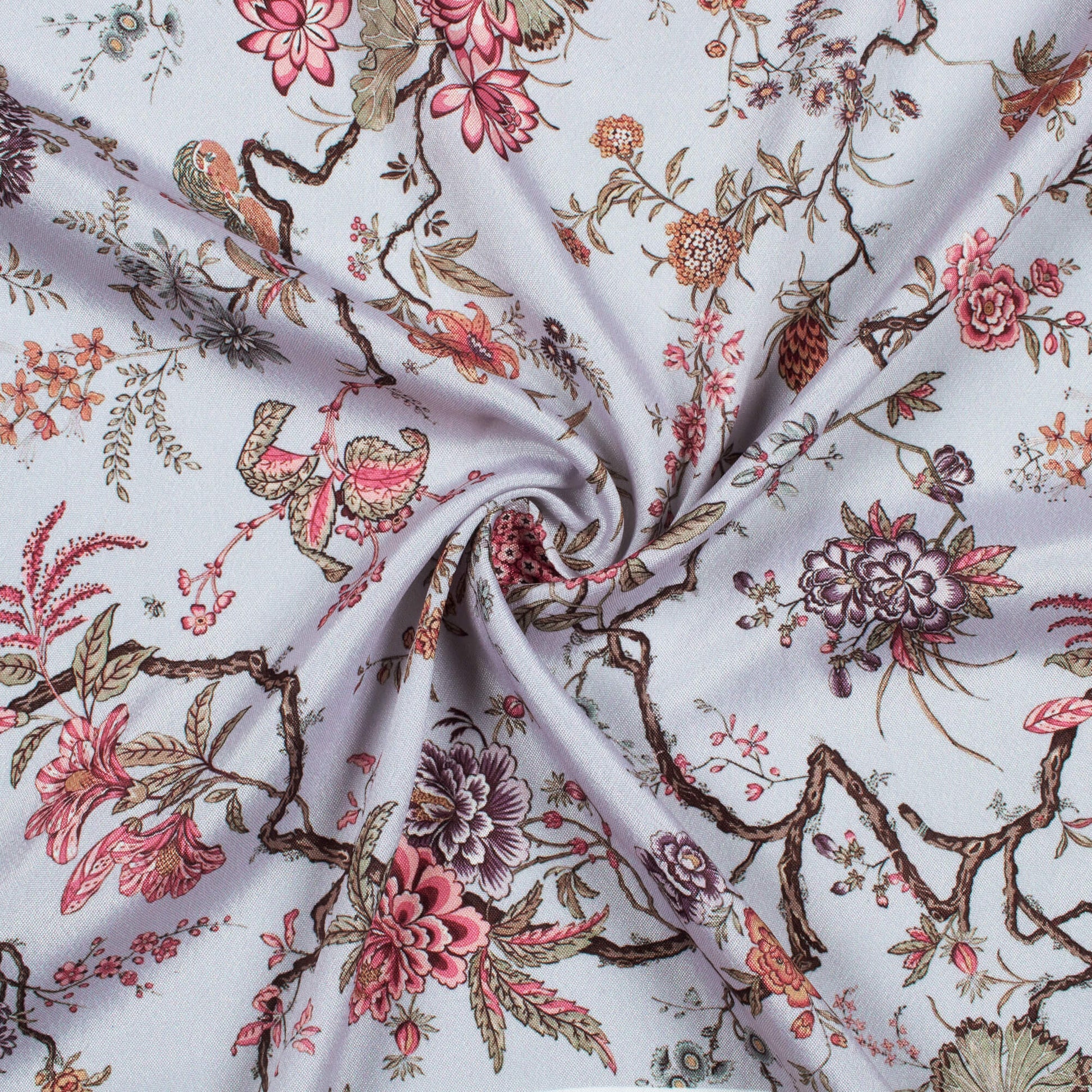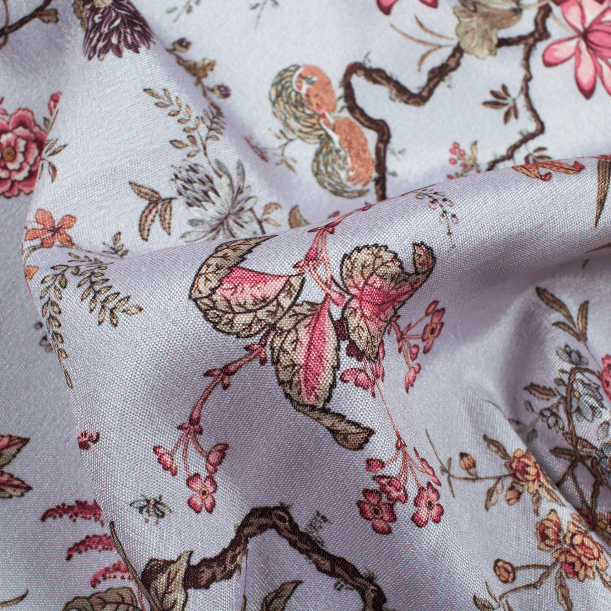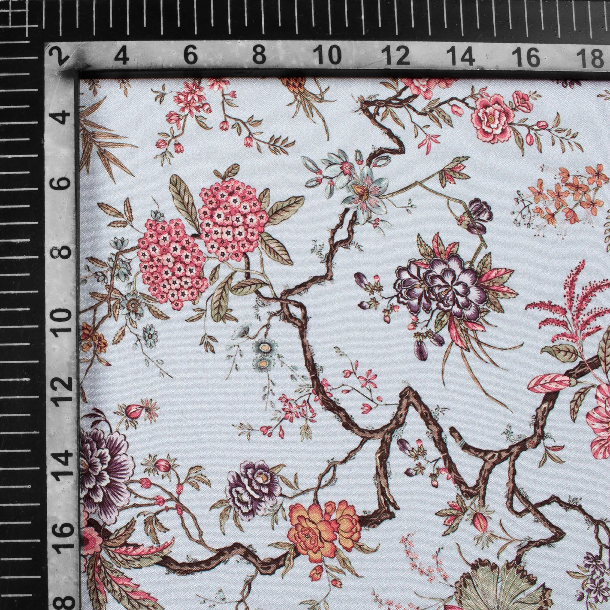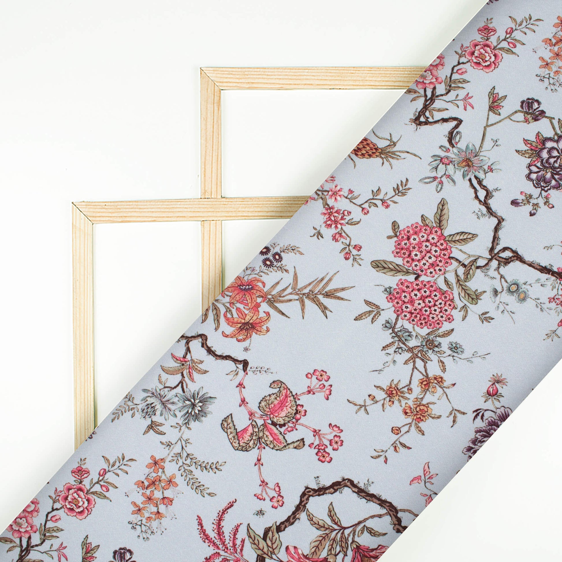 Pearl Grey And Pink Floral Pattern Digital Print Crepe Silk Fabric