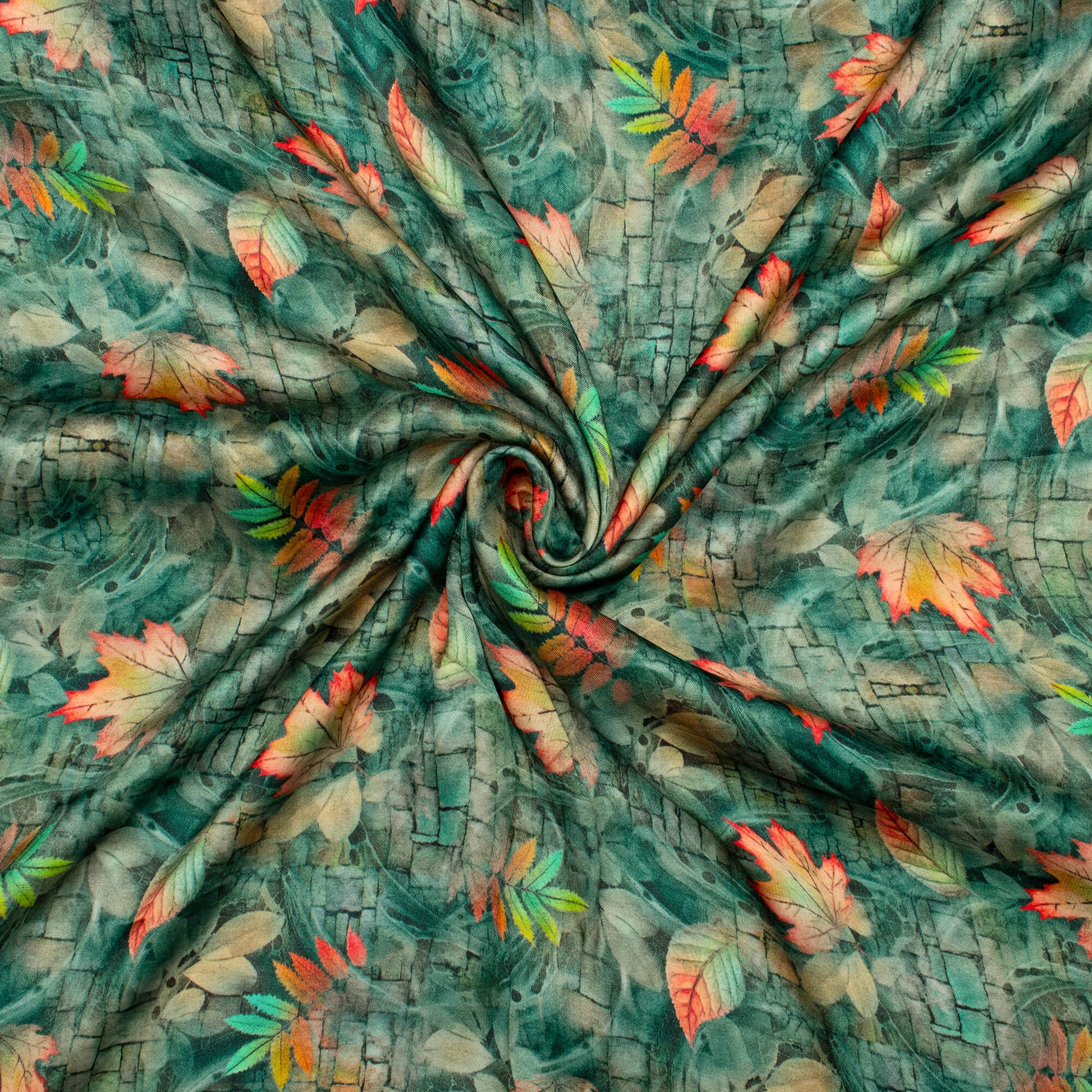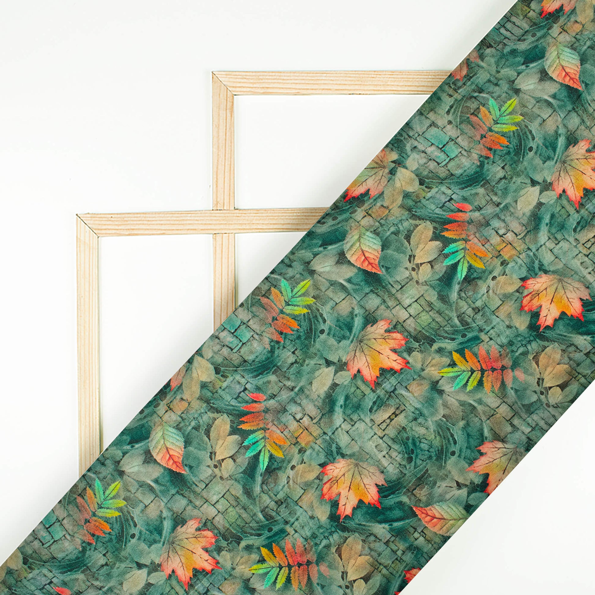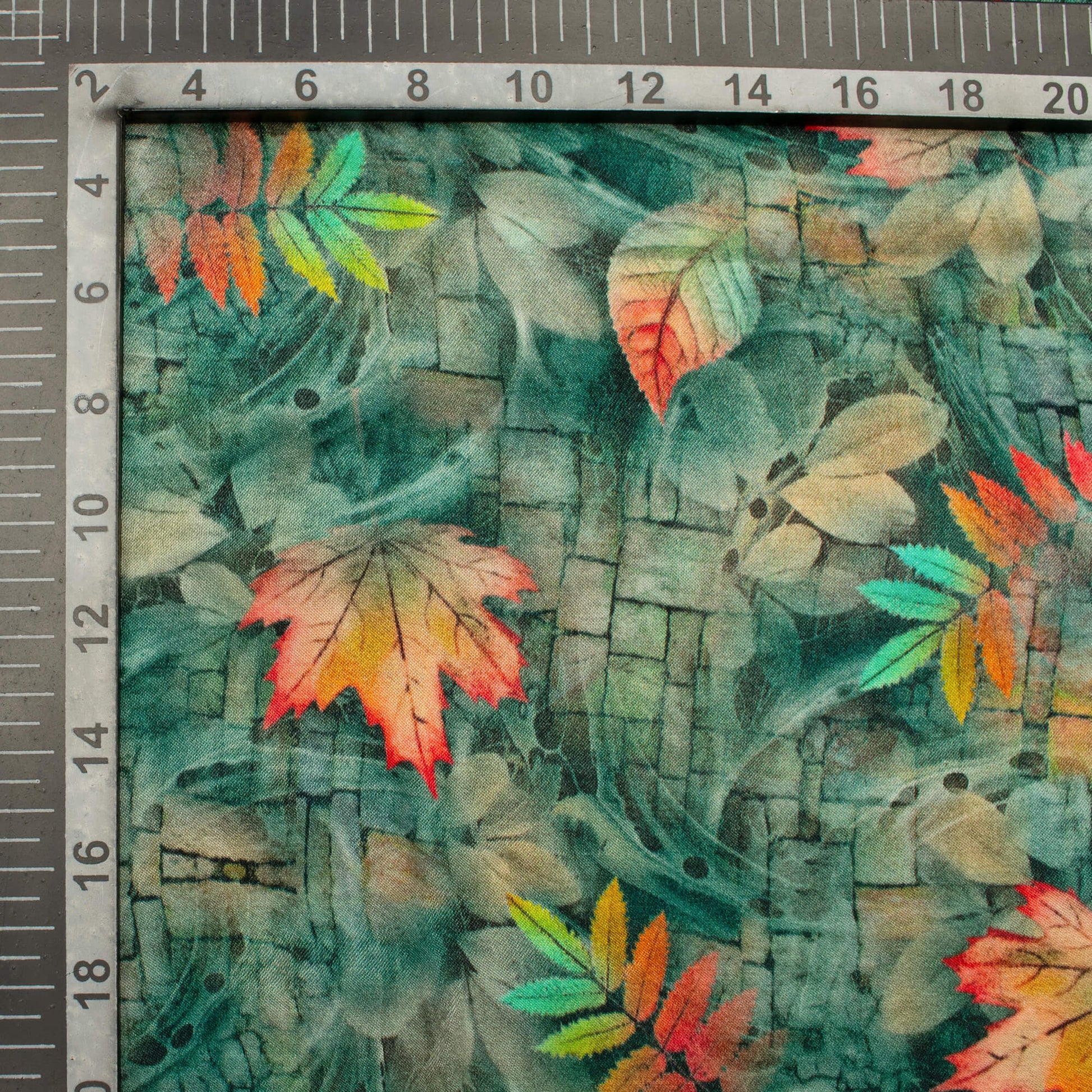 Pine Green And Pink Leaf Pattern Digital Print Viscose Gaji Silk Fabric