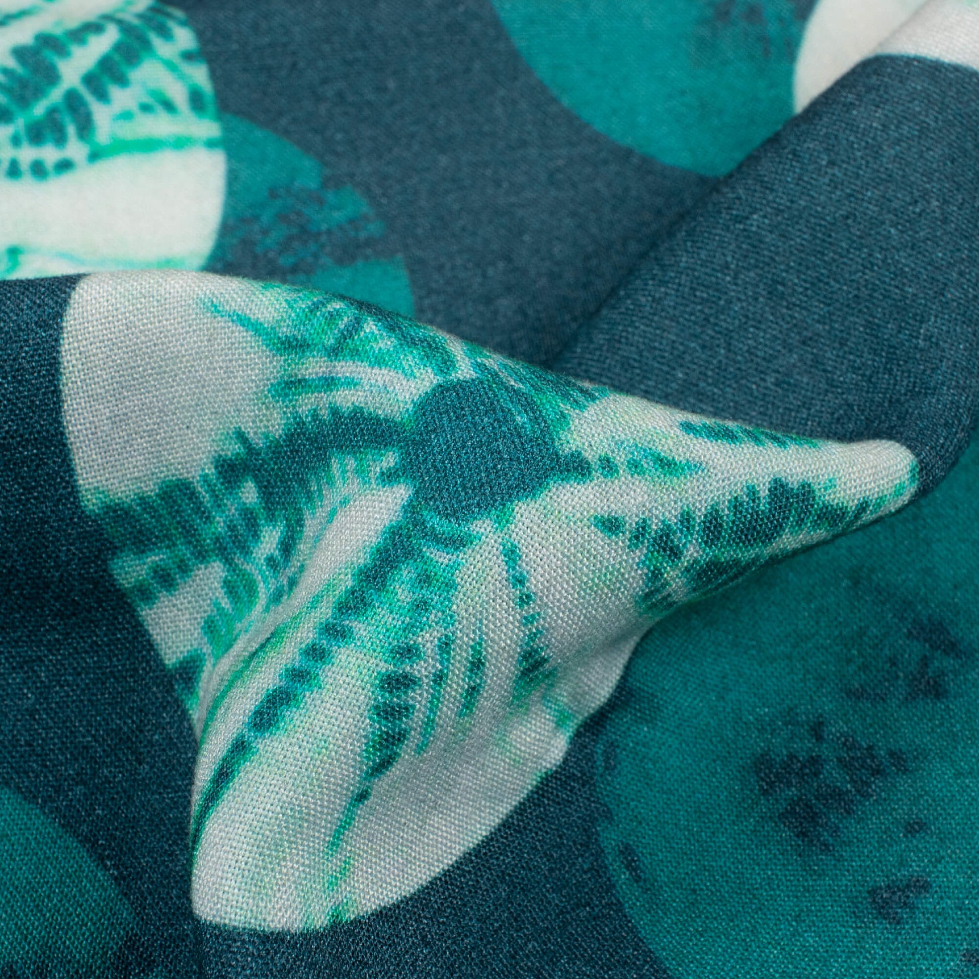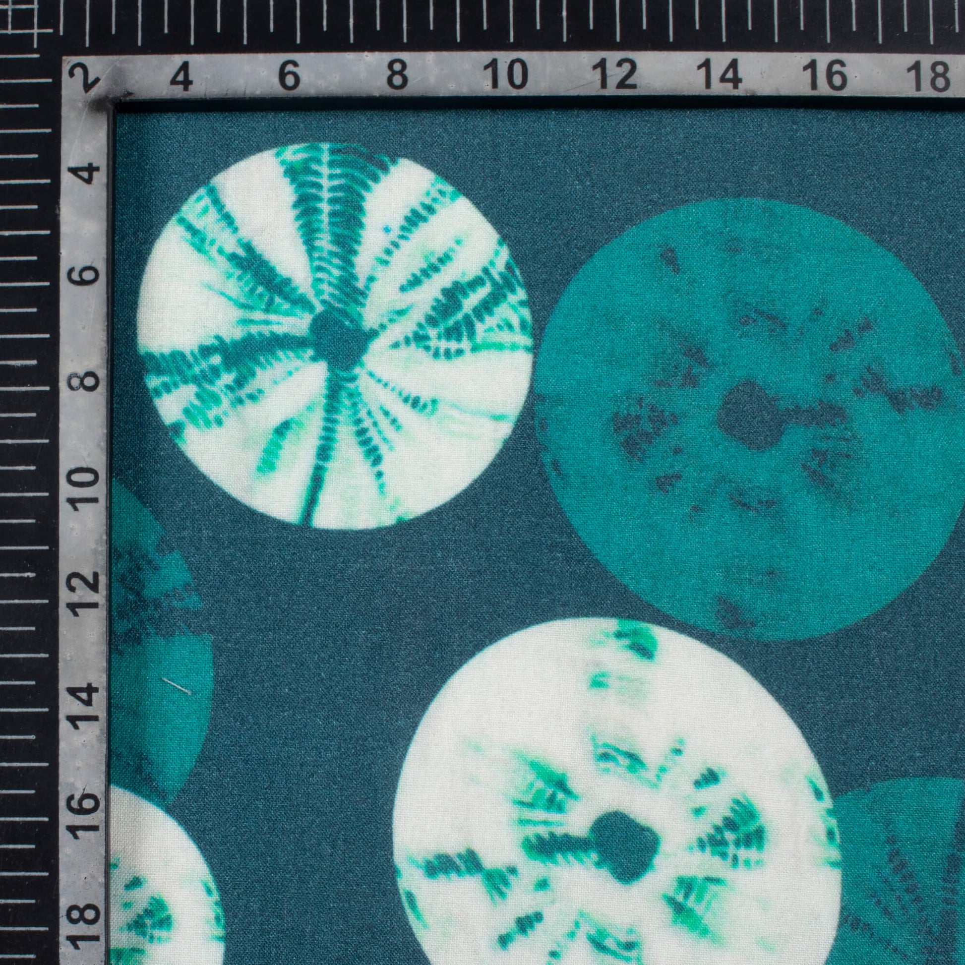 Pine Green And White Shiiborii Pattern Digital Print Viscose Rayon Fabric (Width 58 Inches)