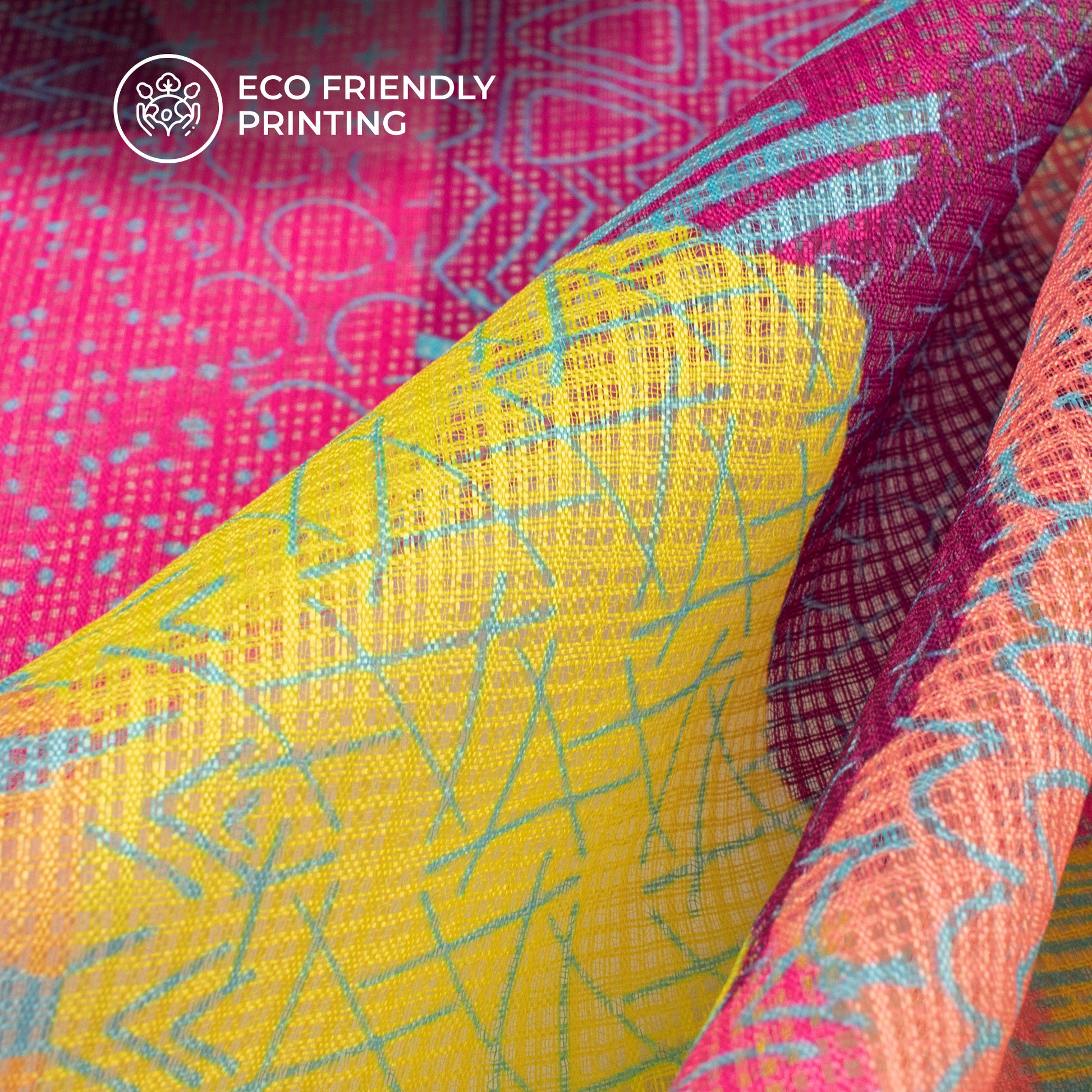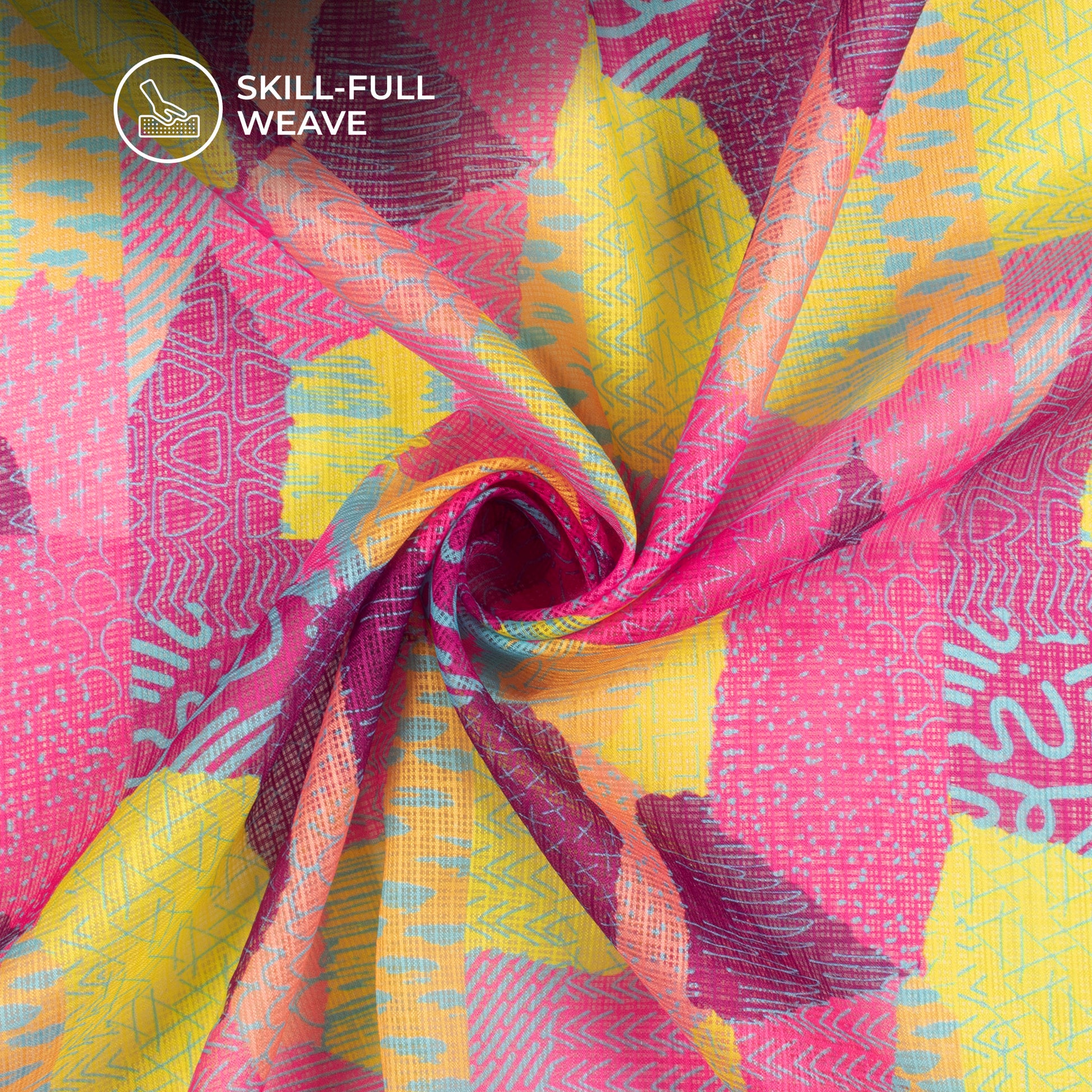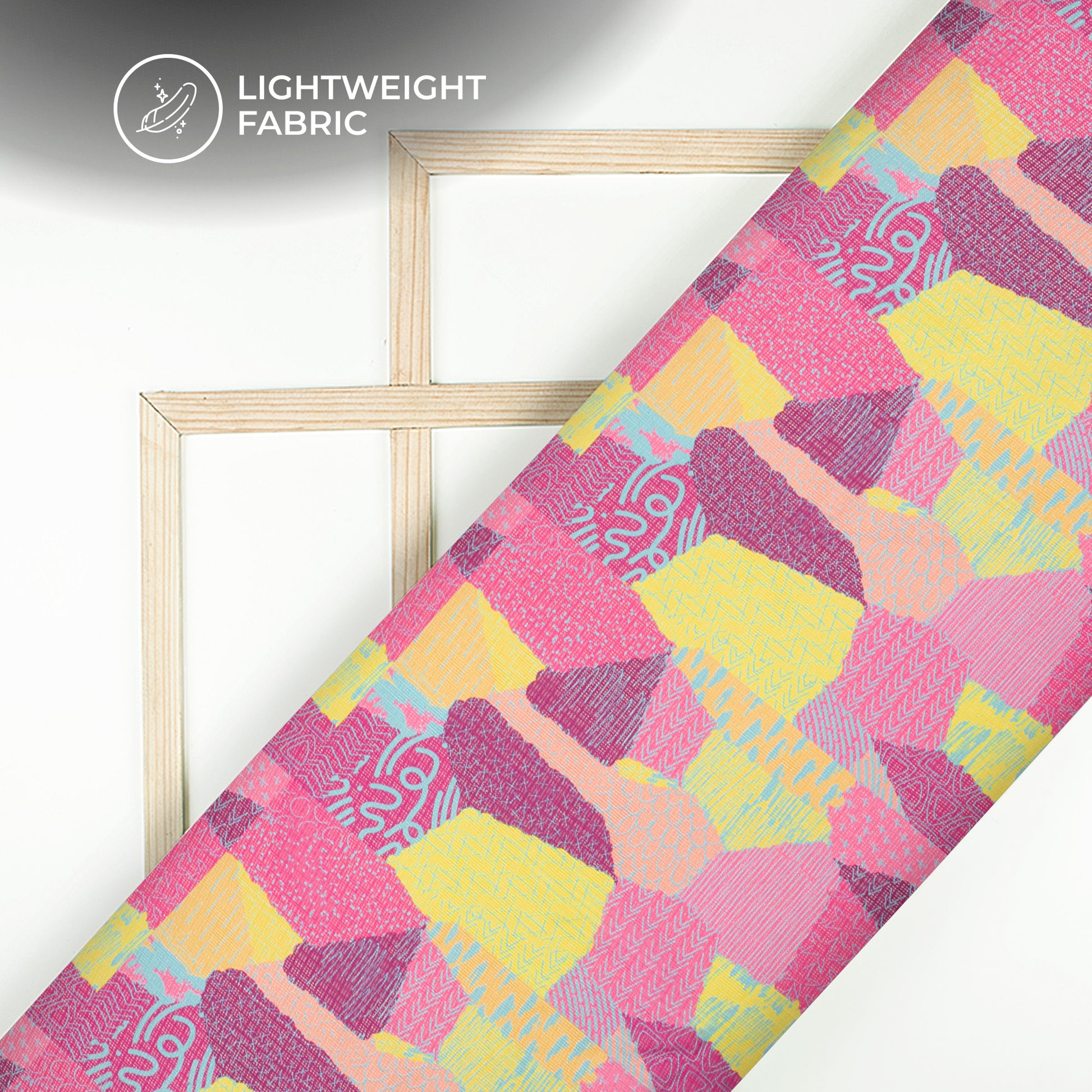 Pink Abstract Quirky Digital Print Kota Doria Fabric