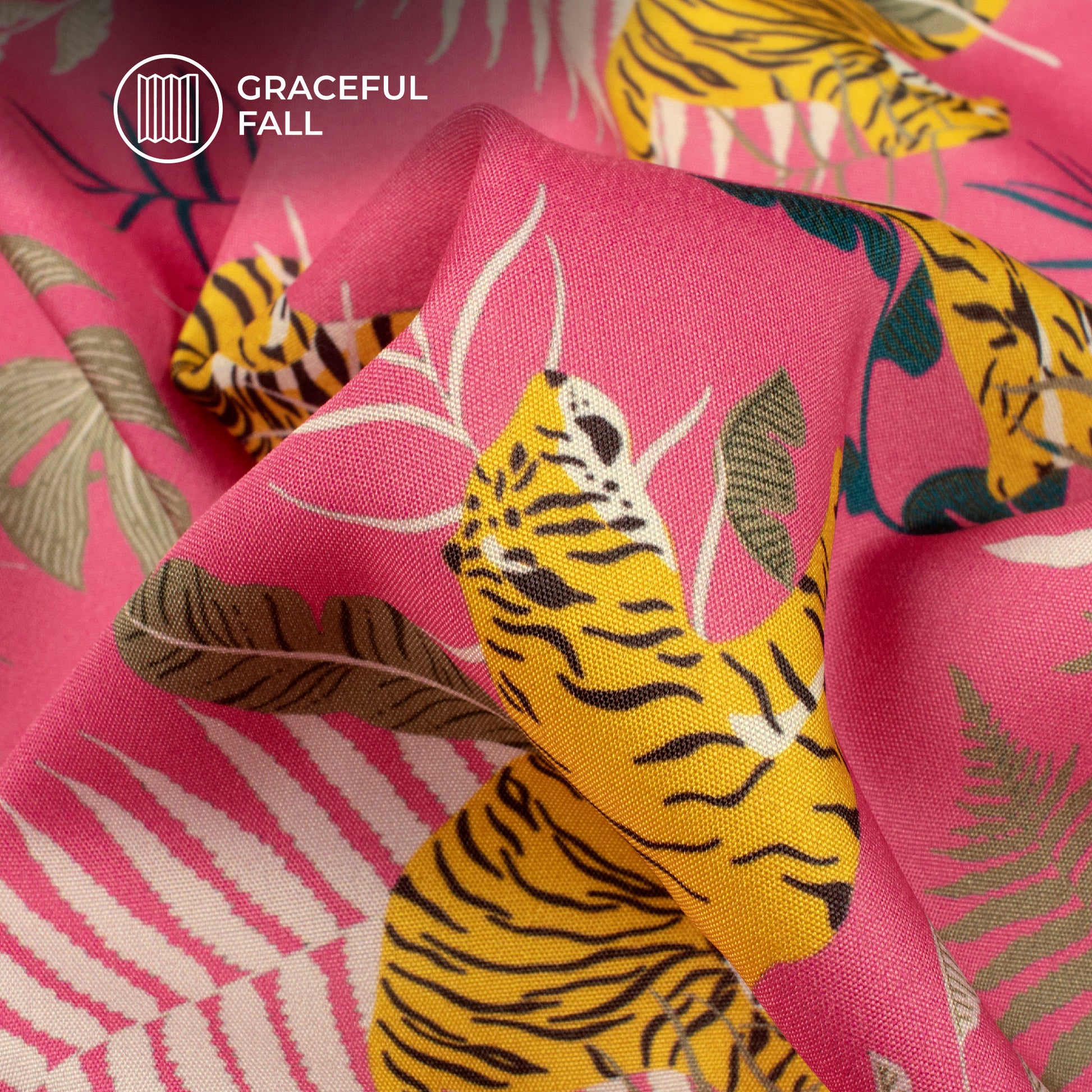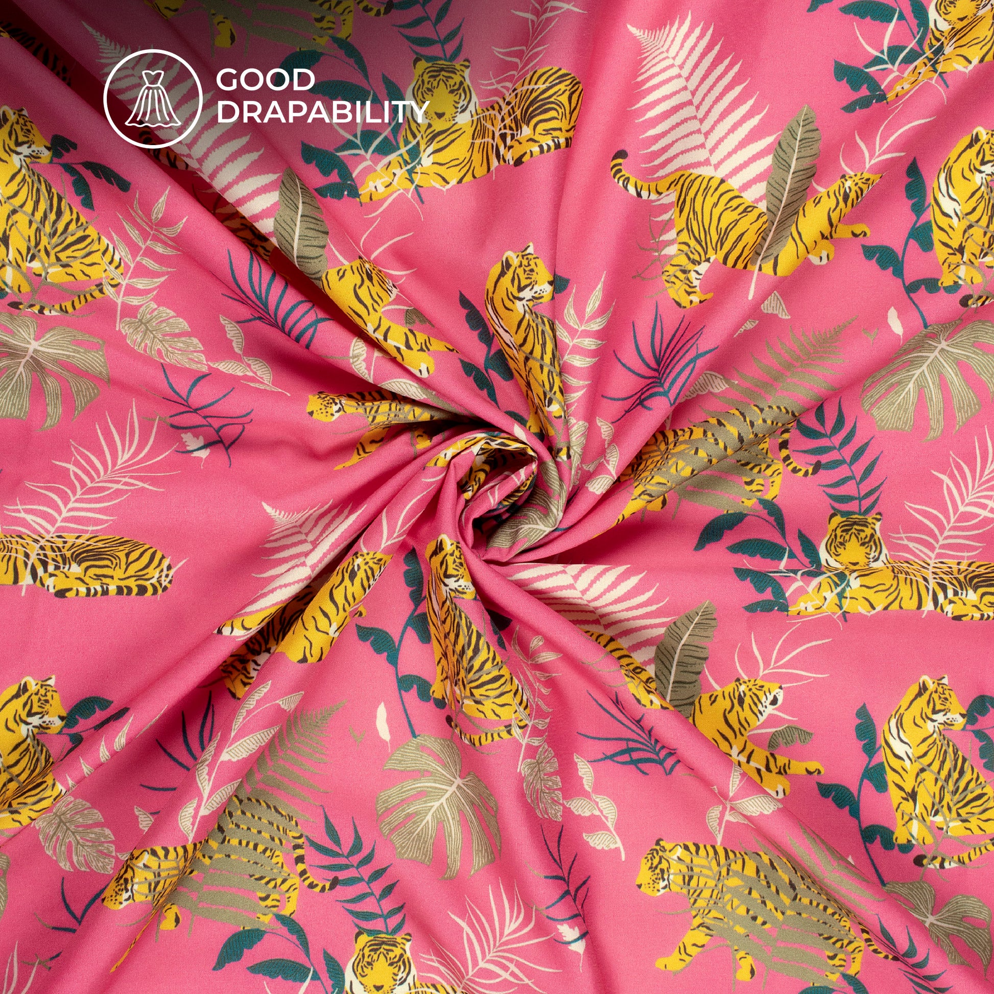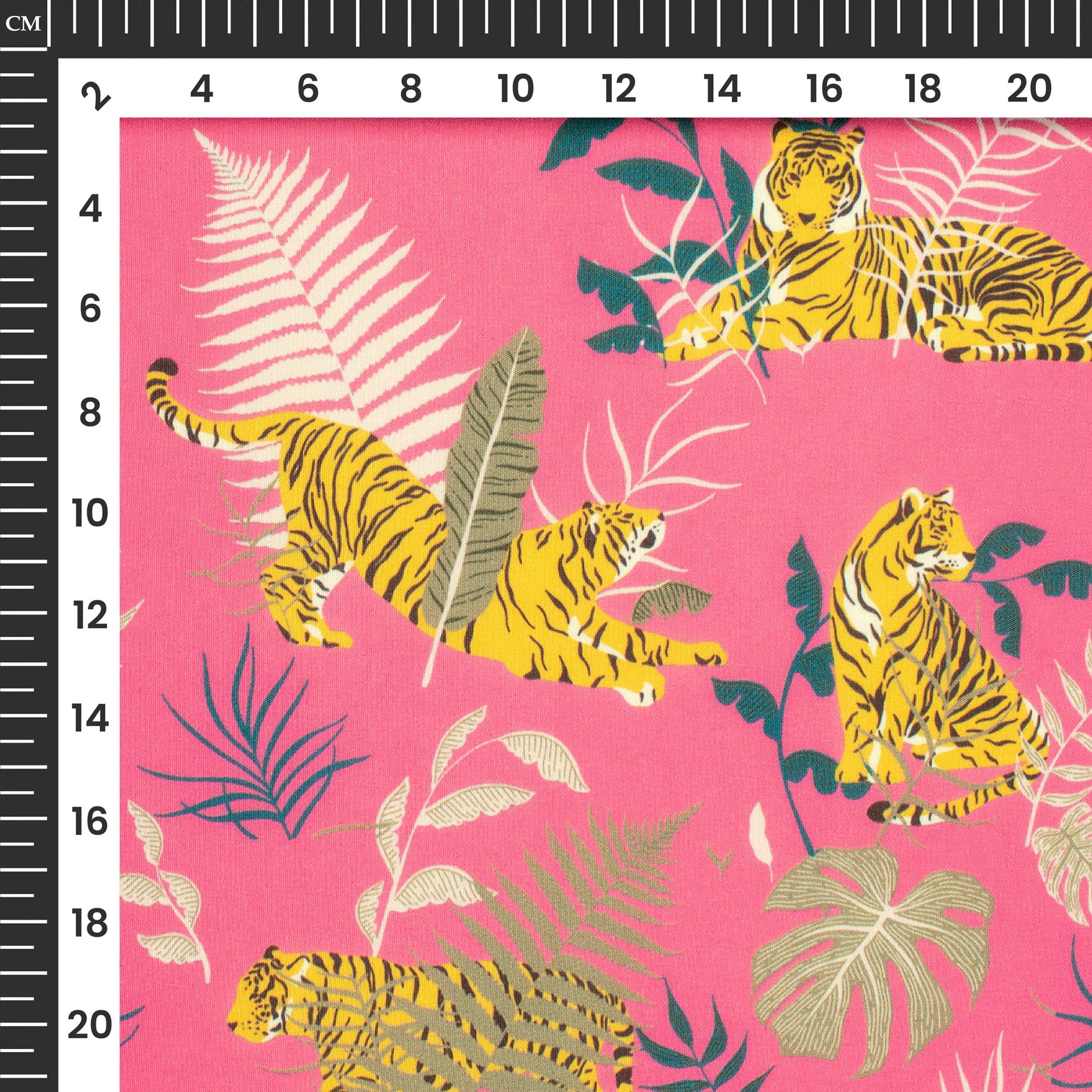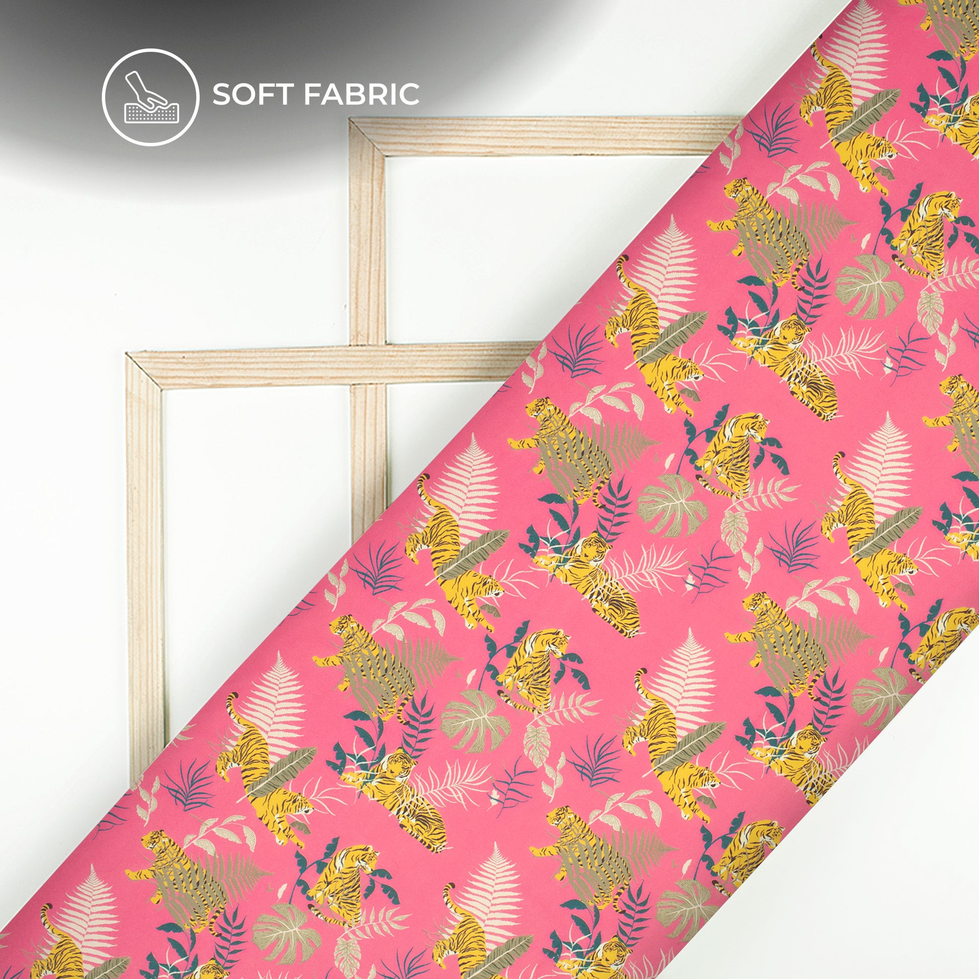 Pink And Yellow Tiger Digital Print Butter Crepe Fabric