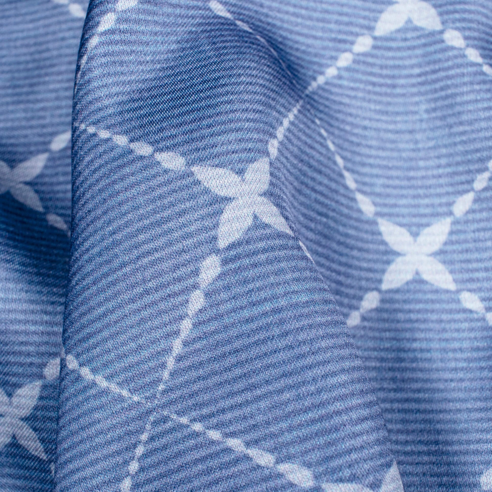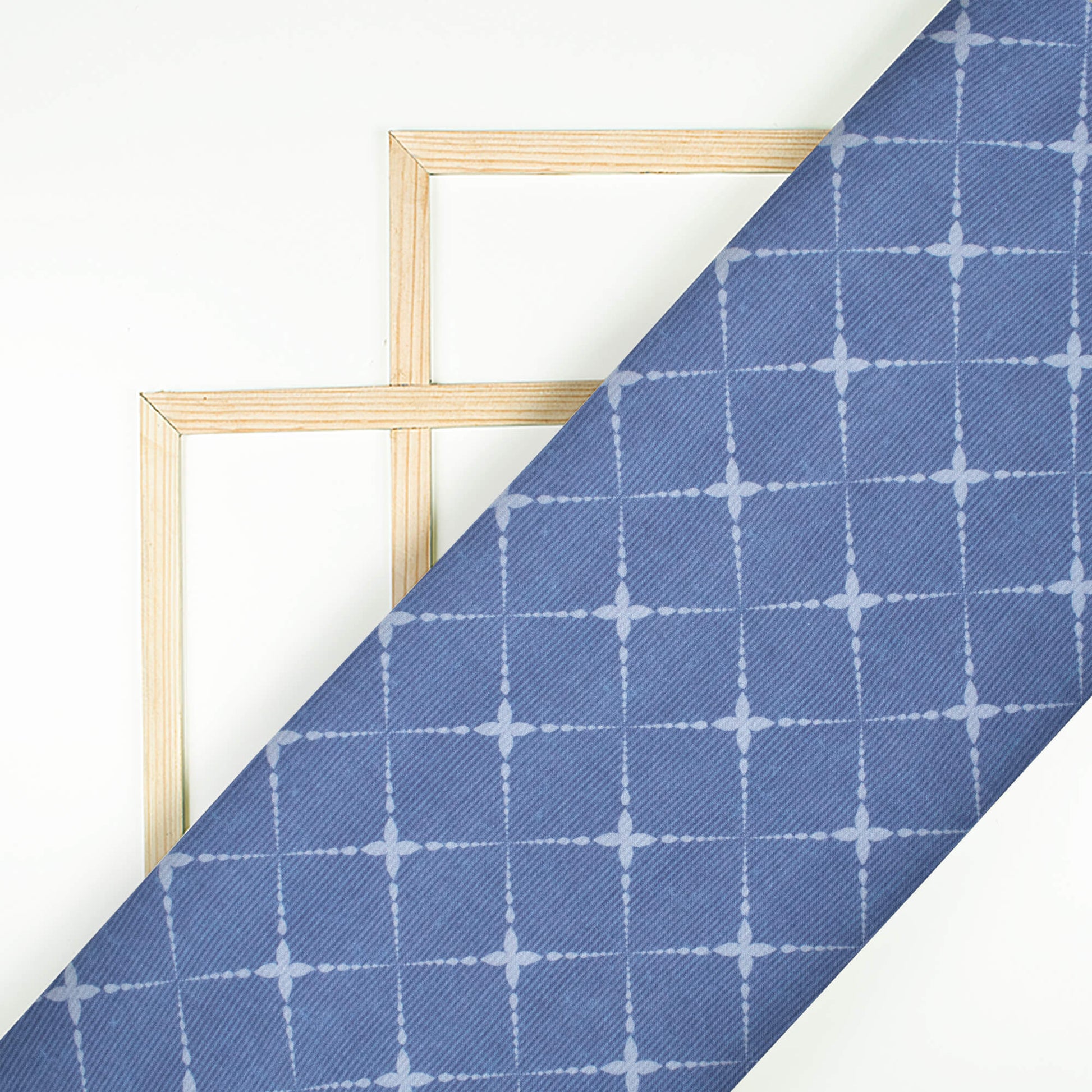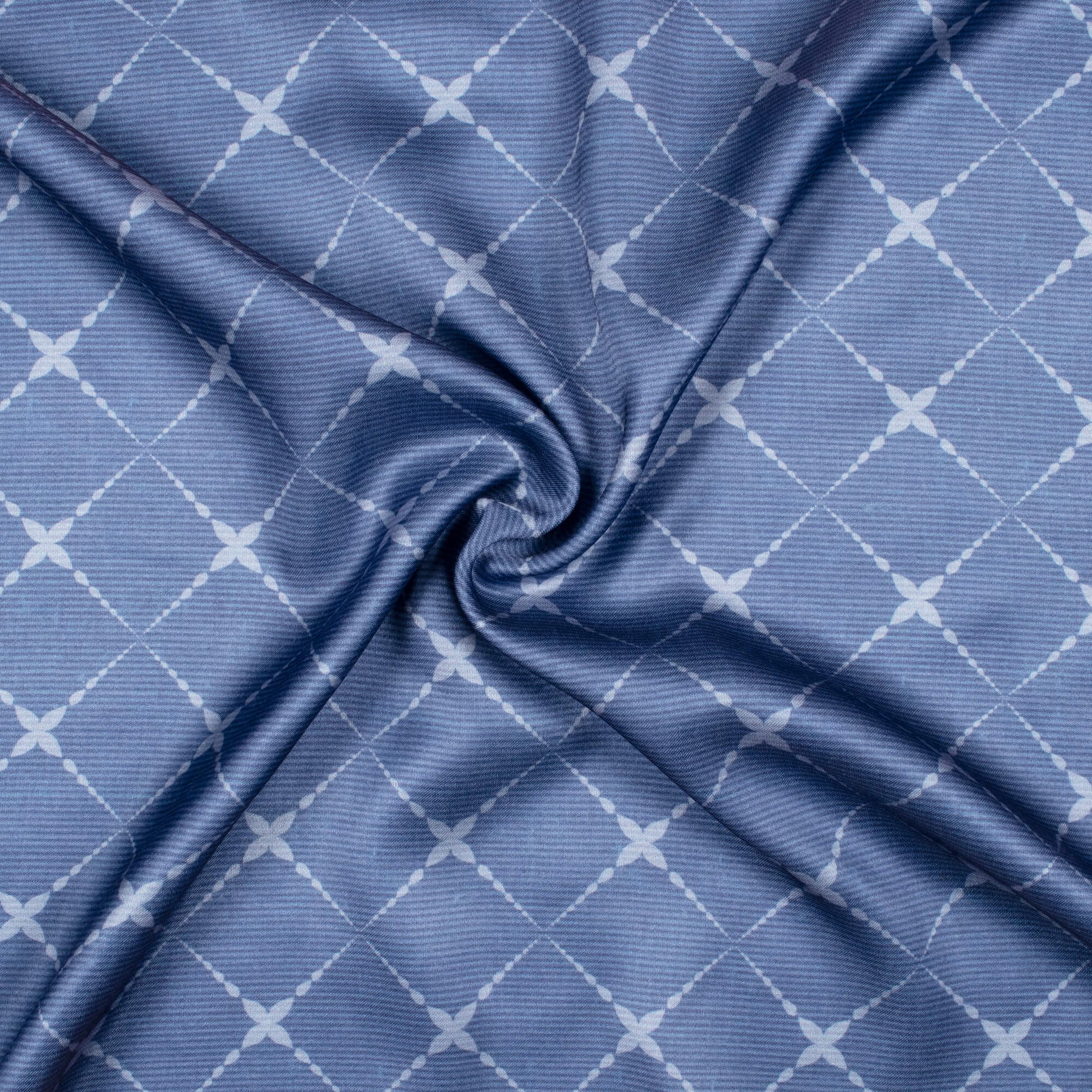 Regal Blue Geometric Pattern Digital Print Crepe Silk Fabric