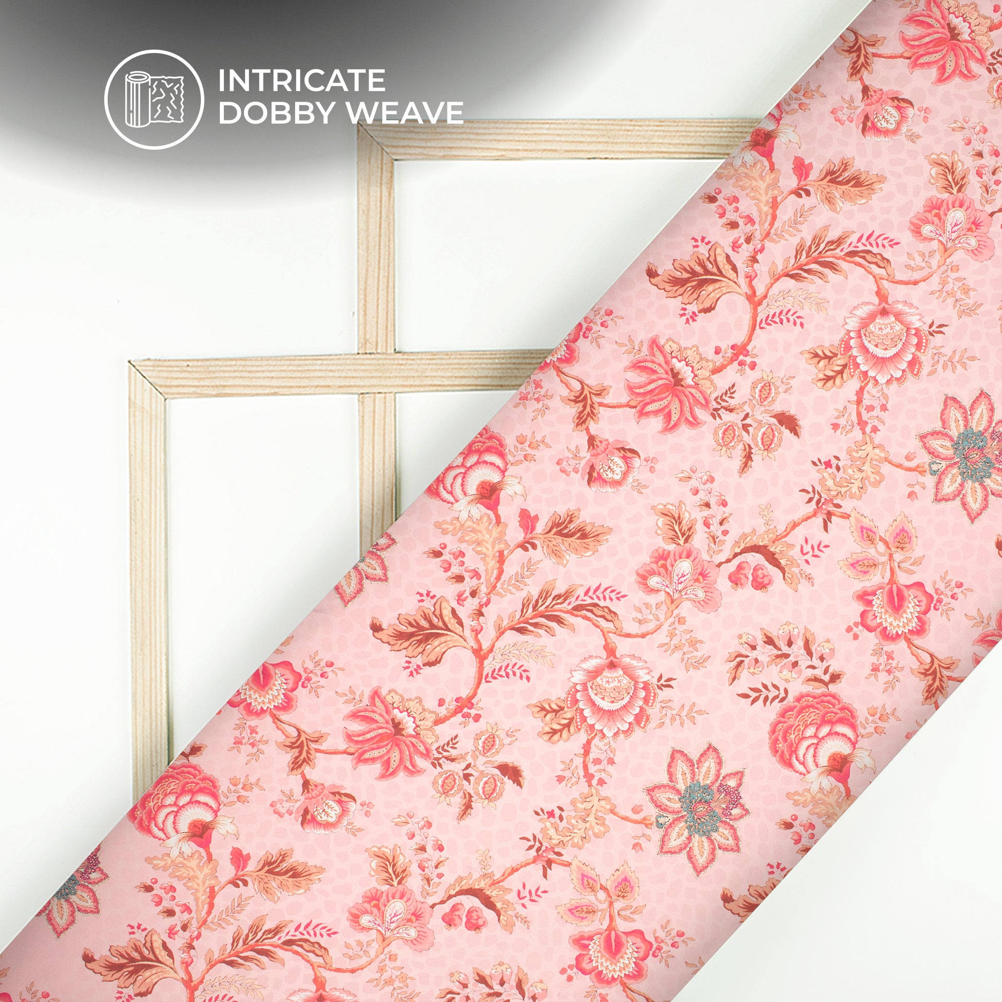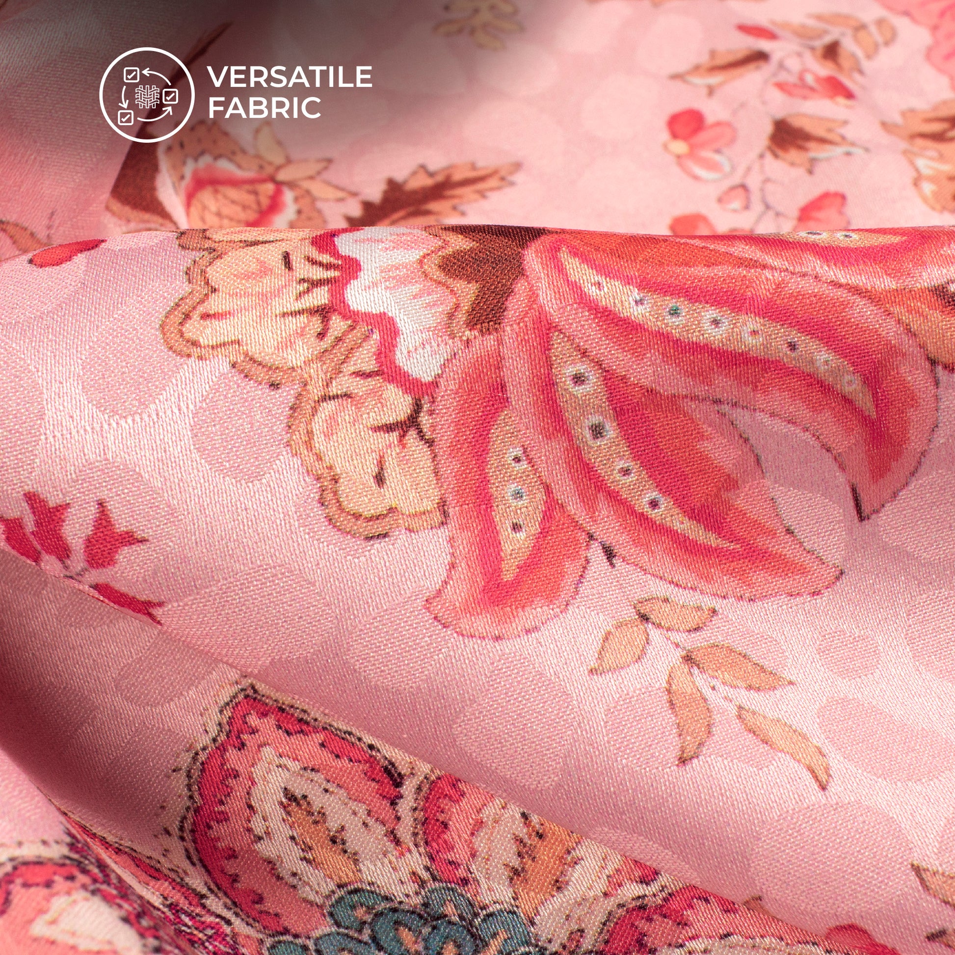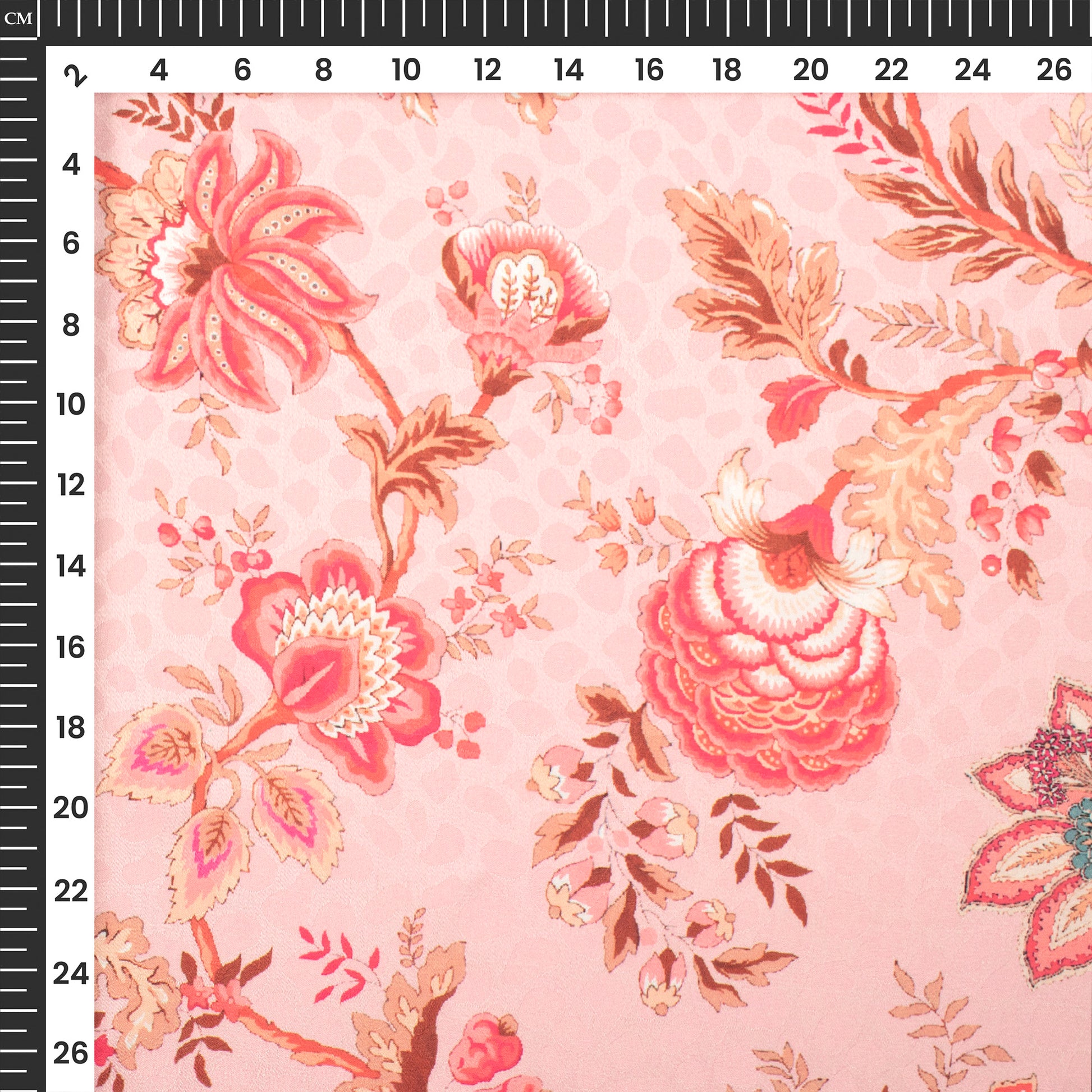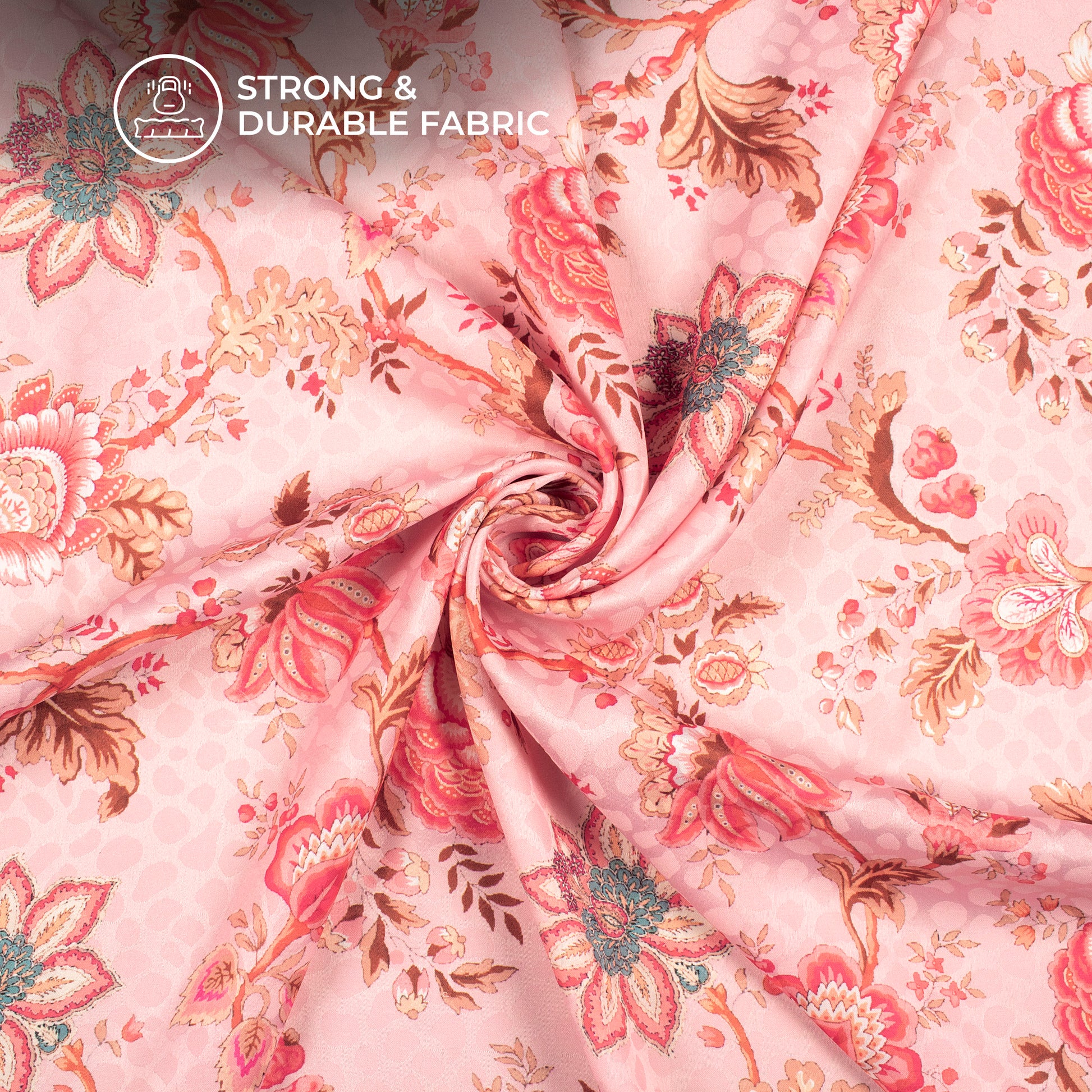 Rose Pink Floral Digital Print Dobby Satin Fabric