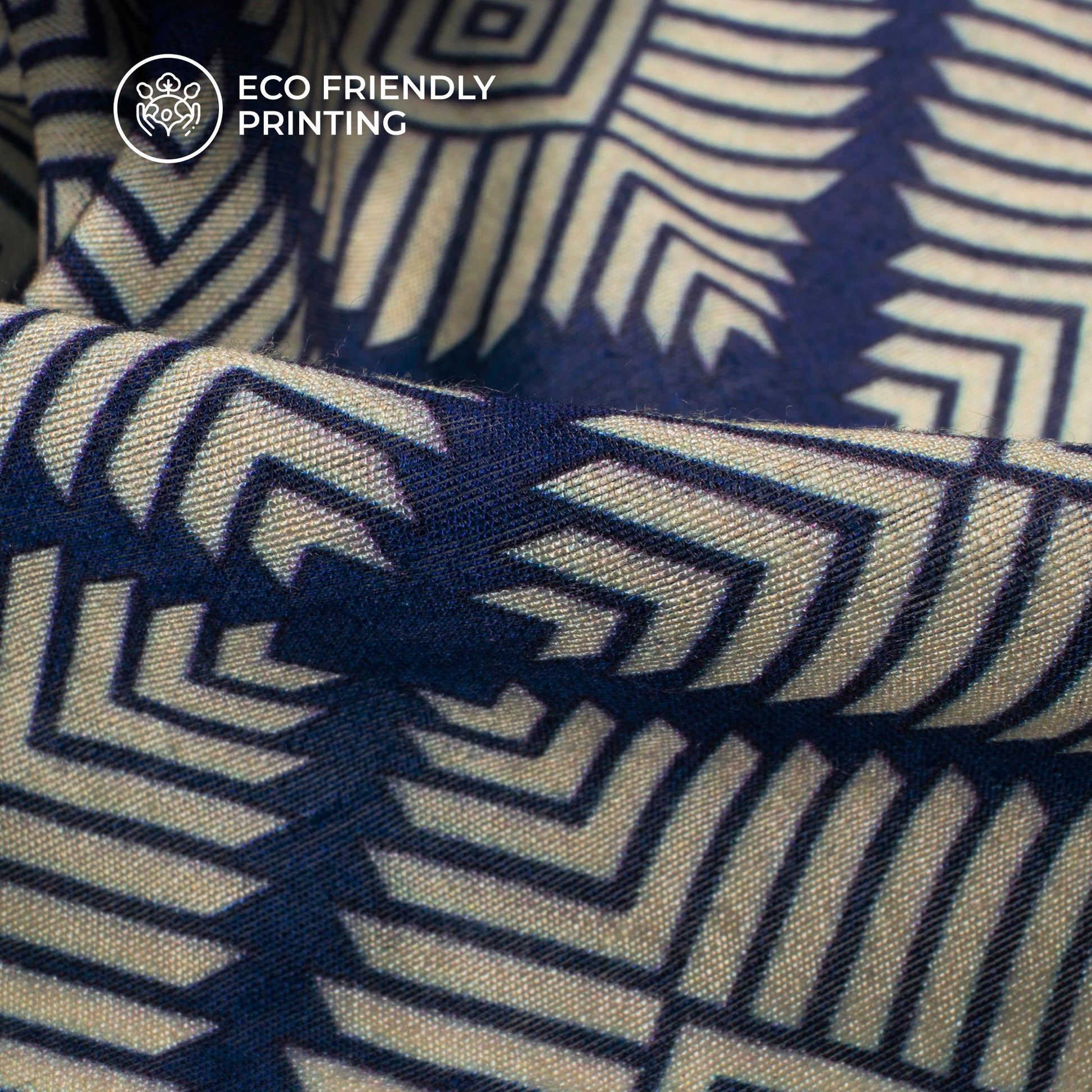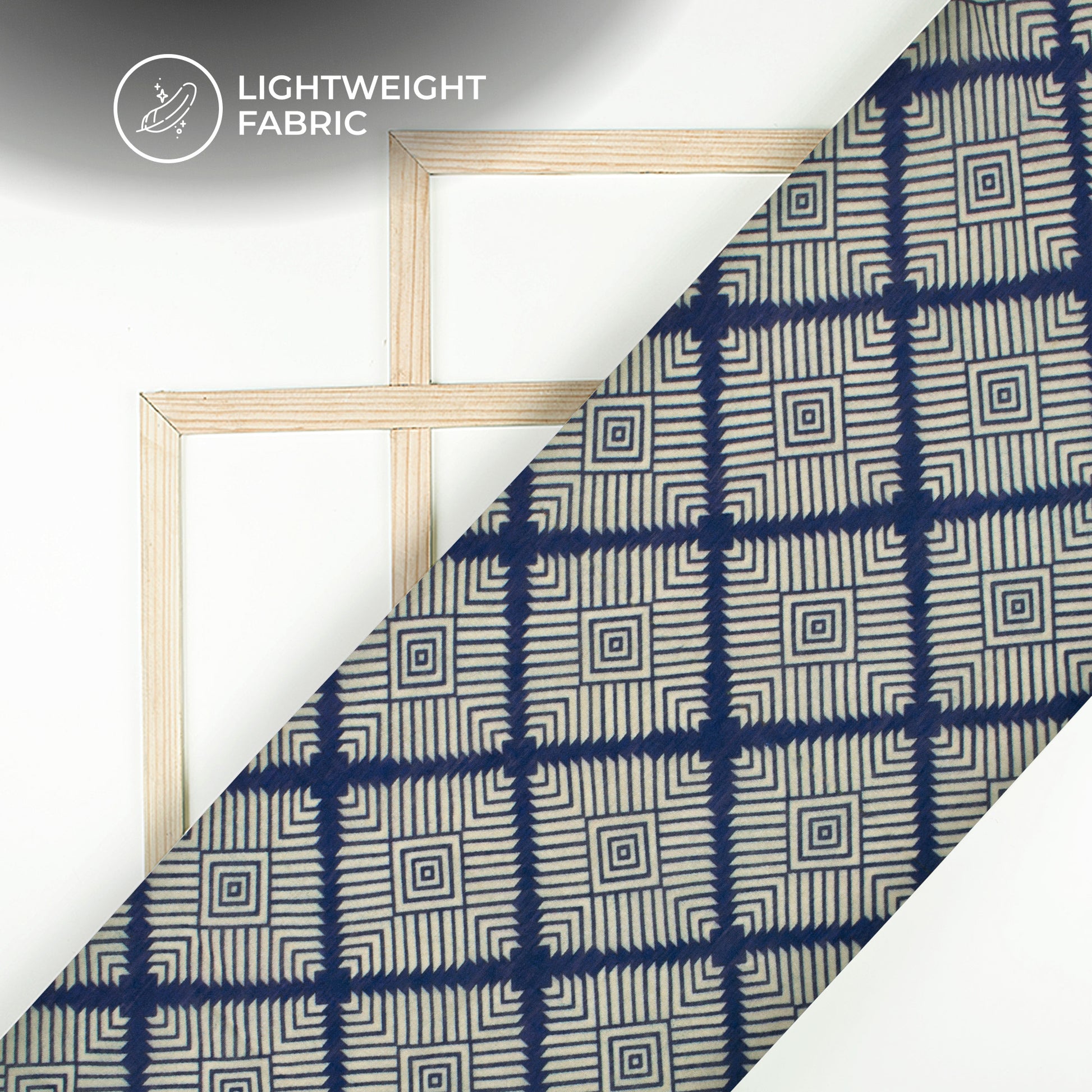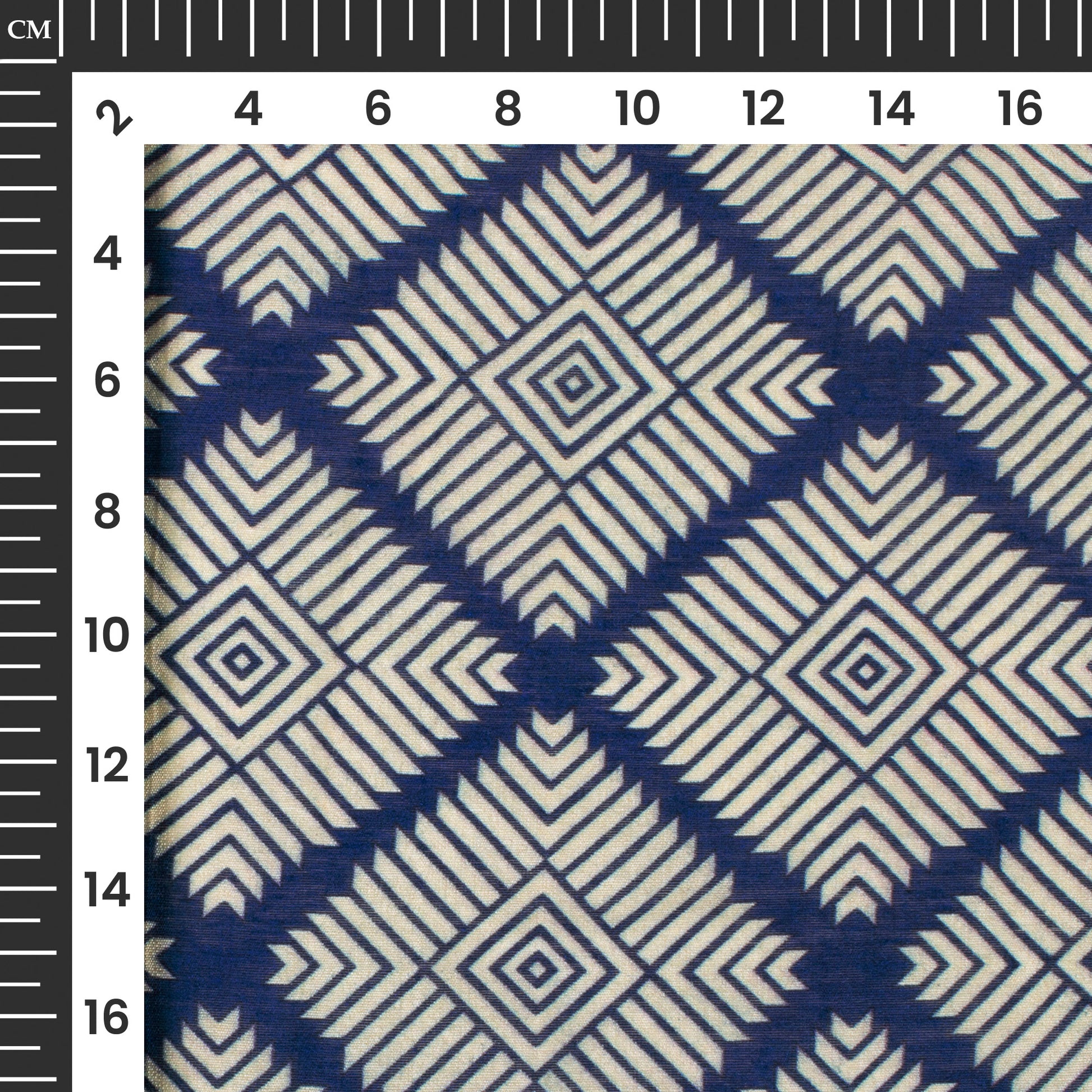 Royal Blue And White Geometric Digital Print Viscose Chanderi Fabric