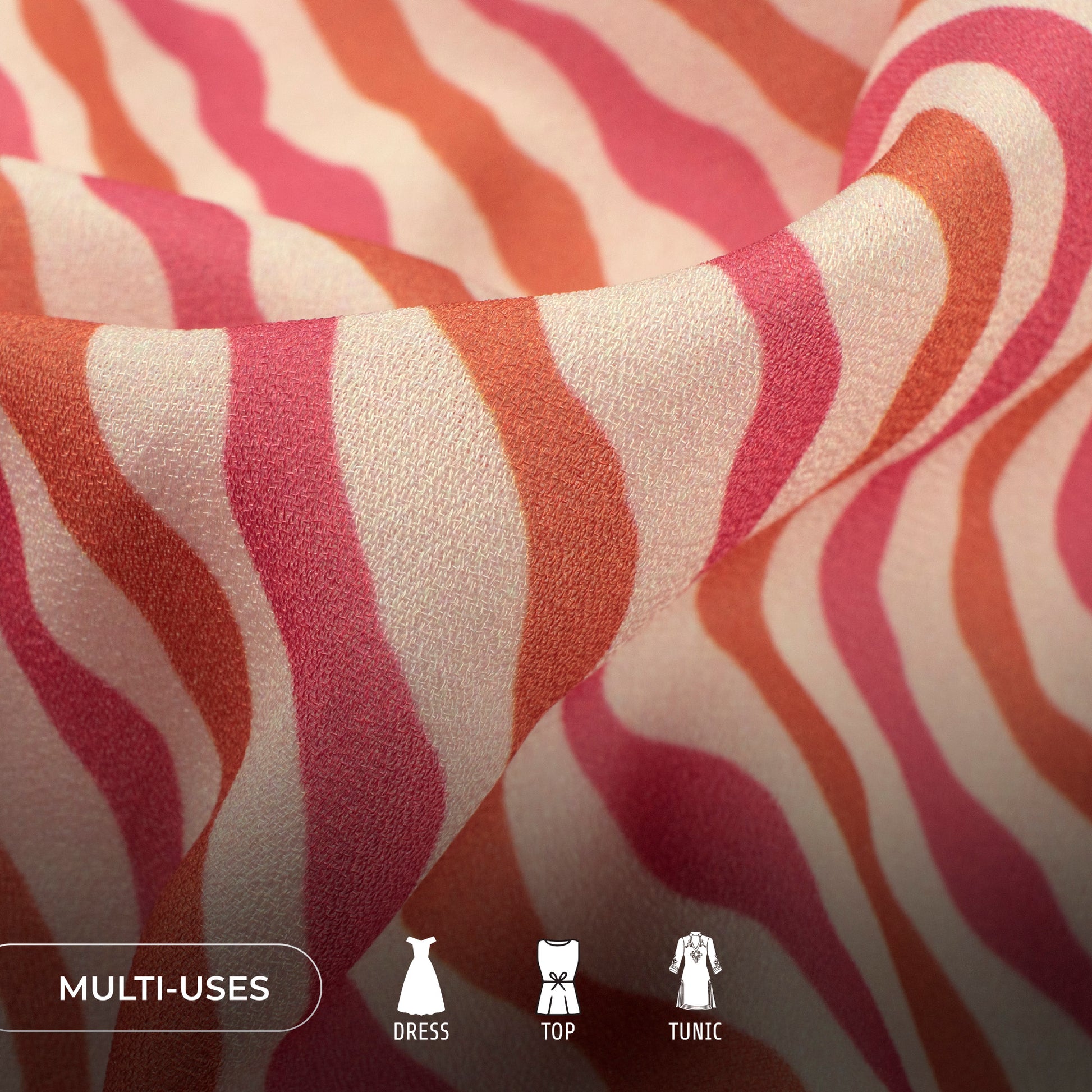 Rust Orange Leheriya Digital Print Moss Georgette Fabric(Width 56 Inches)