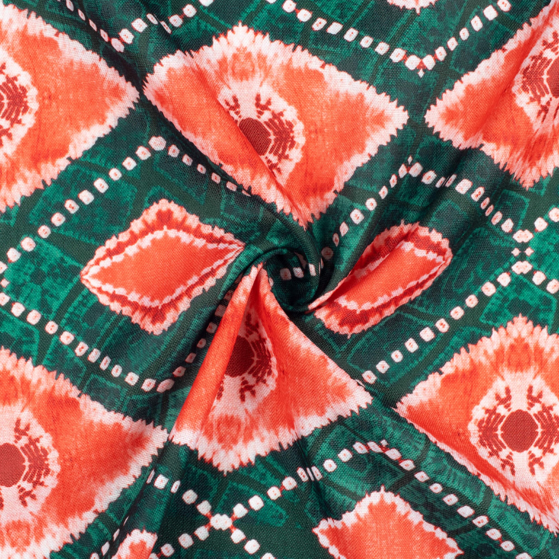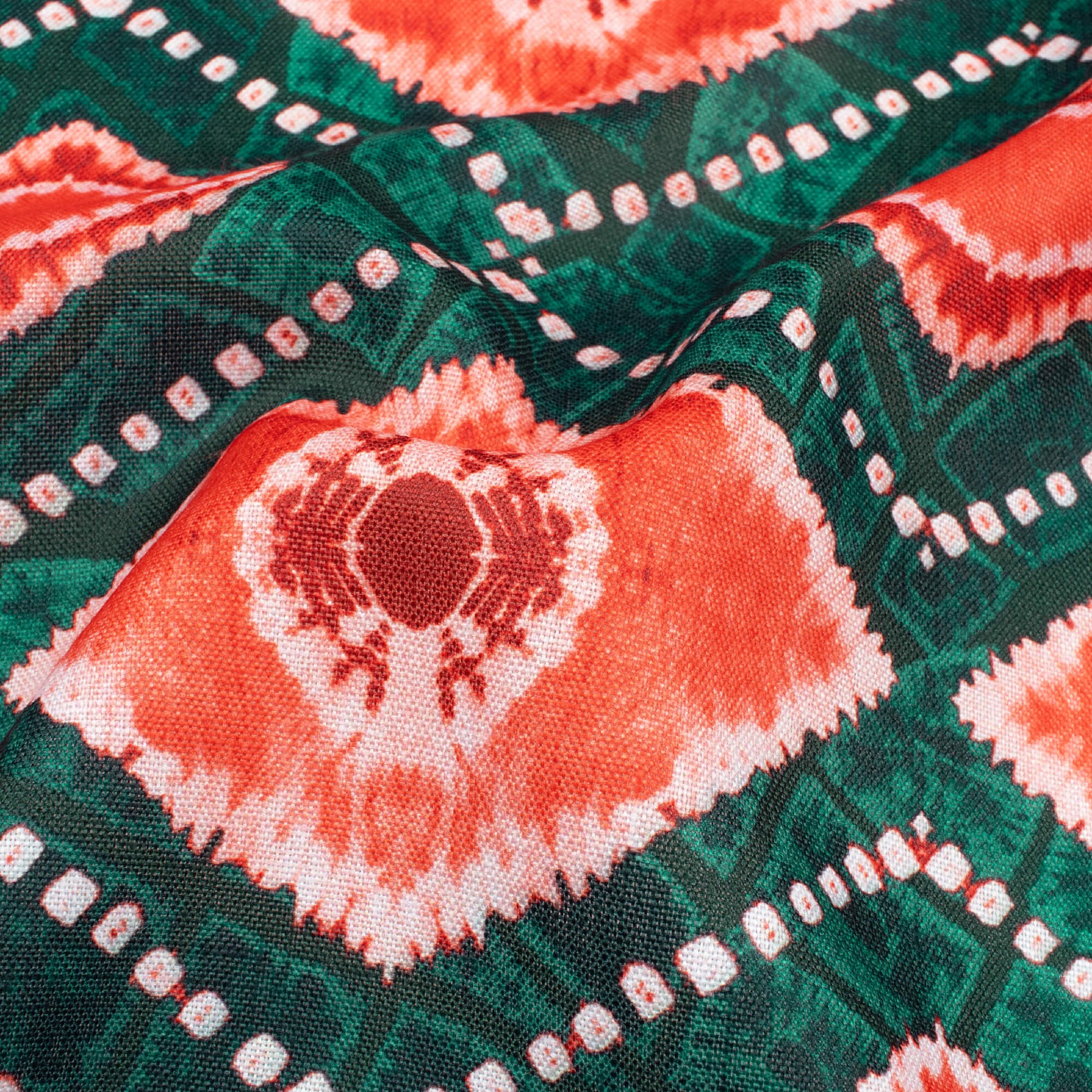 Sacramento Green And Blush Red Geometric Pattern Digital Print Poly Linen Slub Fabric