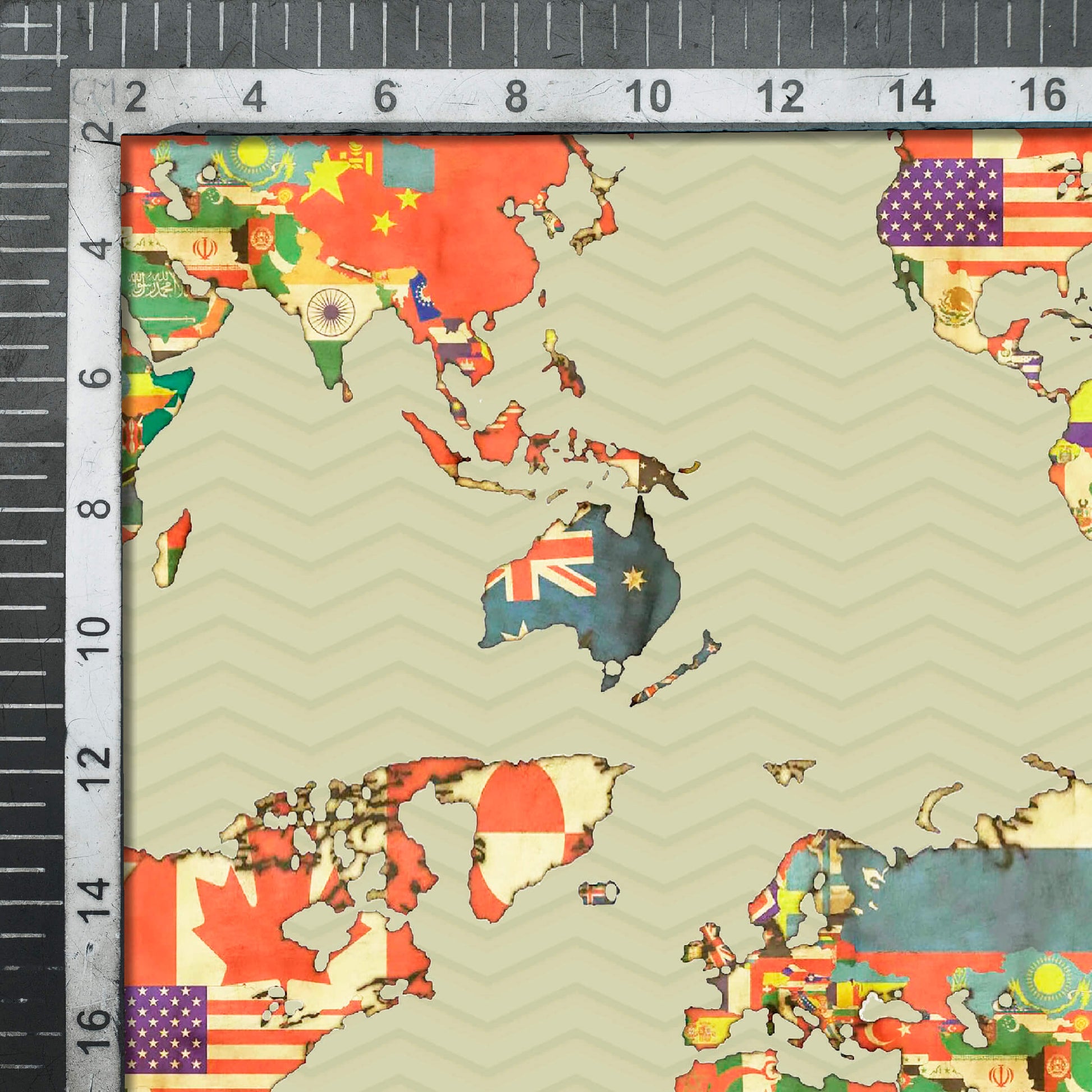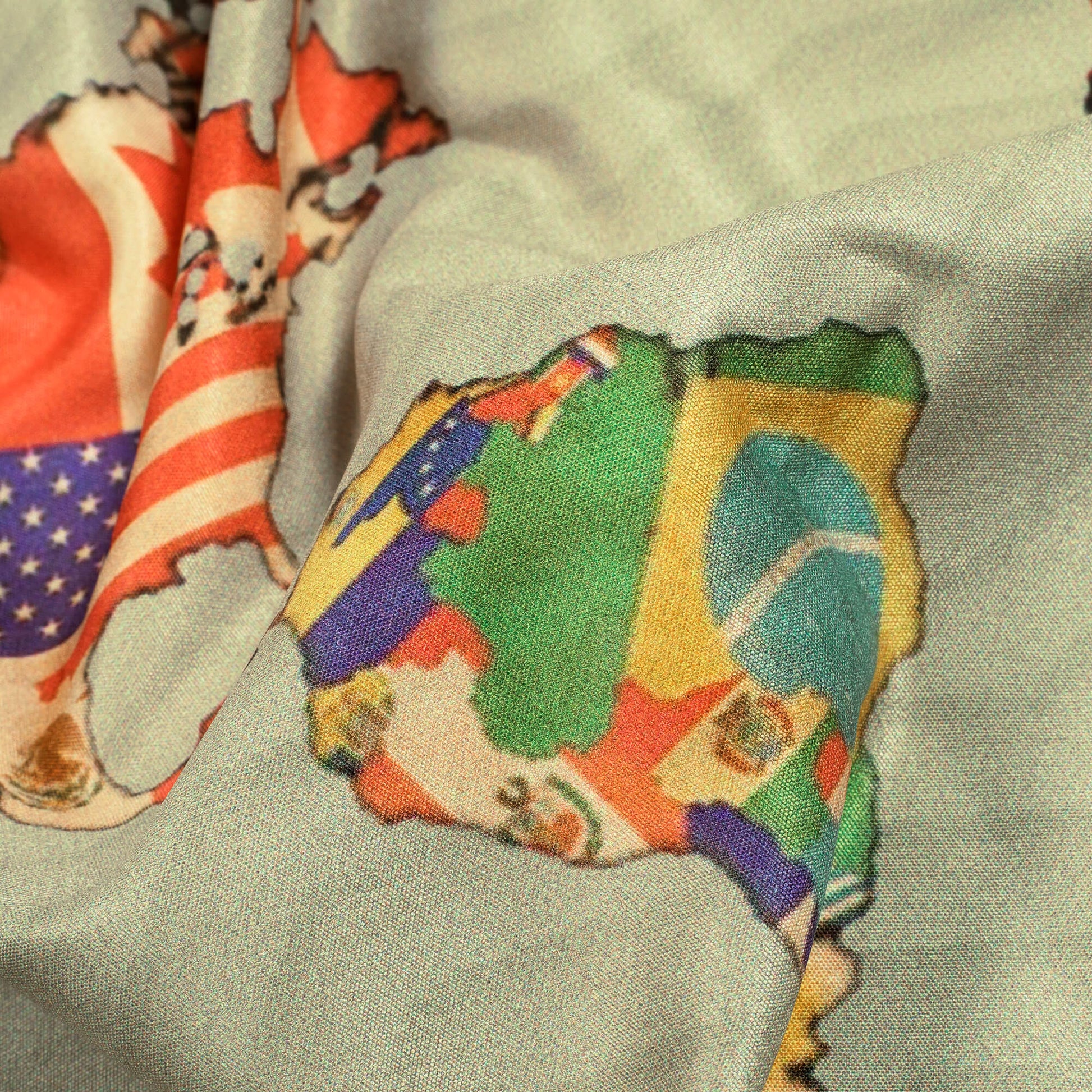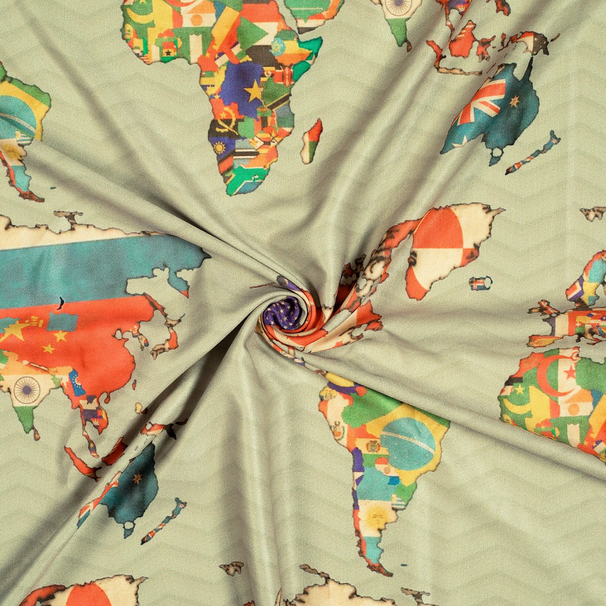 Sage Green And Orange Map Pattern Digital Print Ultra Premium Butter Crepe Fabric