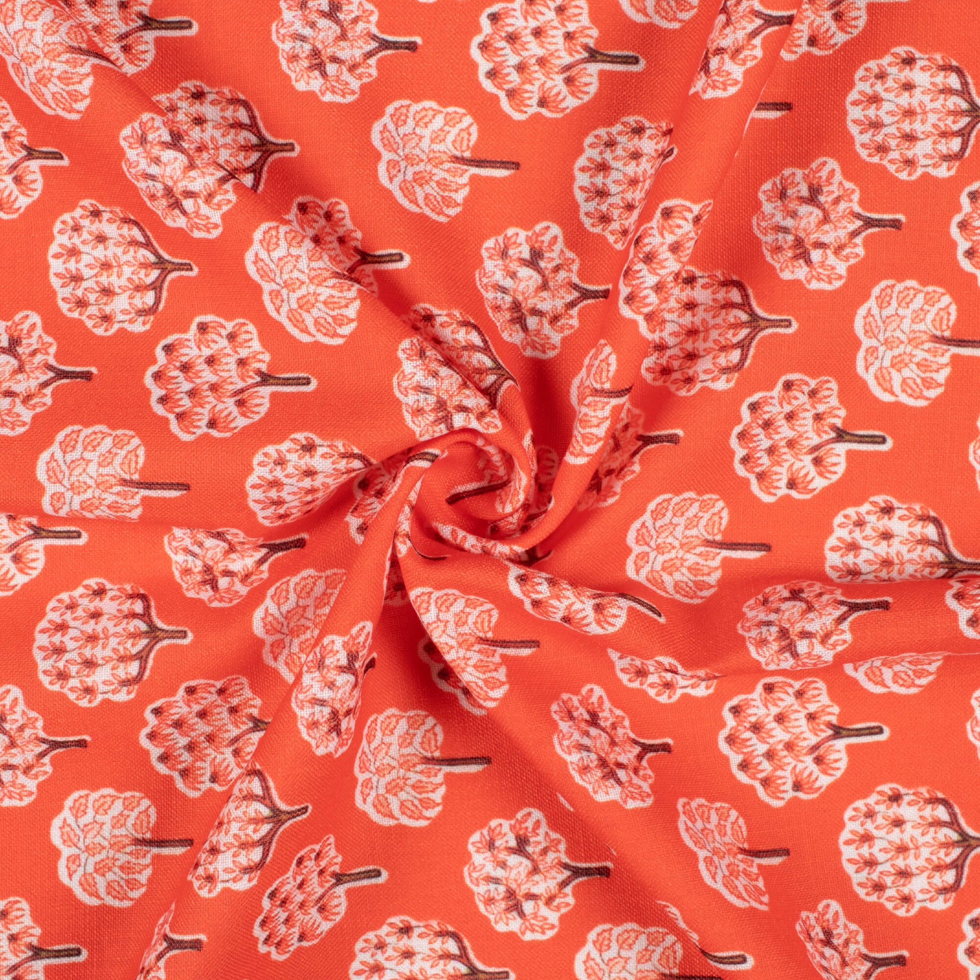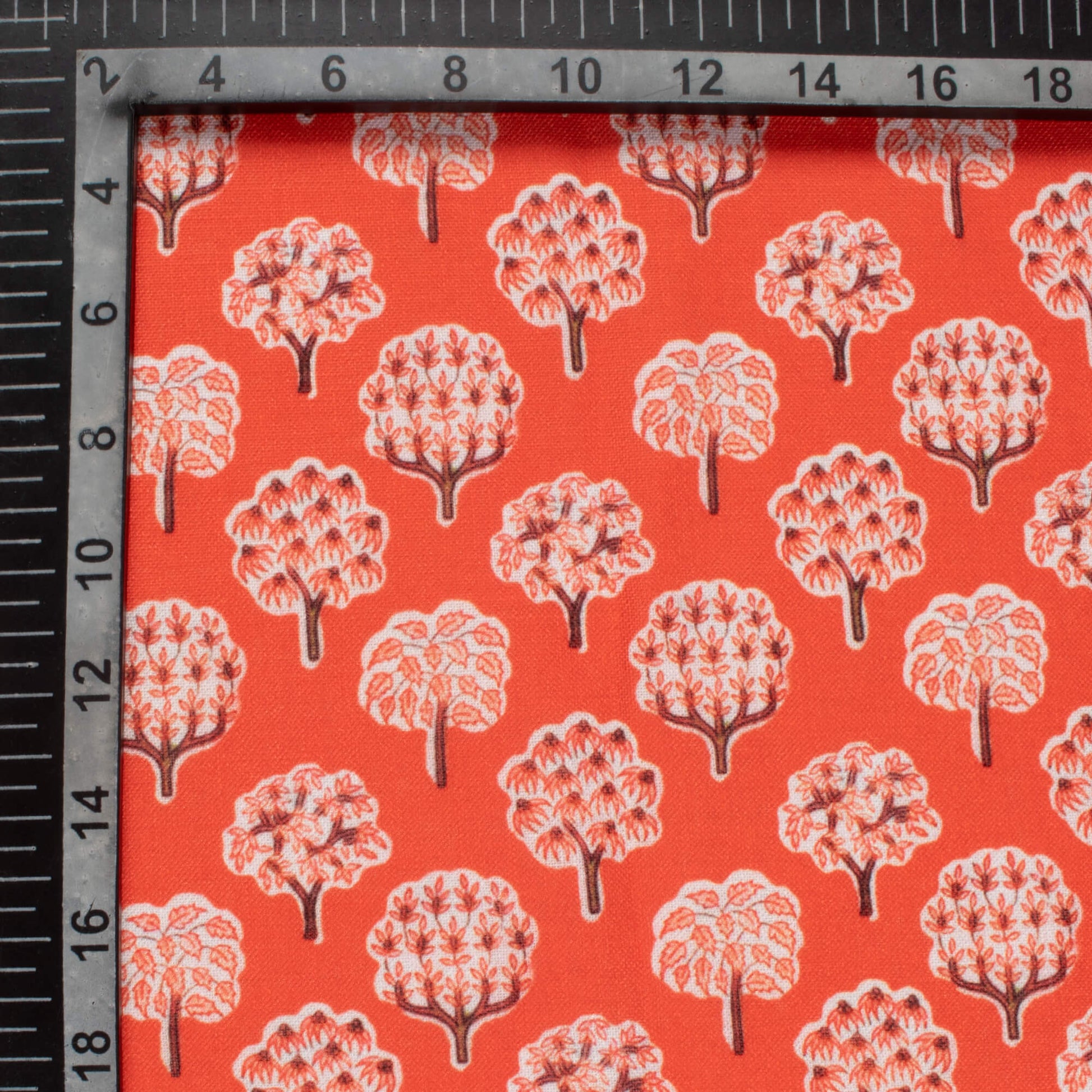 Salamander Orange And Peach Floral Pattern Digital Print Linen Textured Fabric (Width 56 Inches)