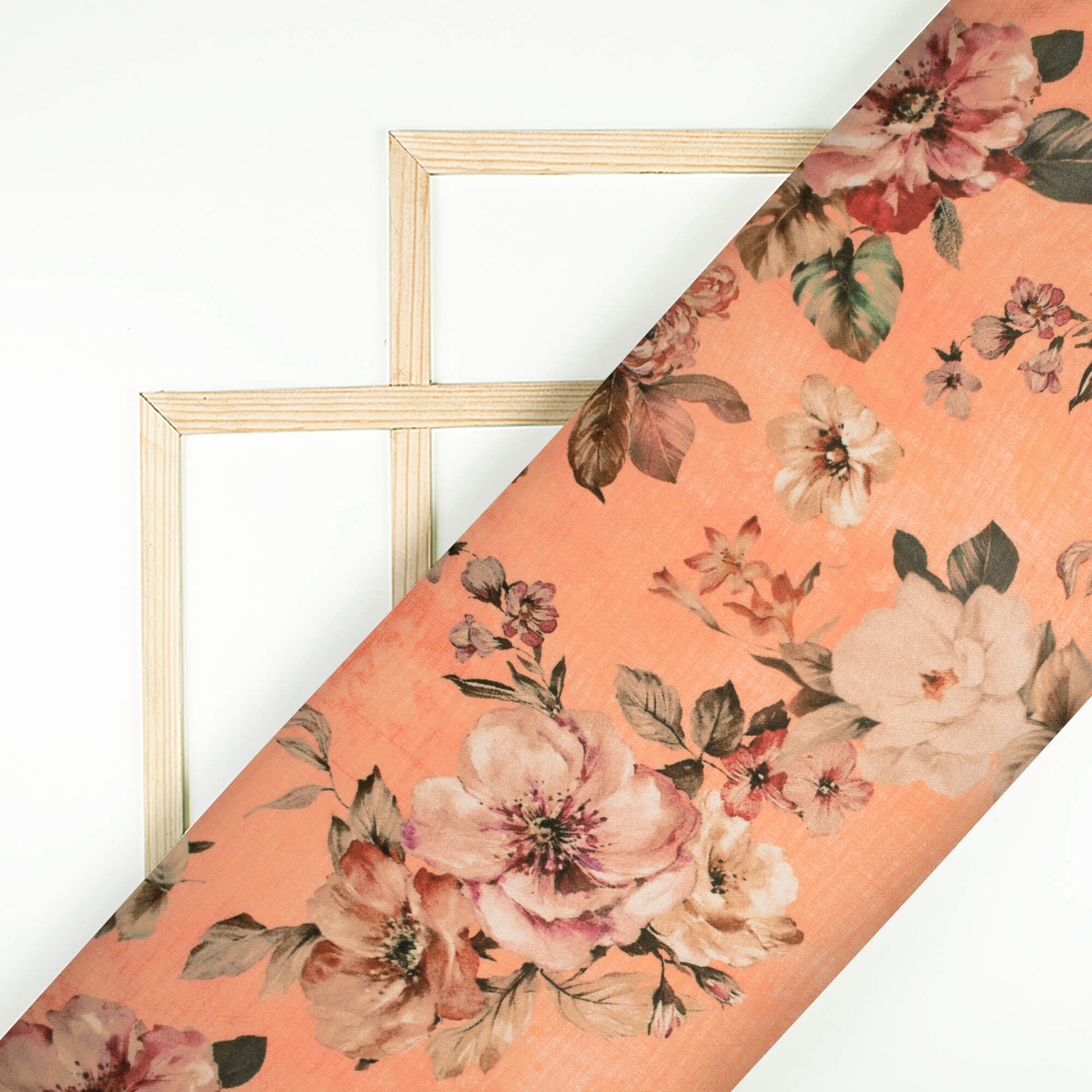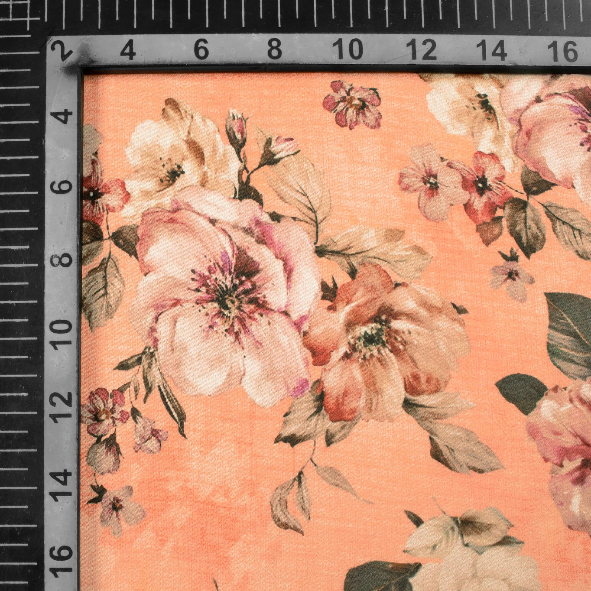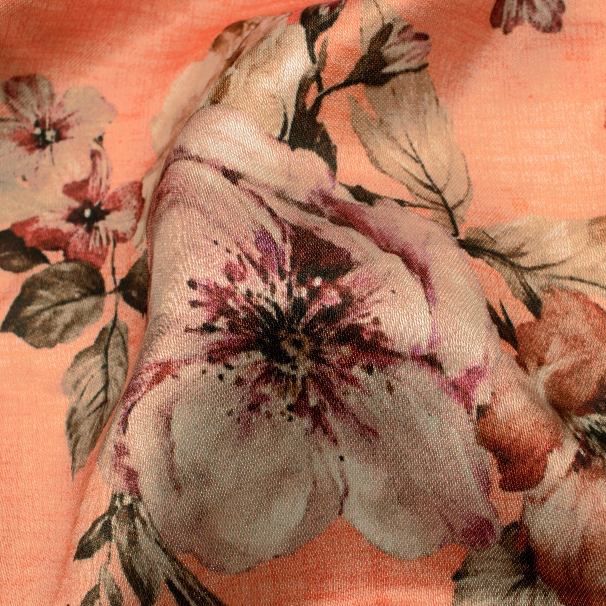 Salmon Orange And Army Green Floral Pattern Digital Print Premium Lush Satin Fabric