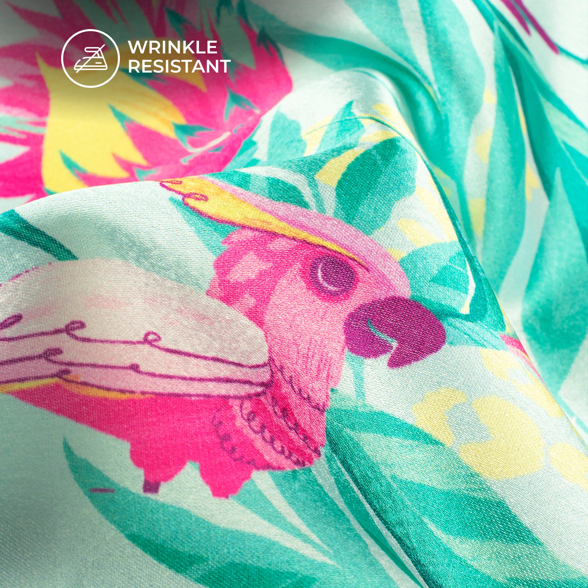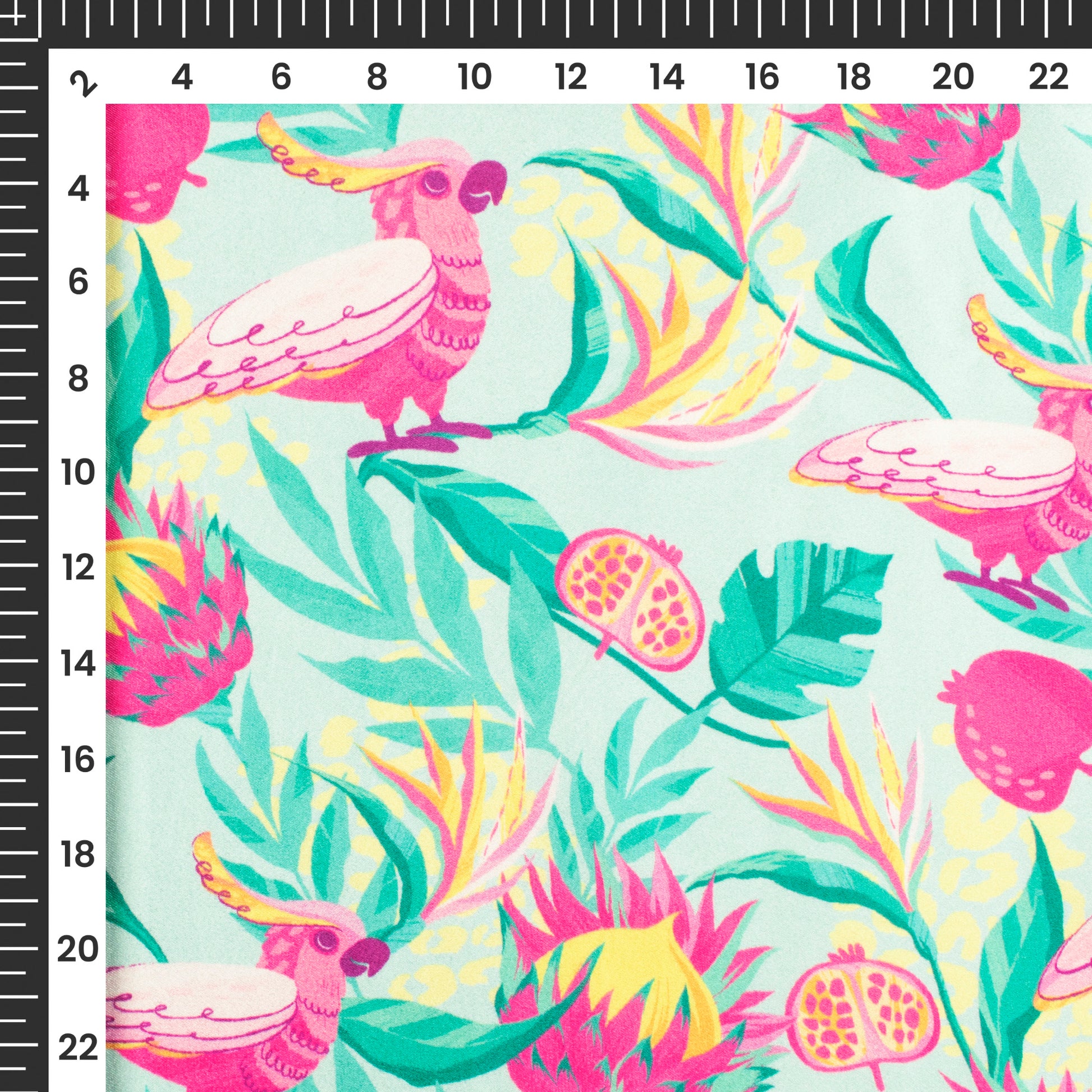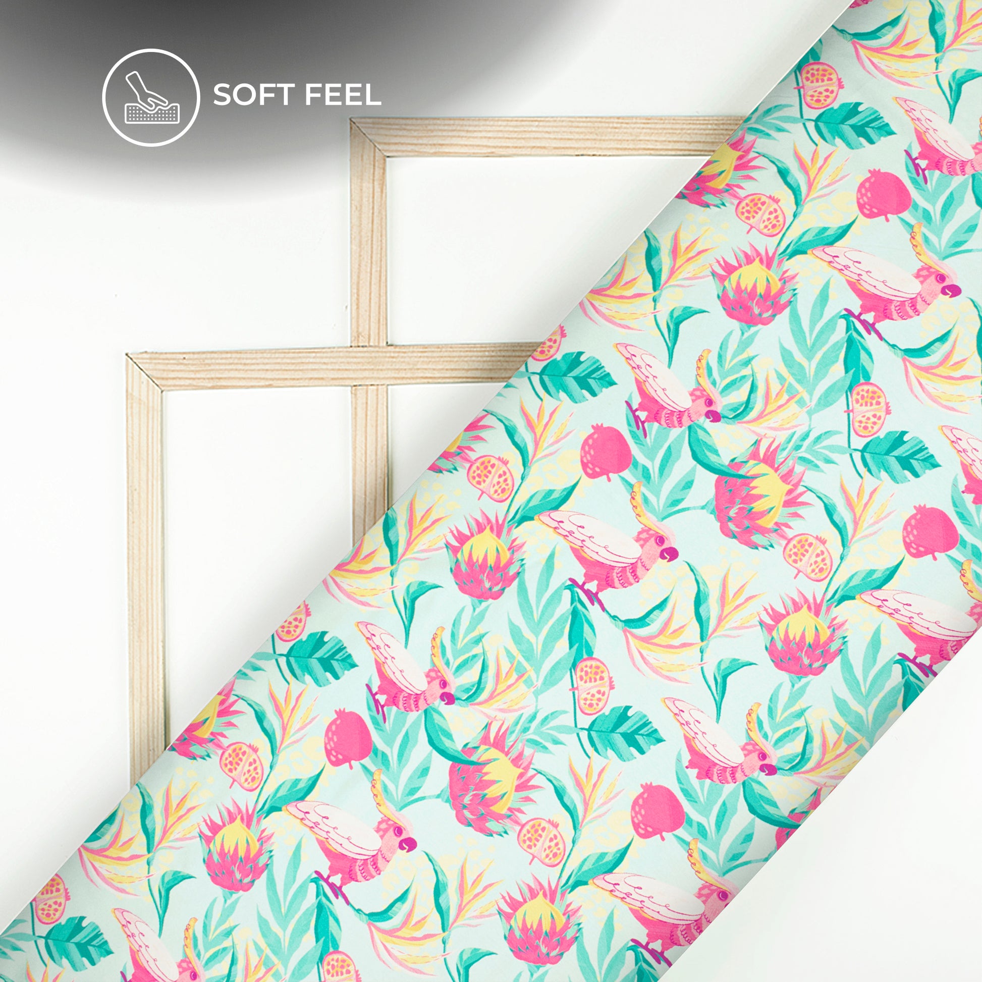Sapphire Blue And Pink Floral Digital Print Japan Satin Fabric