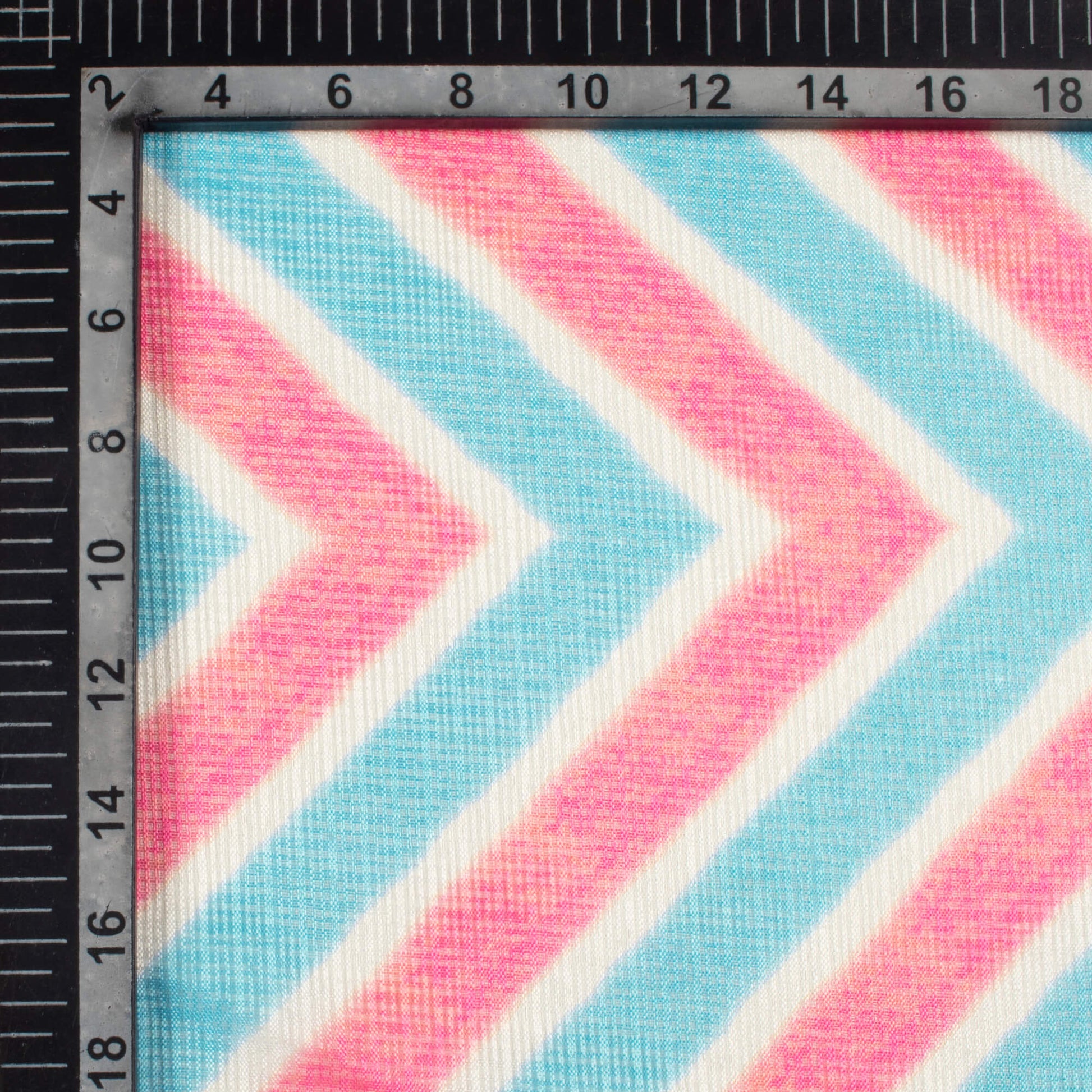 Smalt Blue And Carnation Pink Chevron Pattern Digital Print Kota Doria Fabric