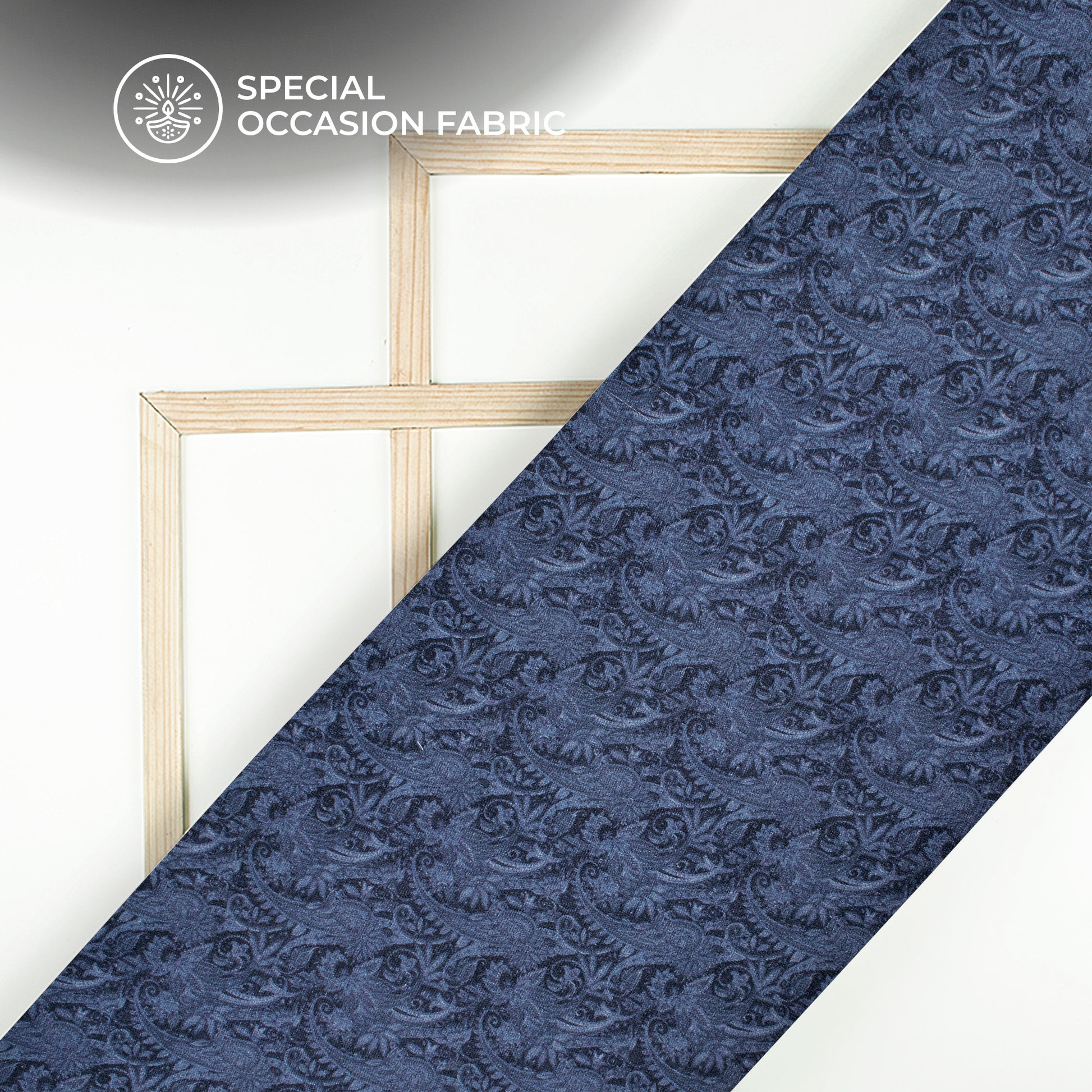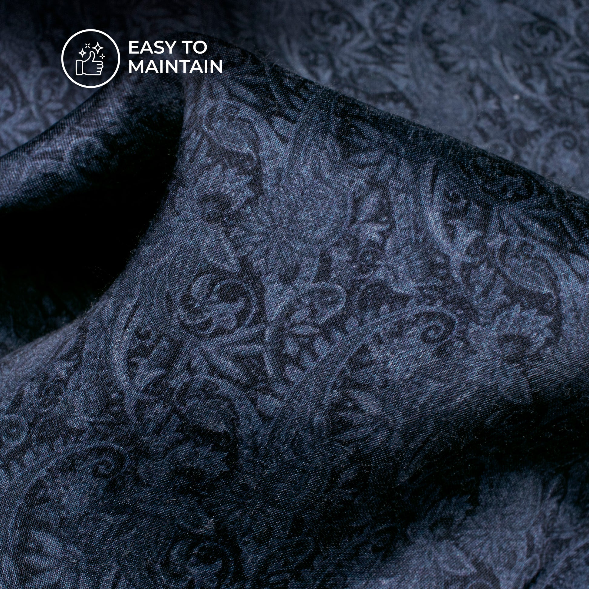 Squid Ink Paisley Digital Print Viscose Gaji Silk Fabric