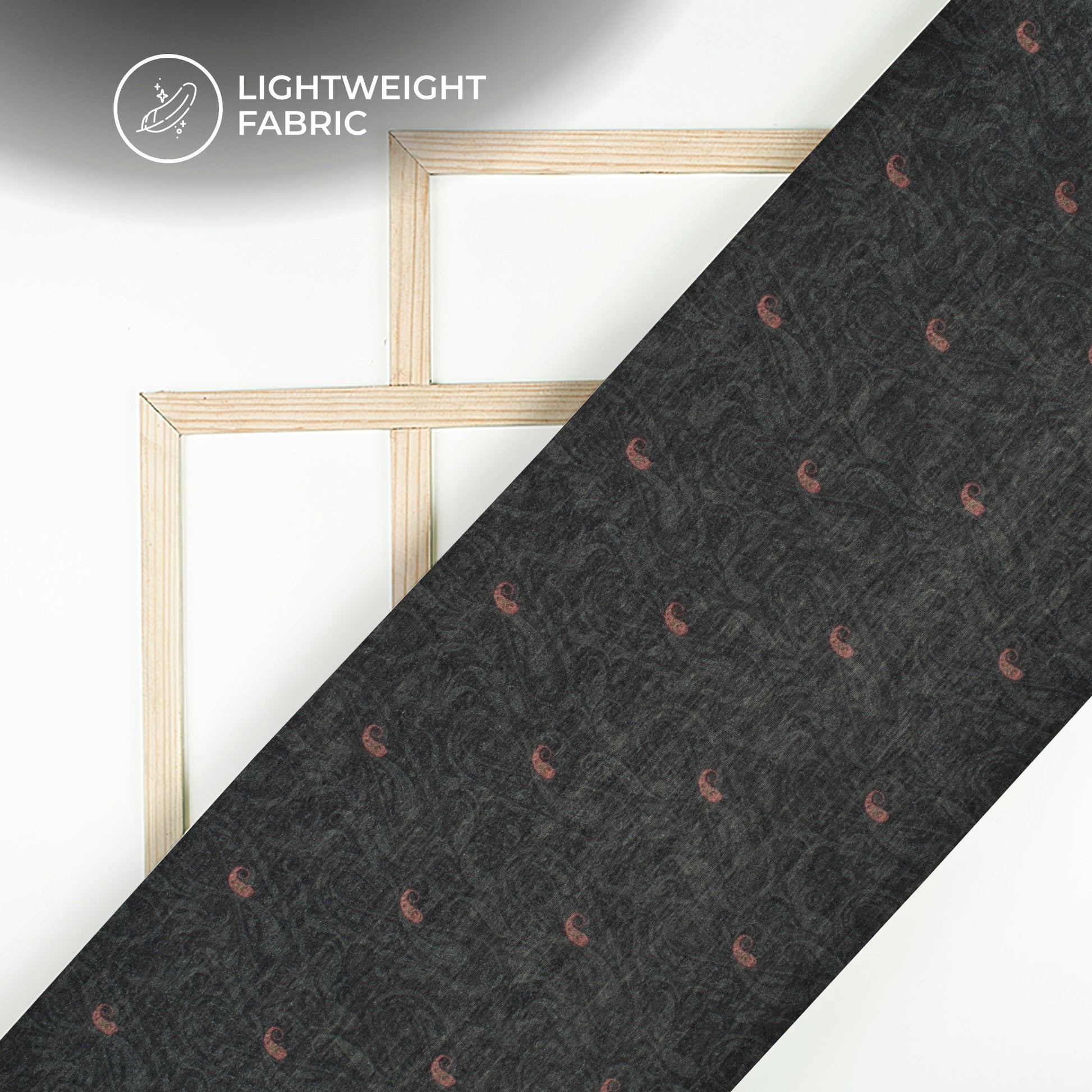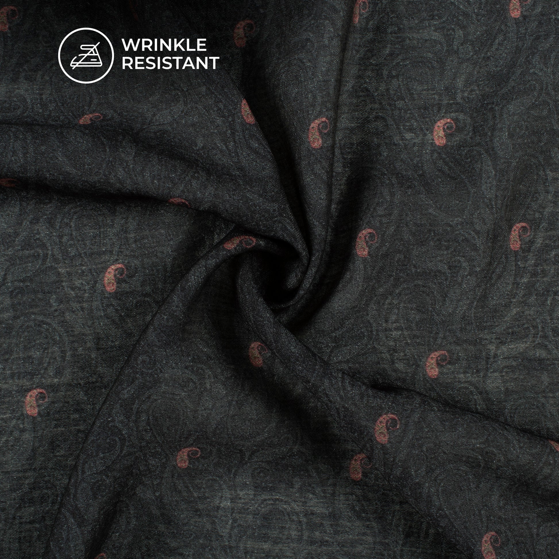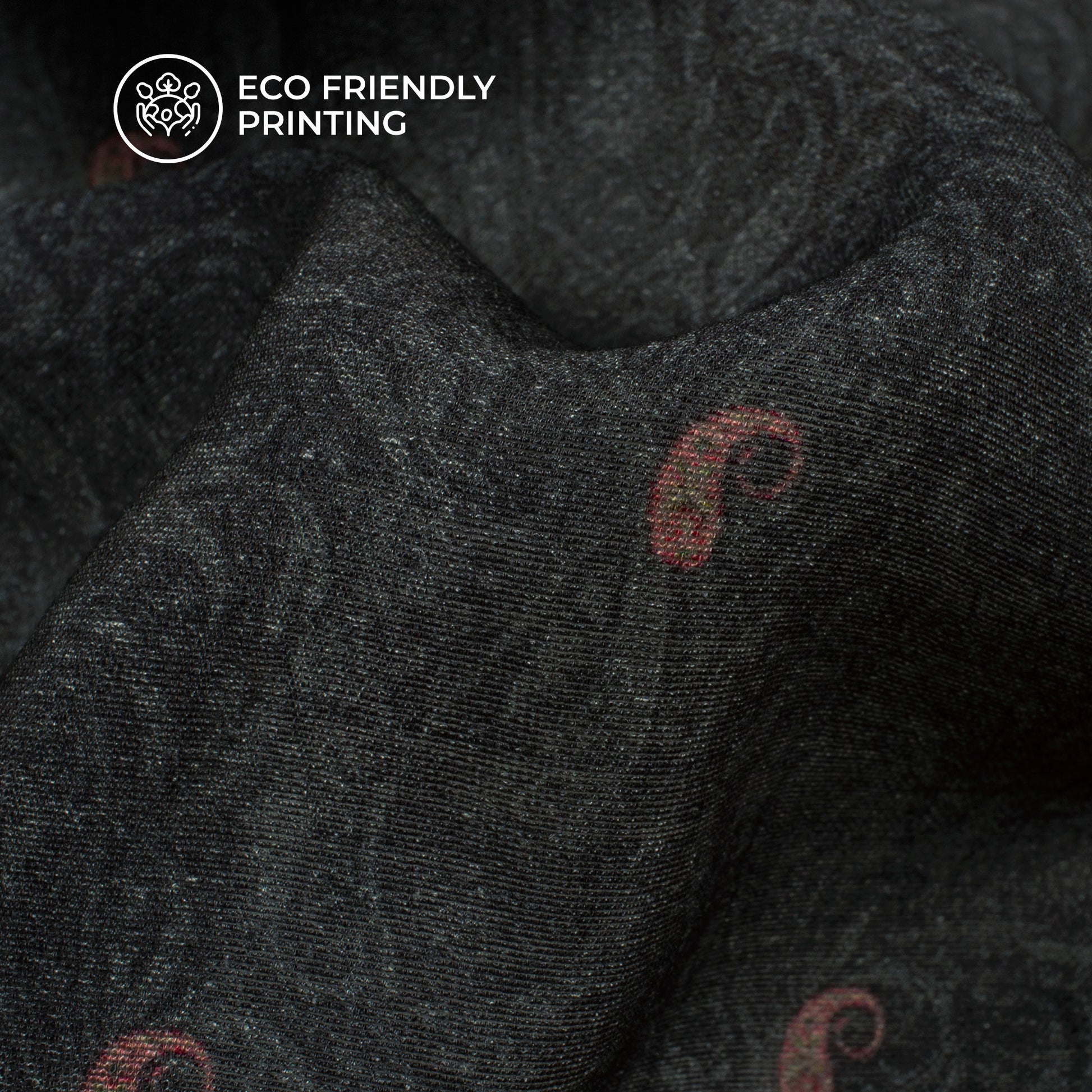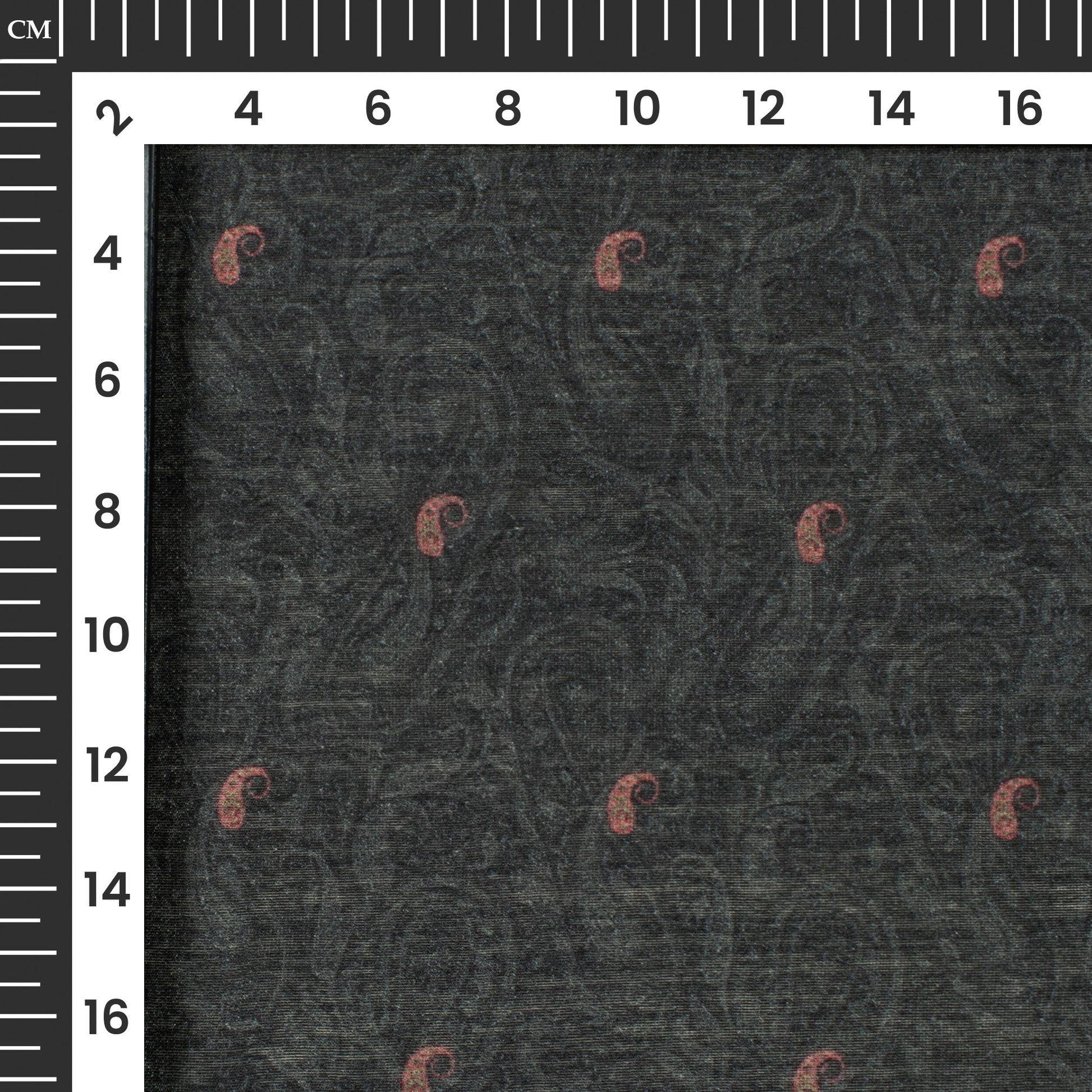 Stone Blue And Pink Paisley Digital Print Viscose Chanderi Fabric