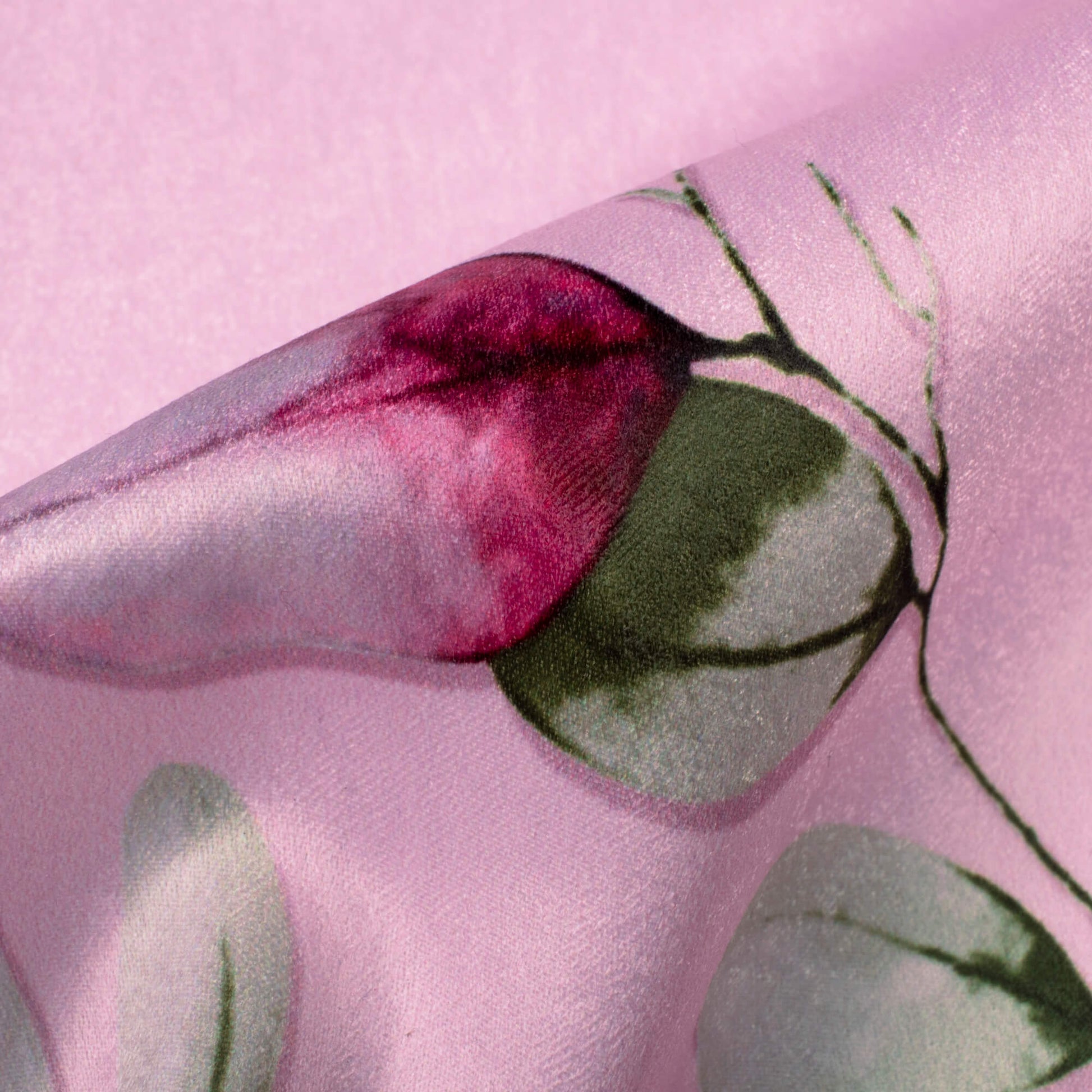 Taffy Pink And Green Floral Pattern Digital Print Lush Satin Fabric