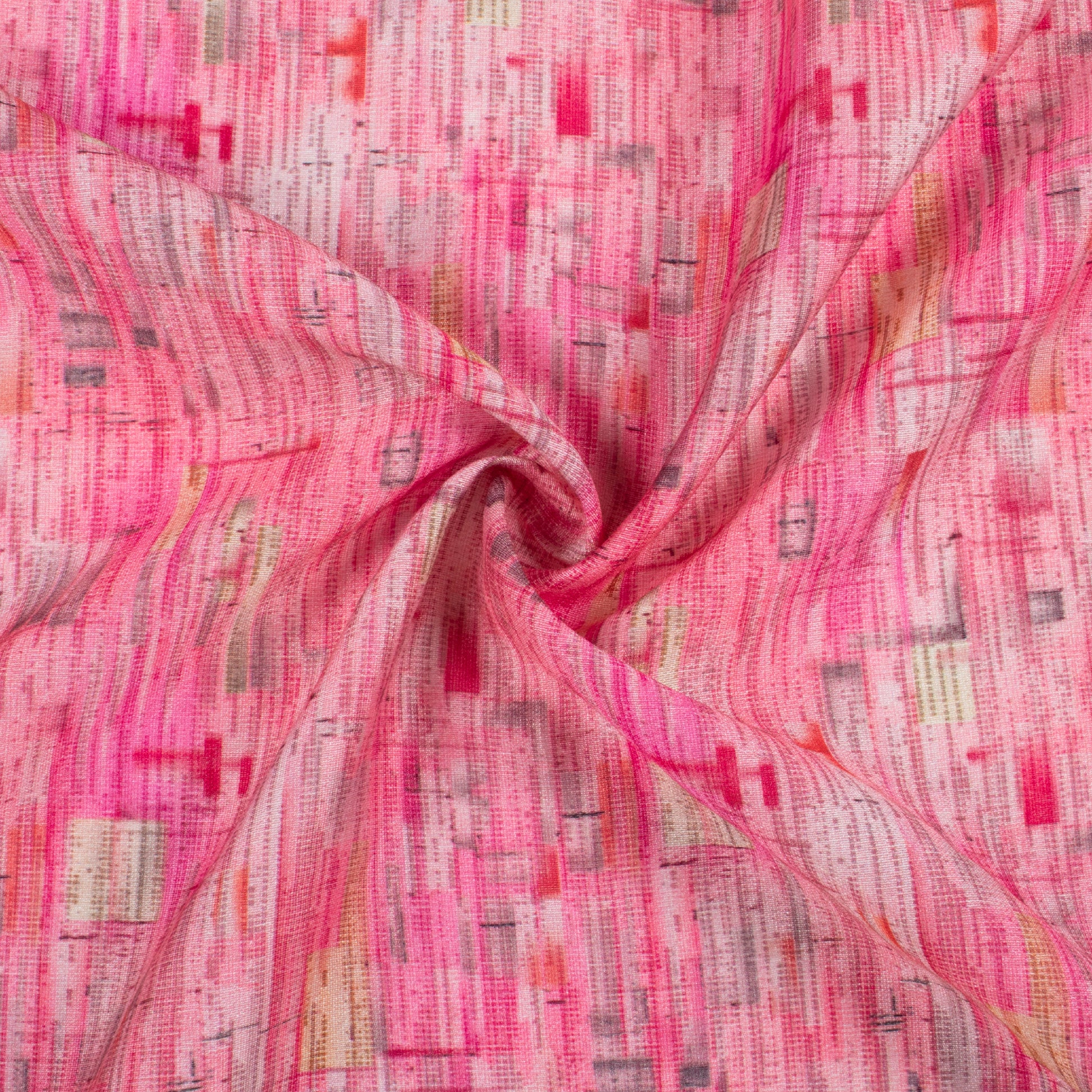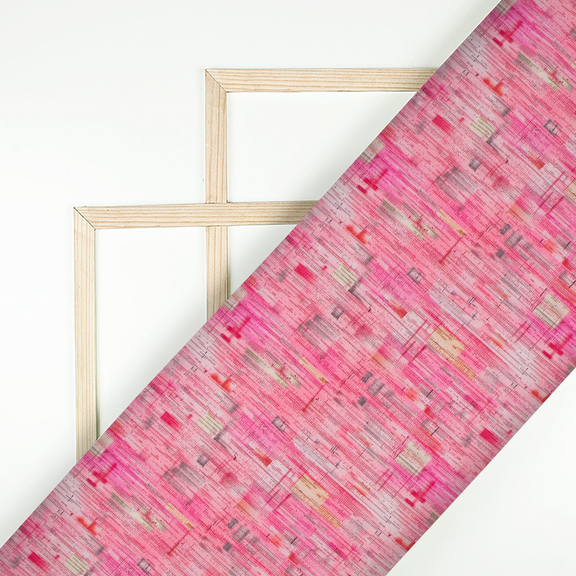 Taffy Pink And Grey Abstract Pattern Digital Print Viscose Chanderi Fabric
