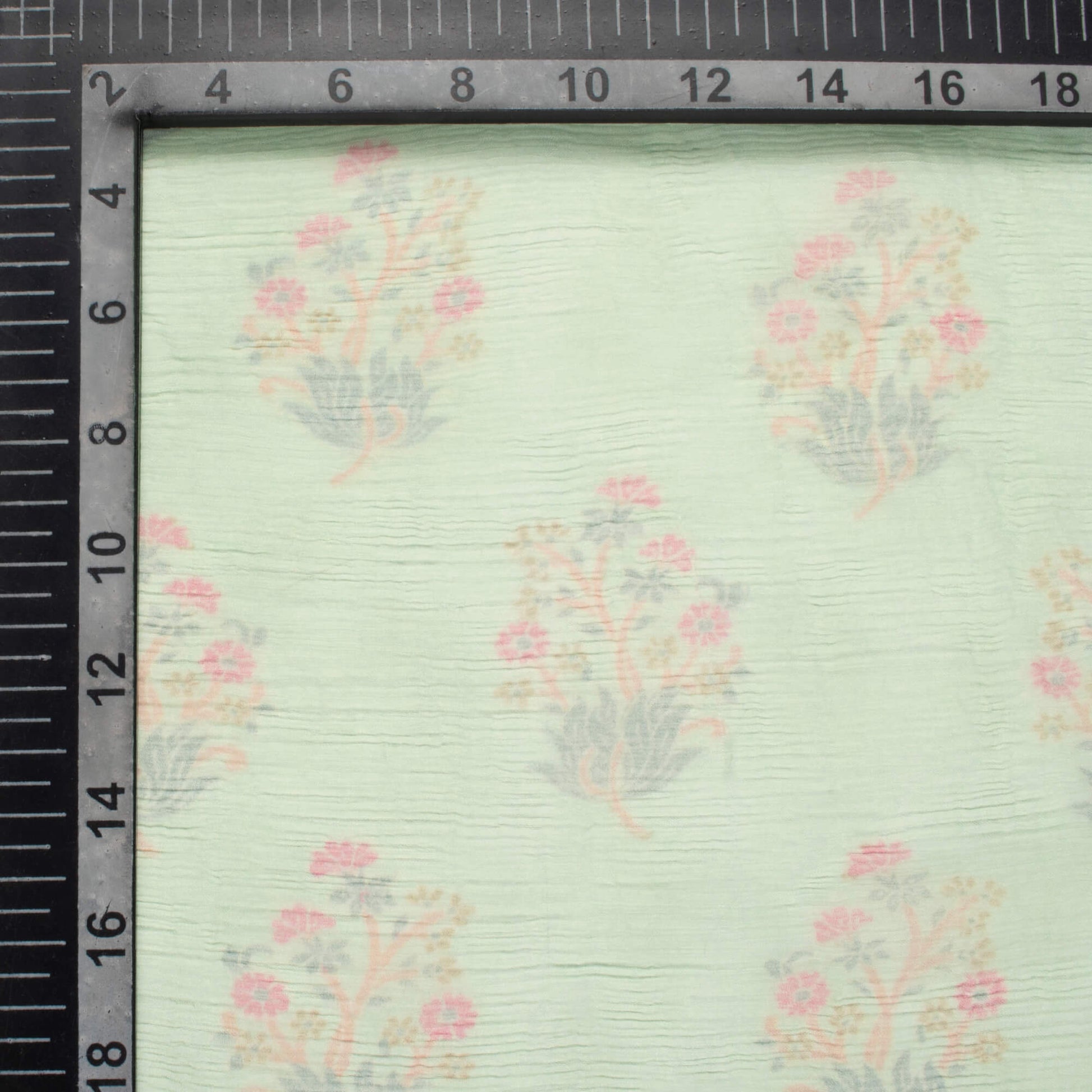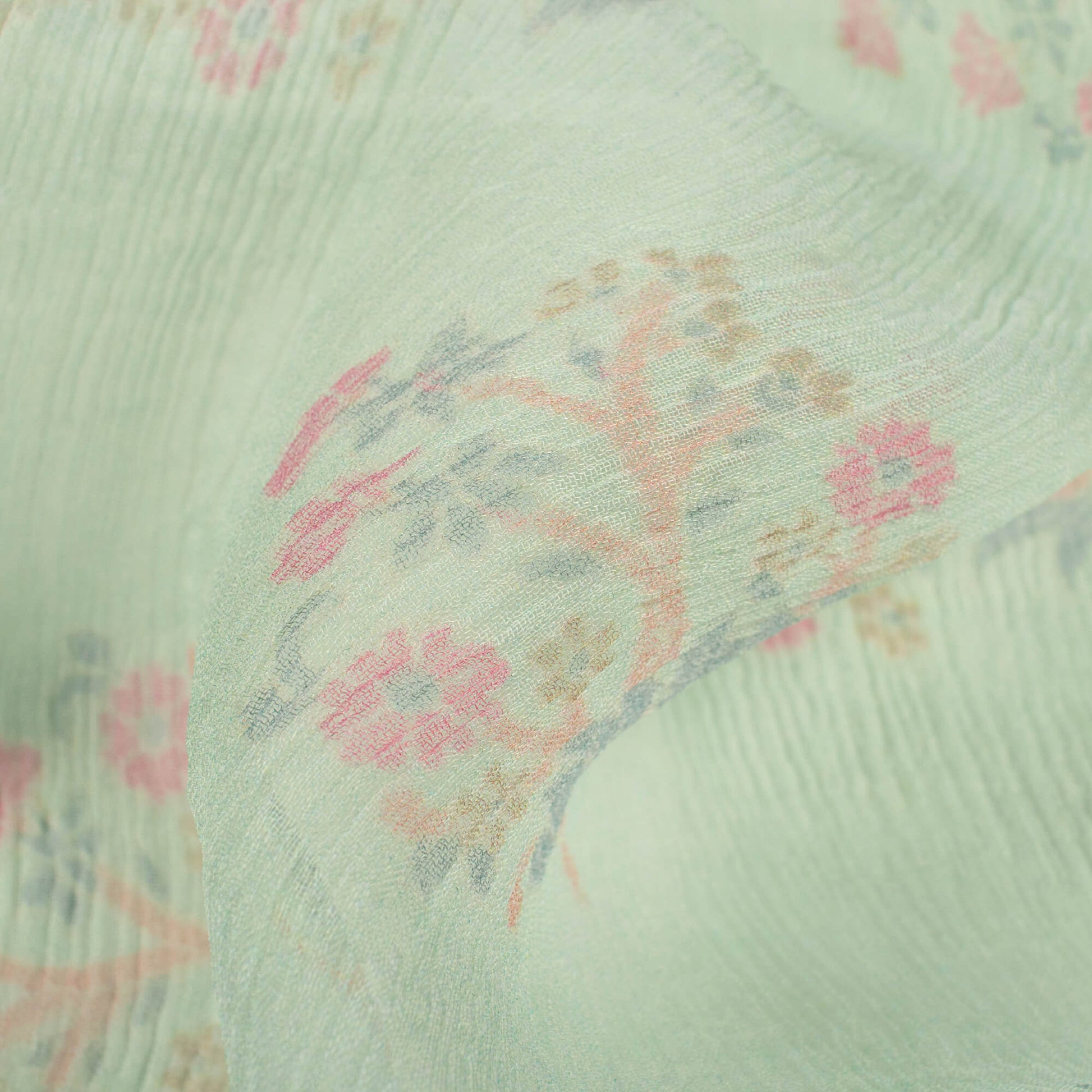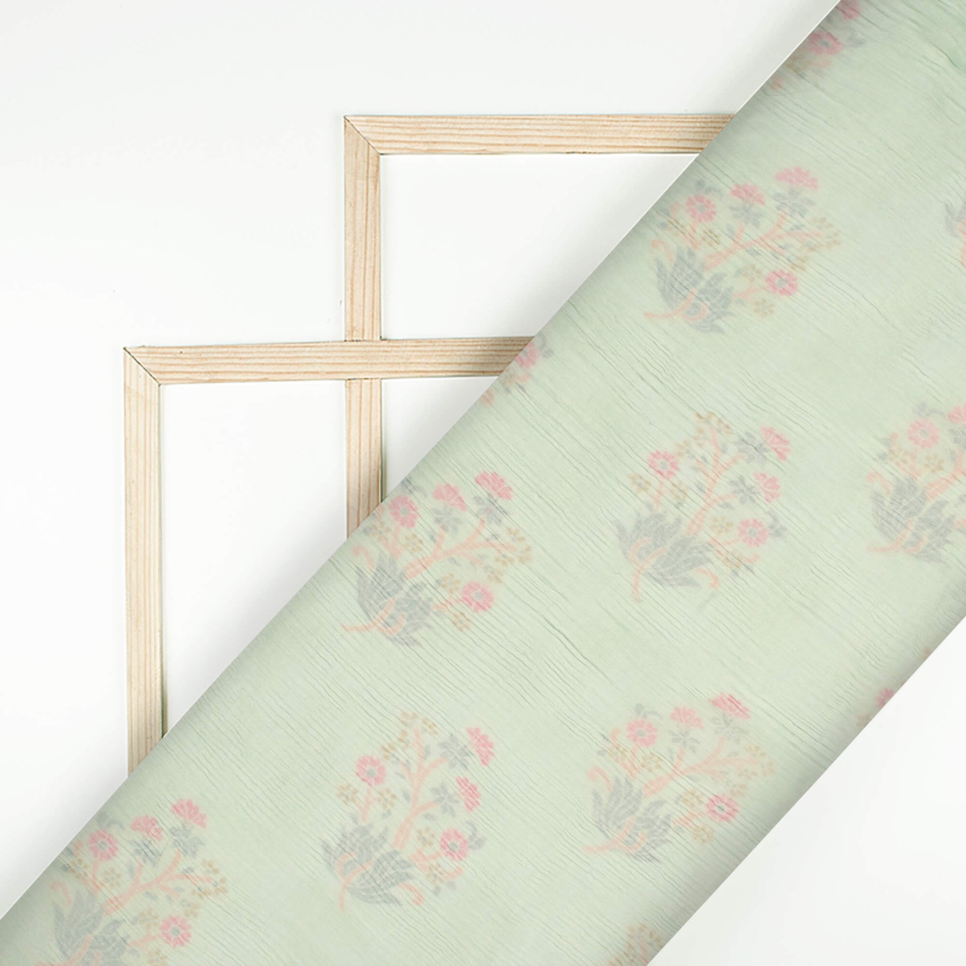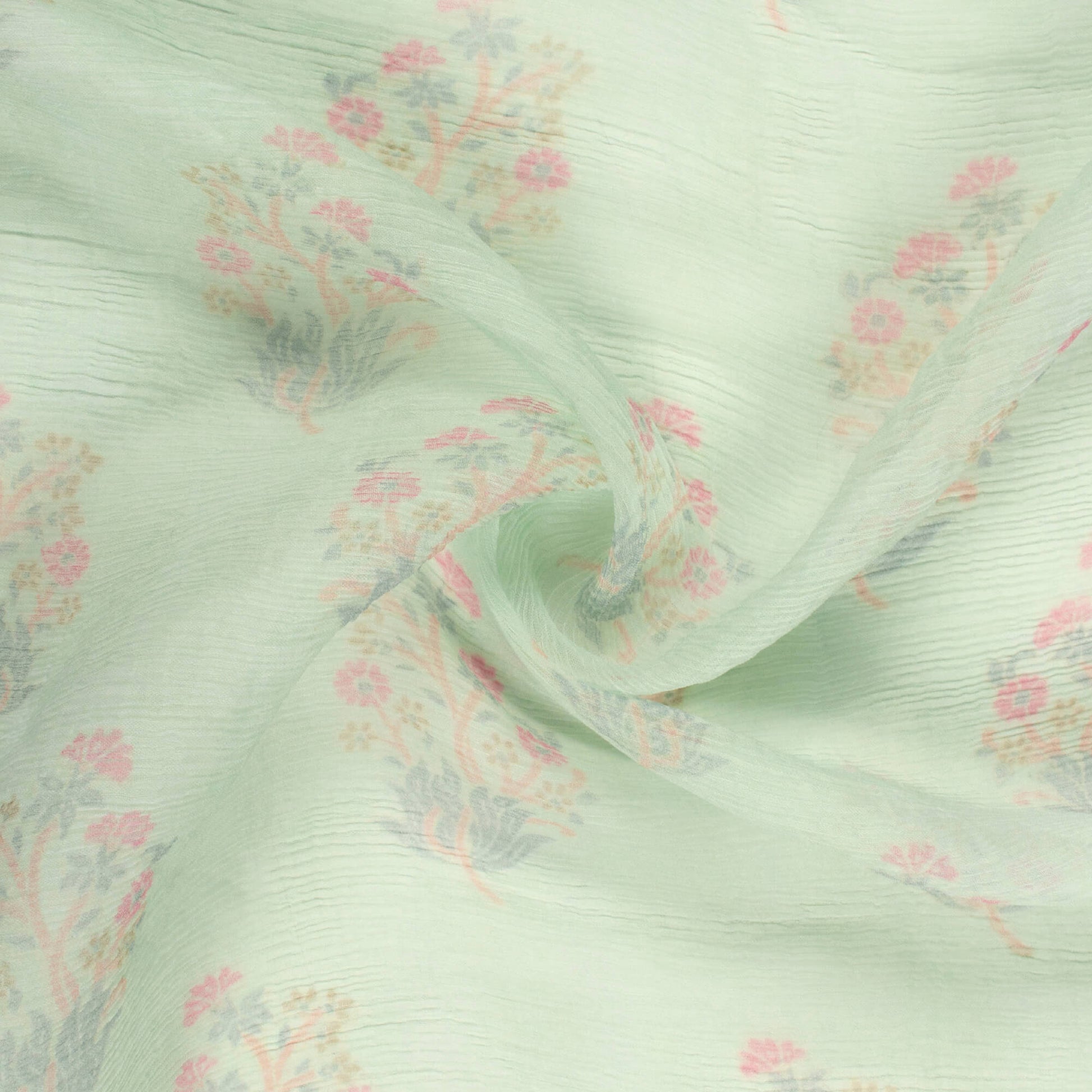 Tea Green And Pink Booti Pattern Digital Print Bemberg Chiffon Fabric