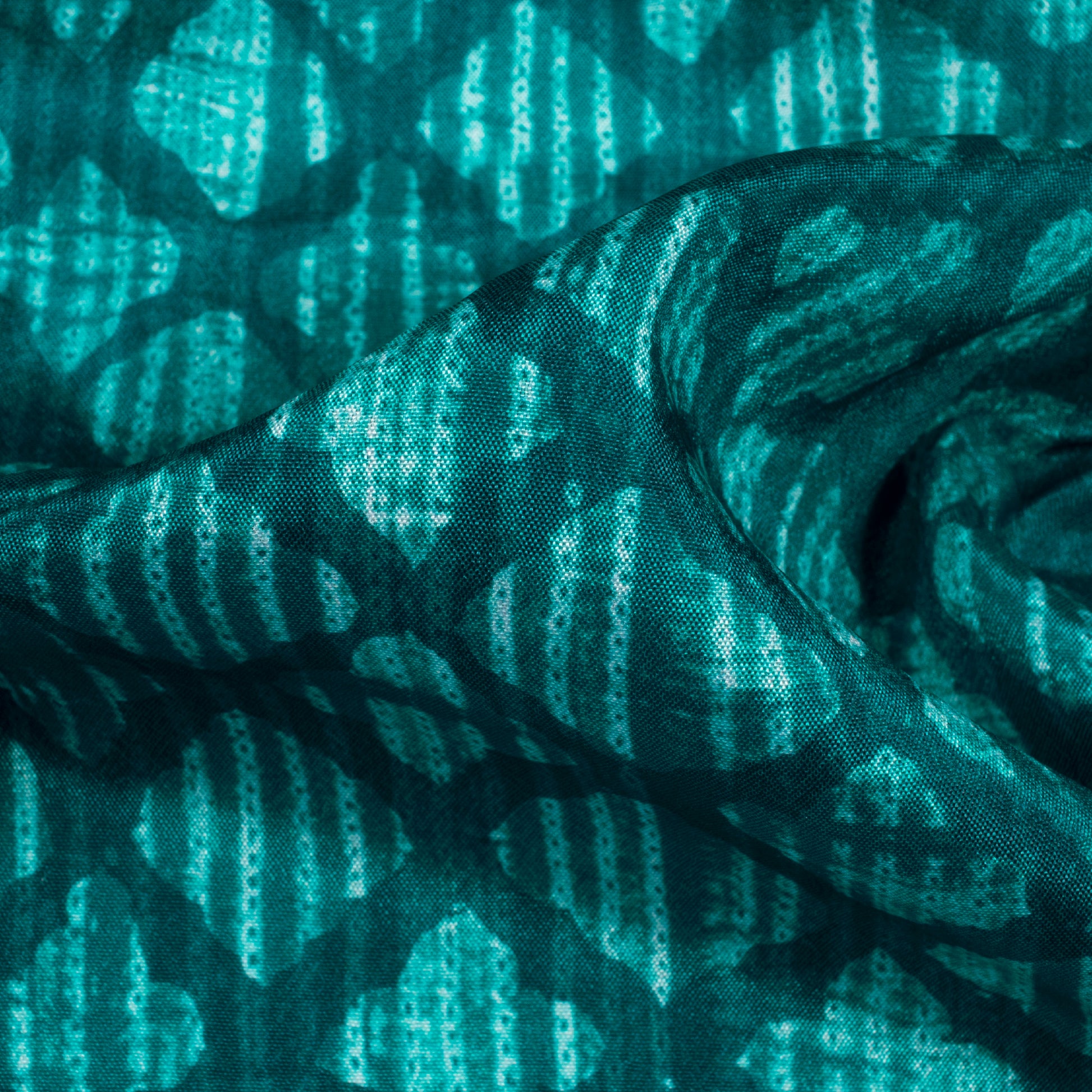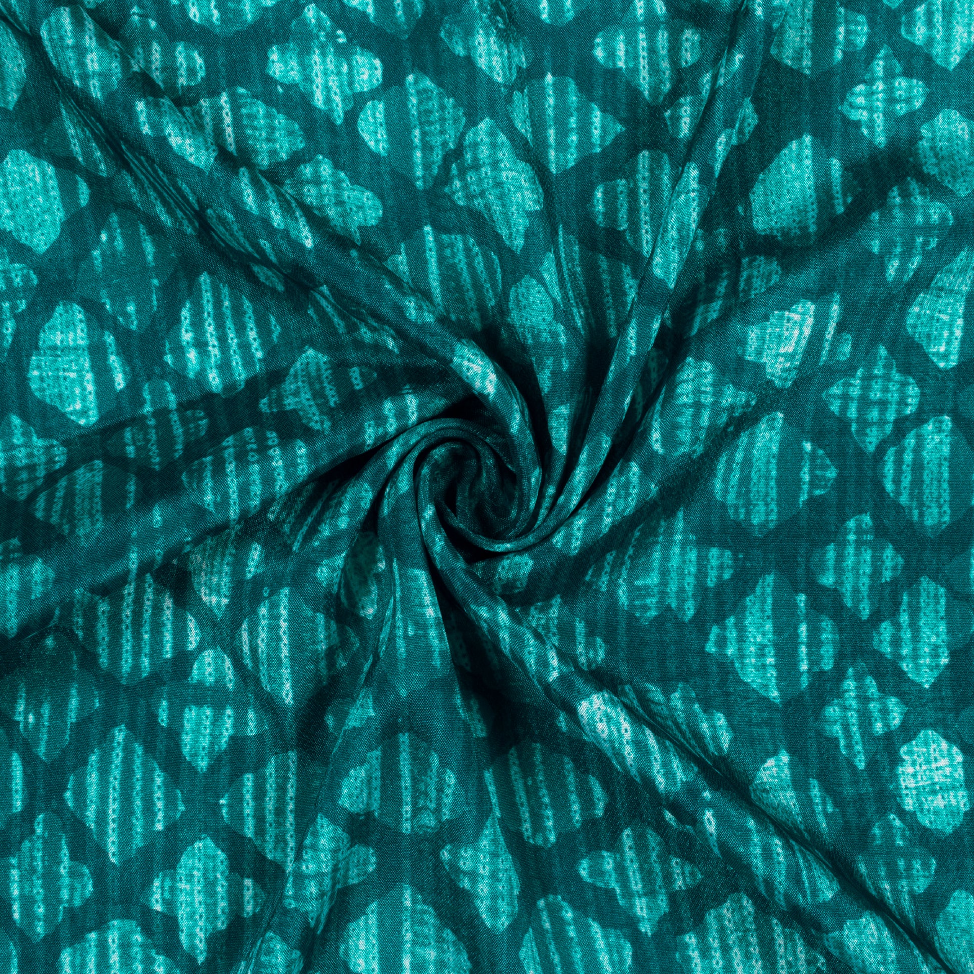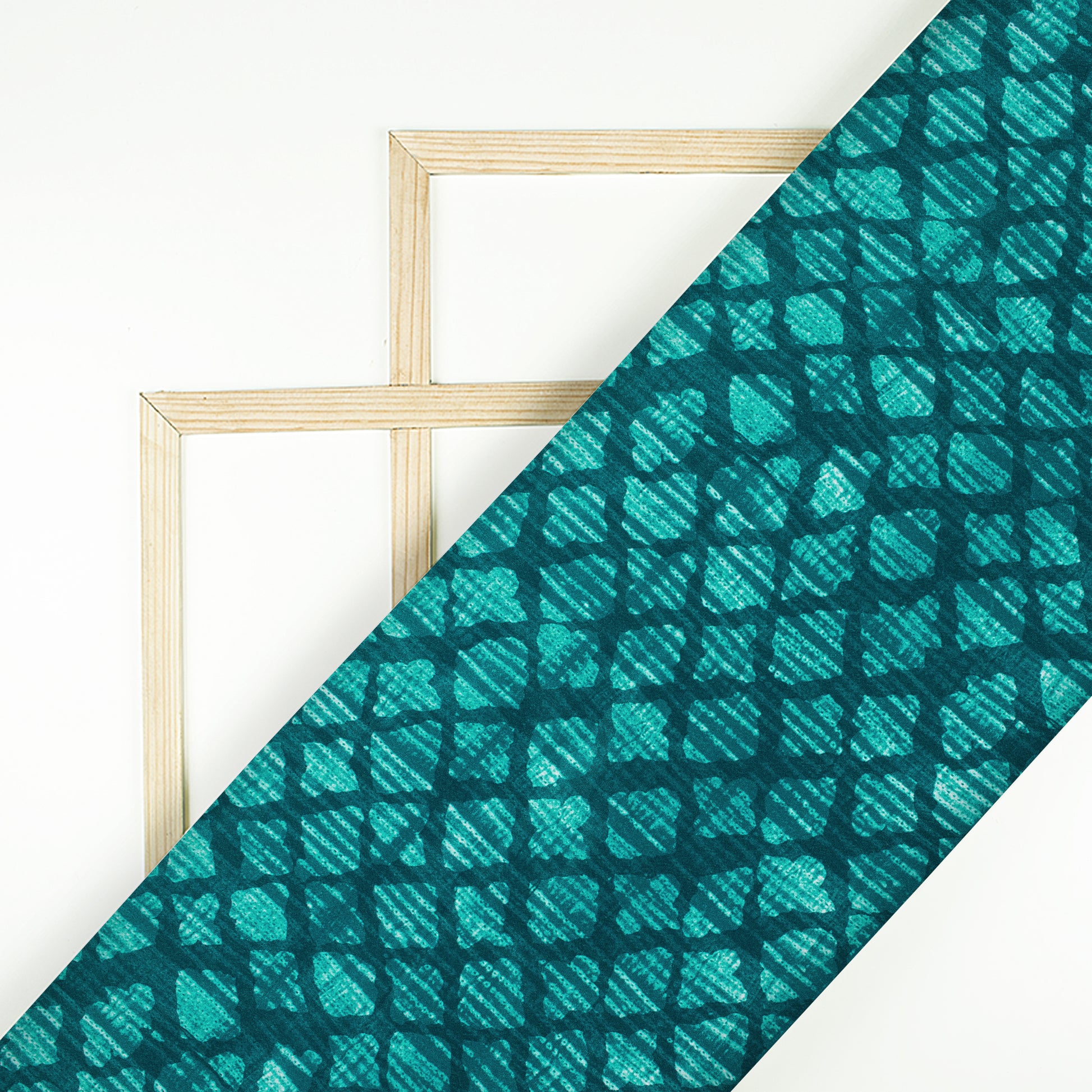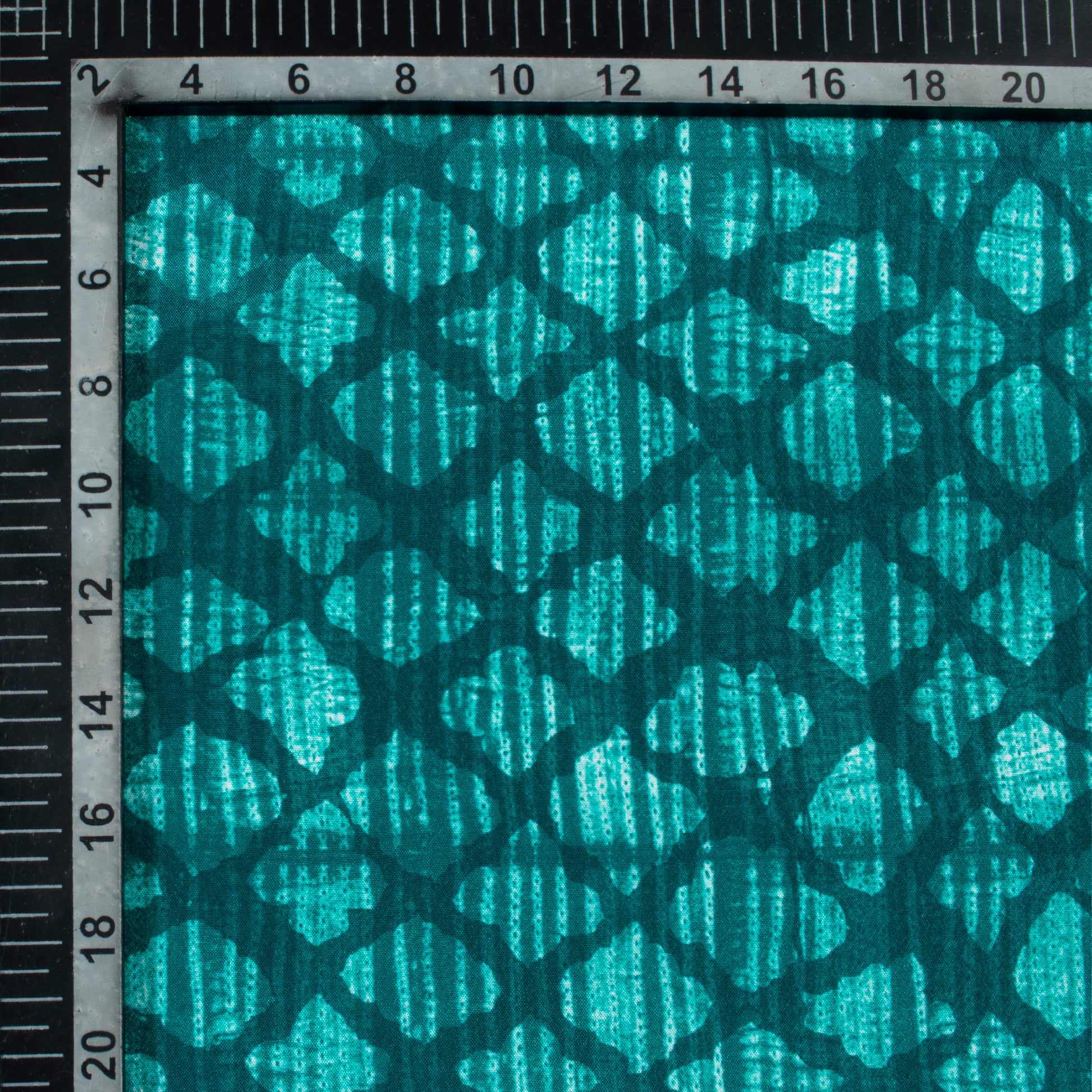 Teal Green Geometric Pattern Digital Print Crepe Silk Fabric