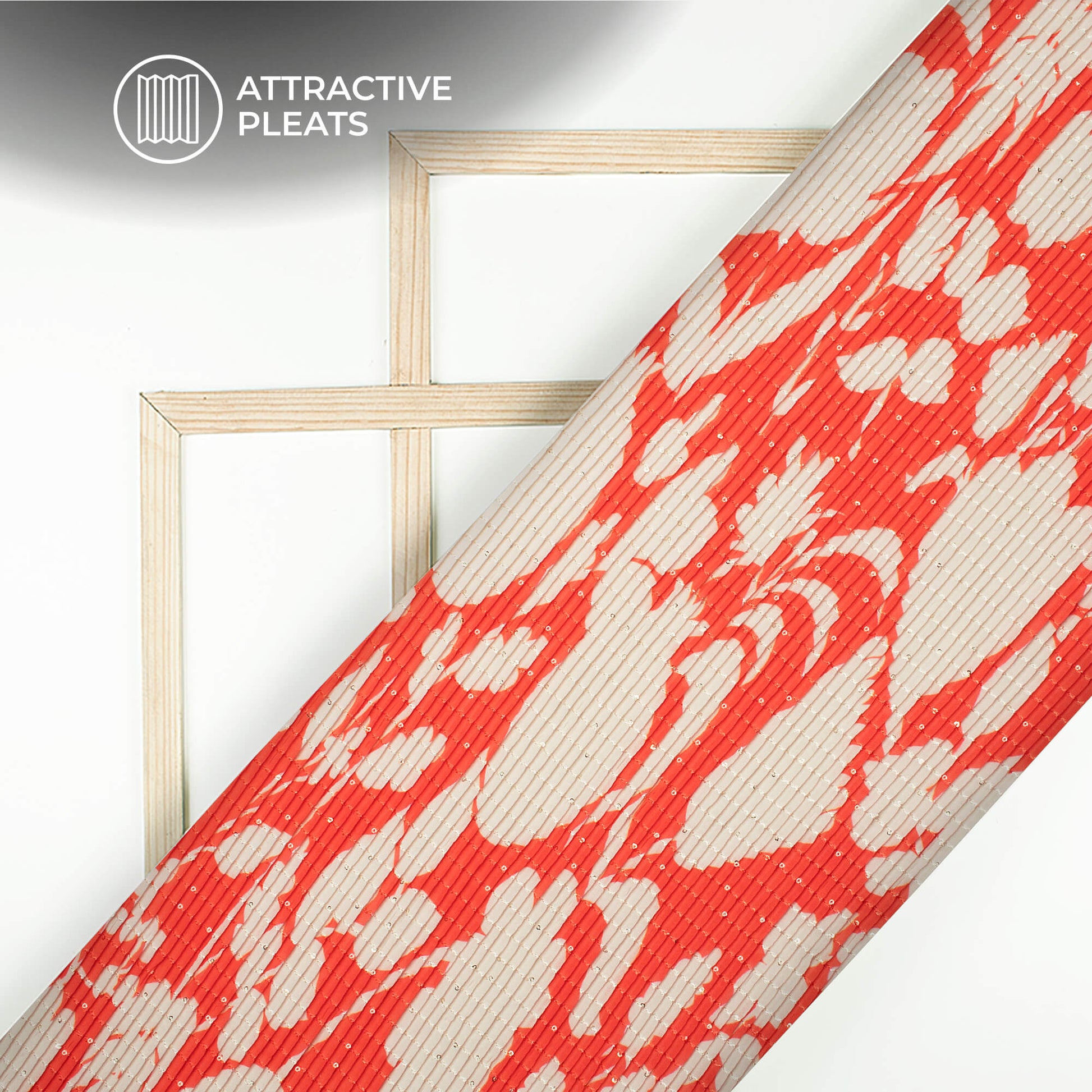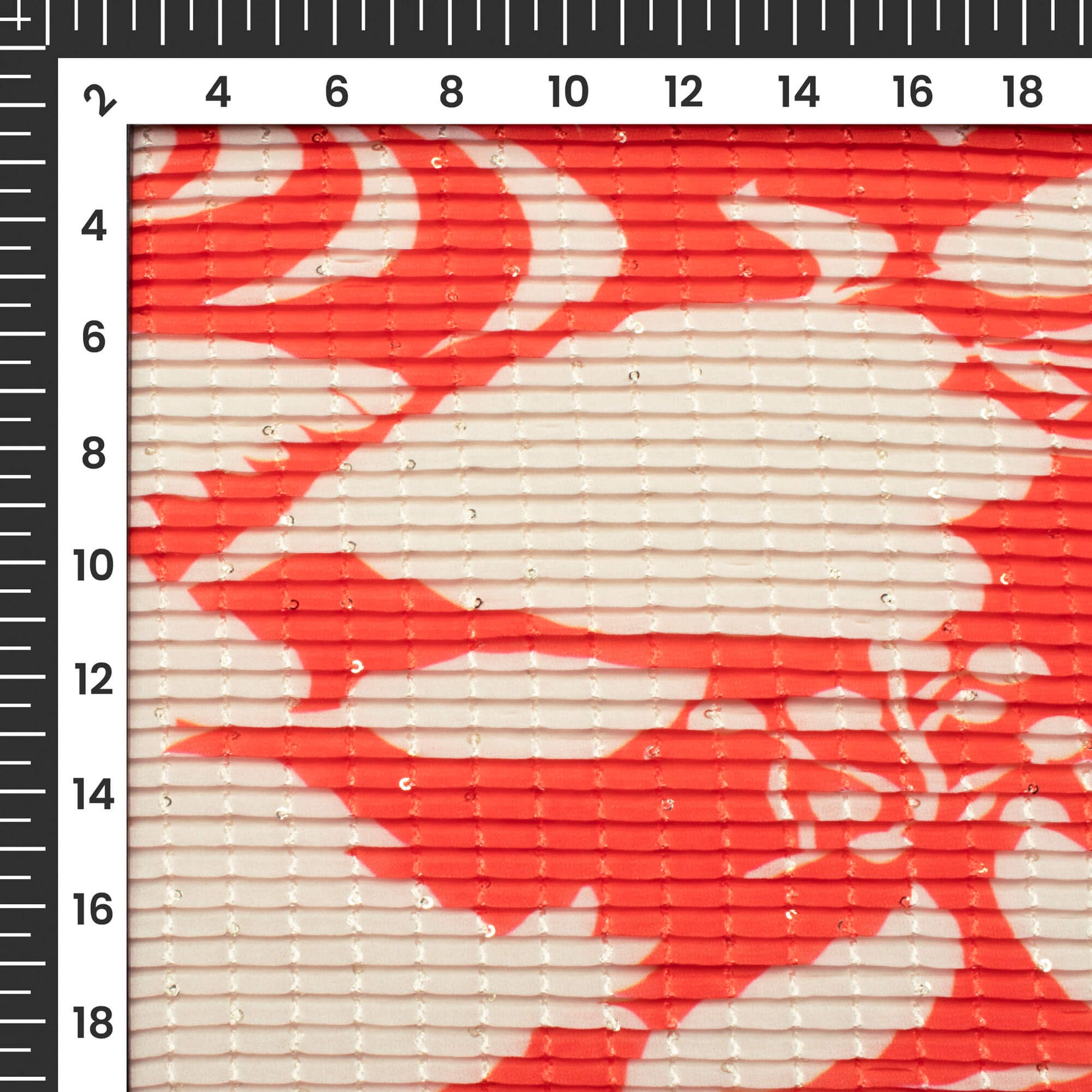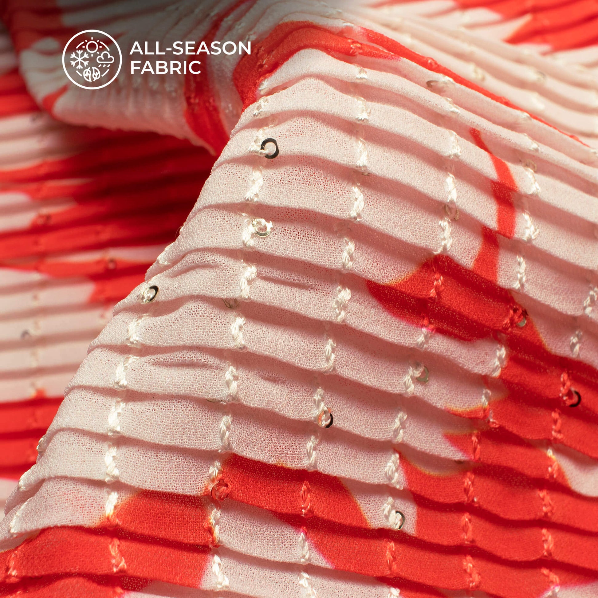Trendy Red Floral Pleated Sequins Georgette Fabric