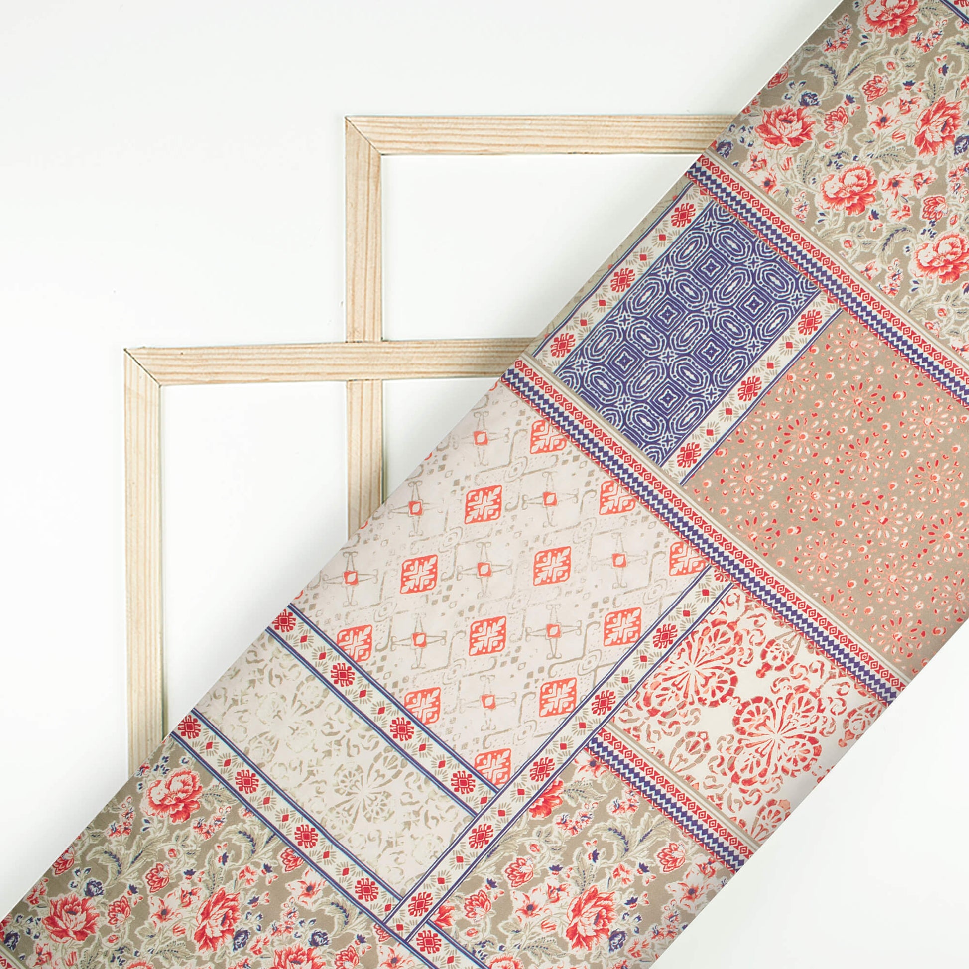 Trout Grey And Red Traditional Pattern Digital Print Viscose Chanderi Fabric