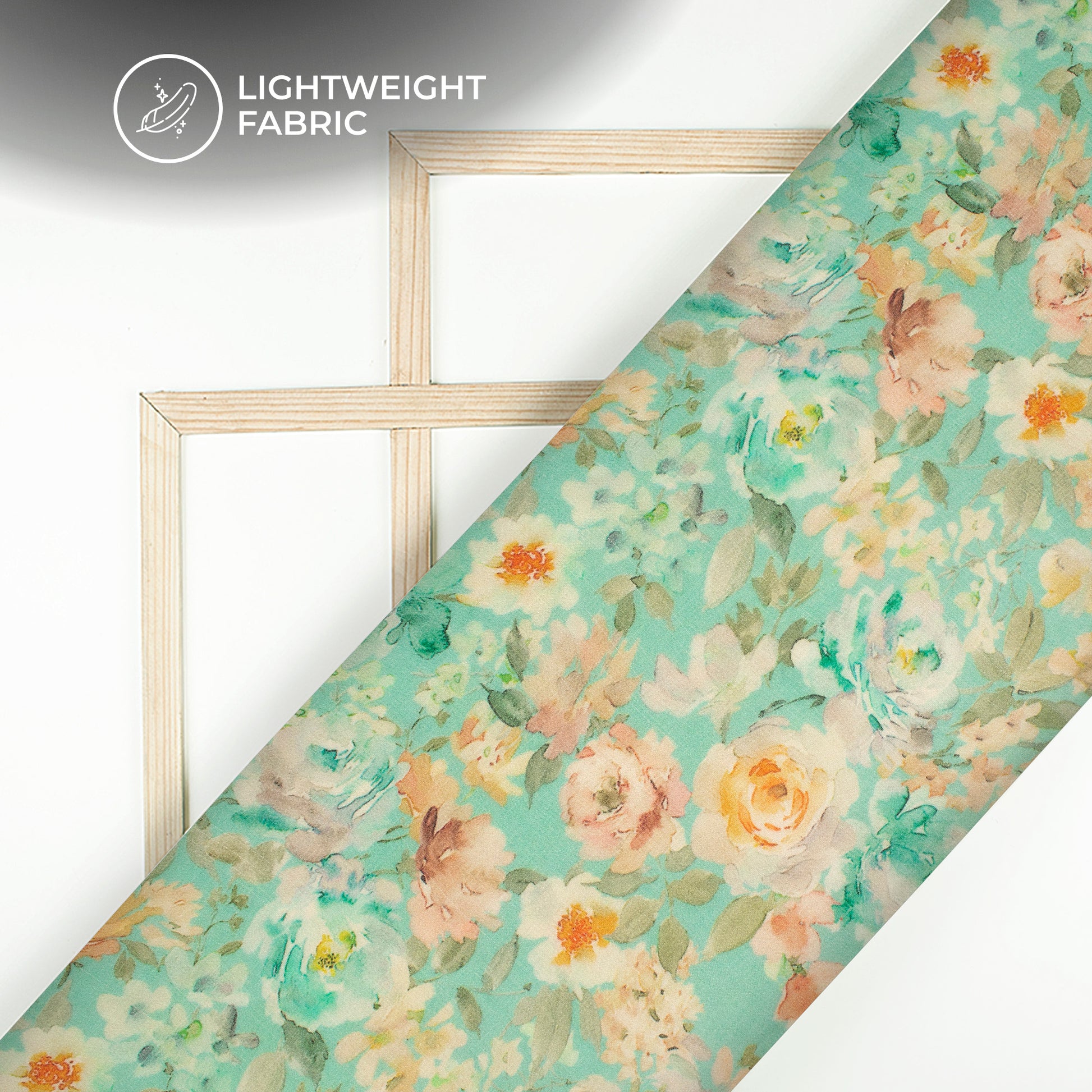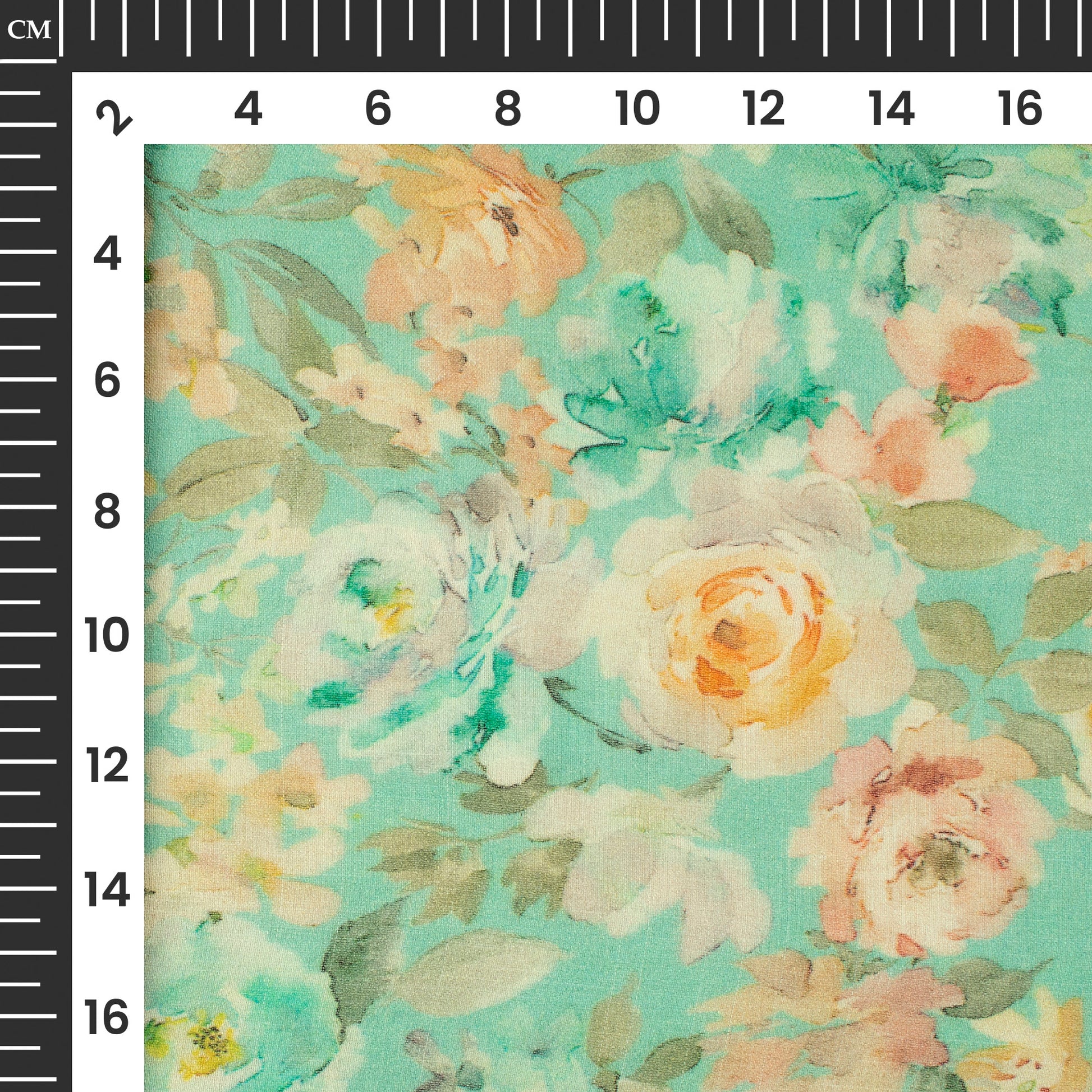 Turquoise Blue And Beige Floral Digital Print Pure Georgette Fabric