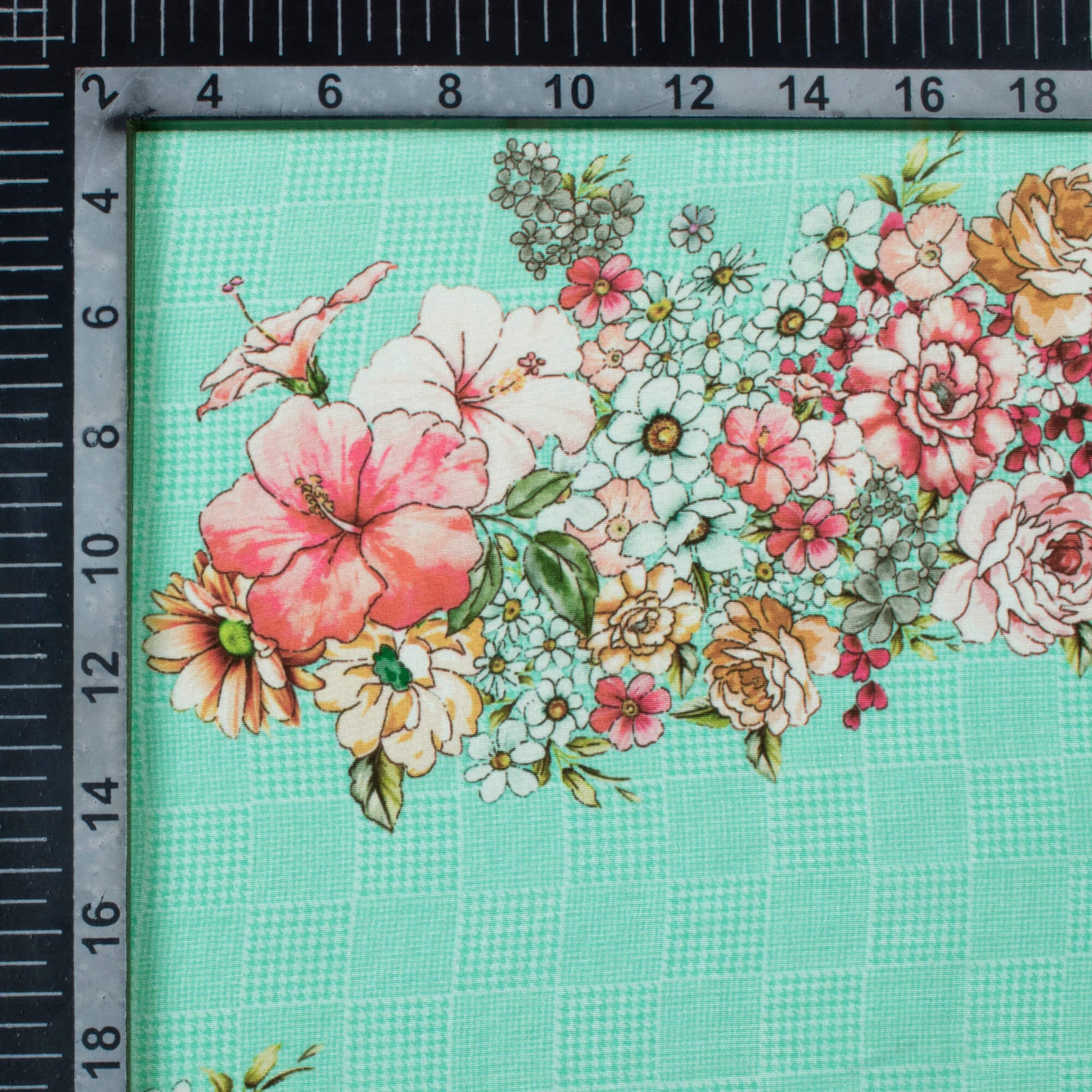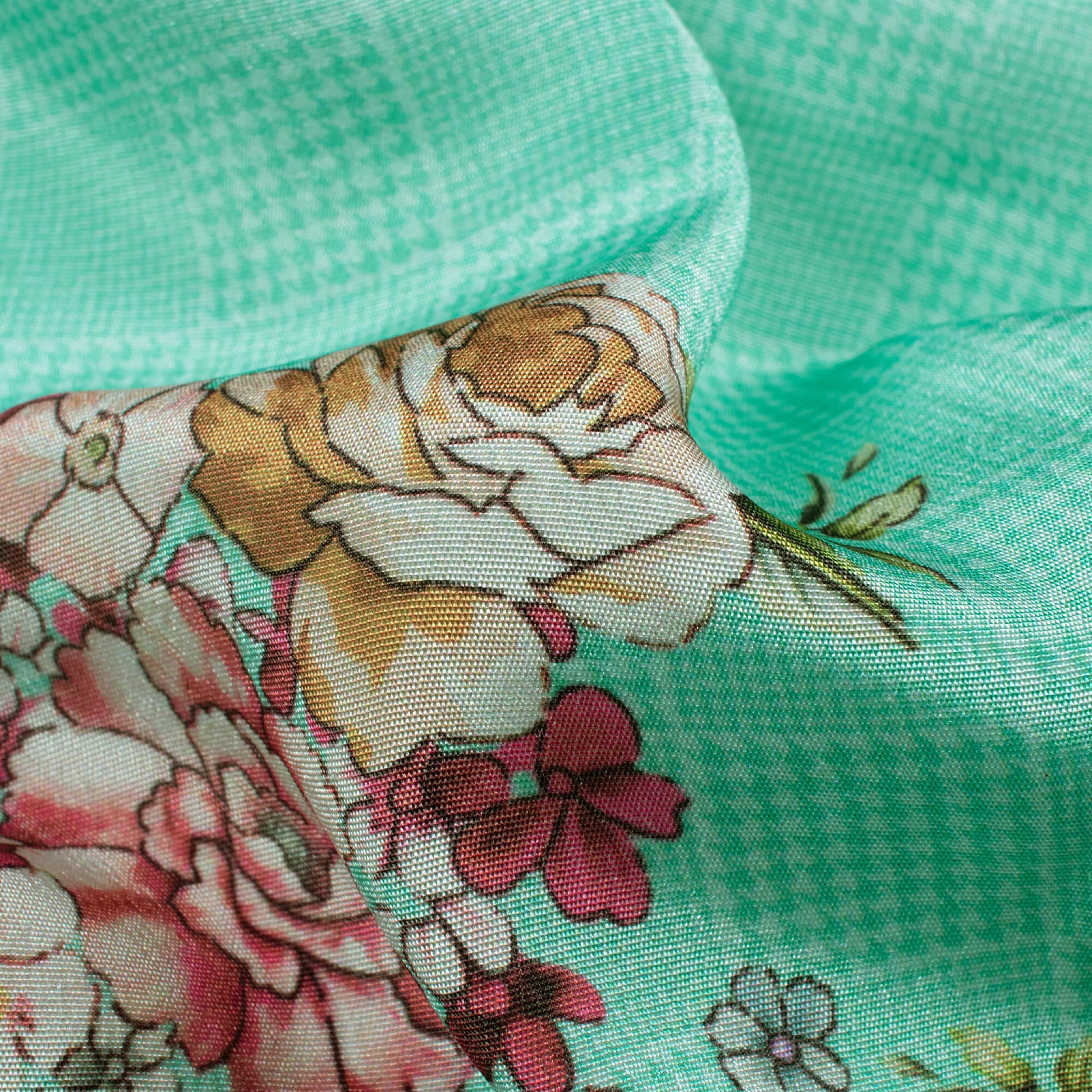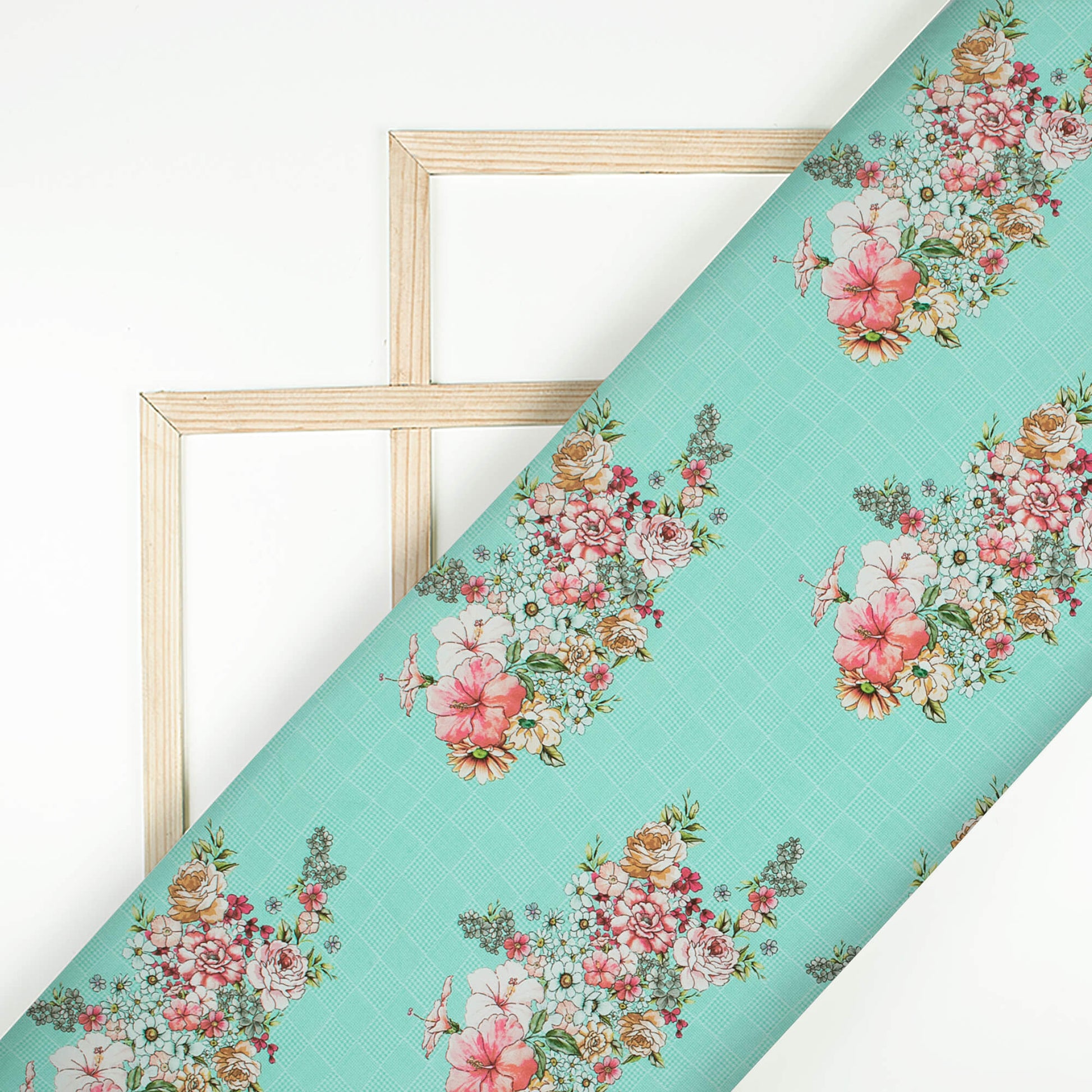 Turquoise Blue And Pink Floral Pattern Digital Print Crepe Silk Fabric