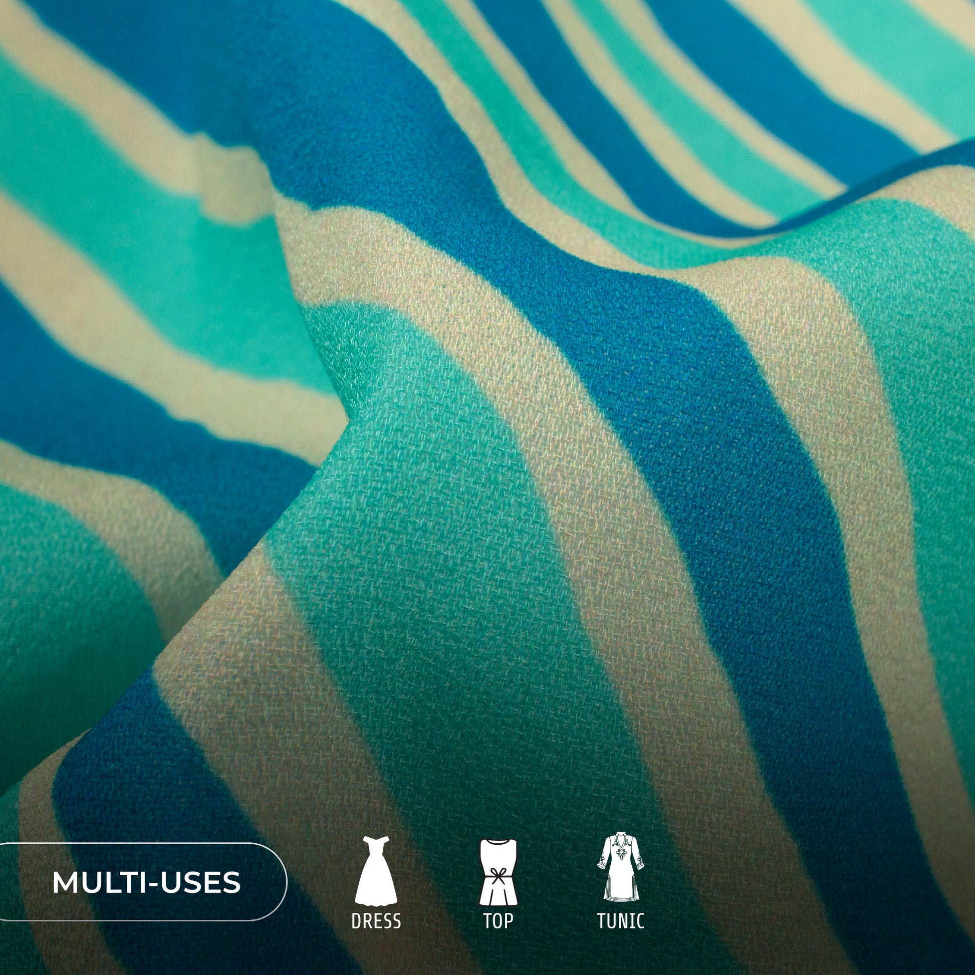 Turquoise Green Leheriya Digital Print Moss Georgette Fabric(Width 56 Inches)