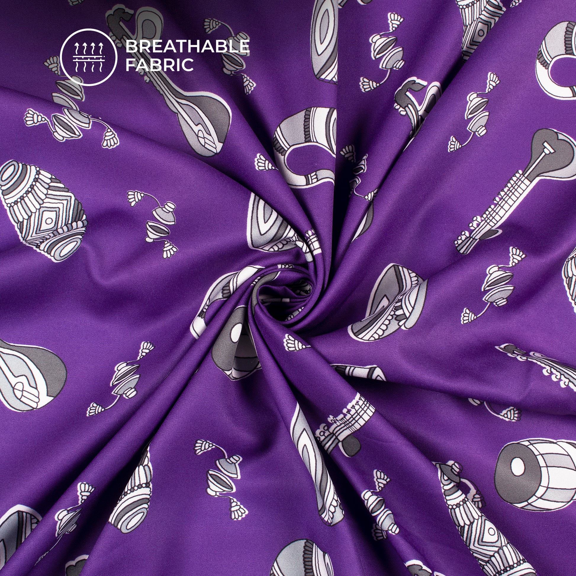 Vilet Purple Quirky Digital Print Butter Crepe Fabric