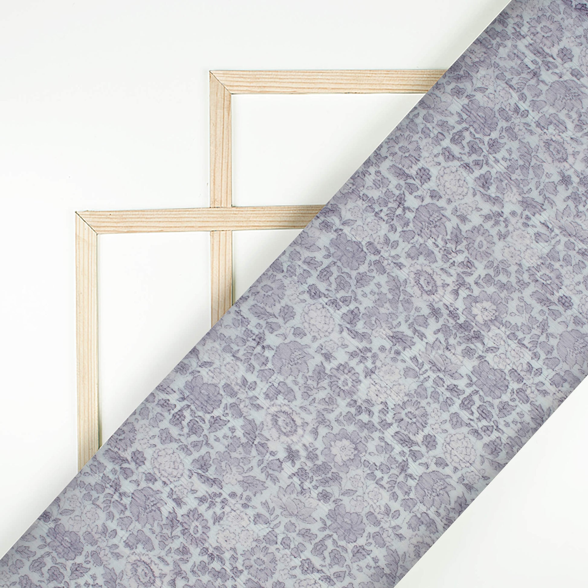 White And Raisin Purple Floral Pattern Digital Print Bemberg Chiffon Fabric