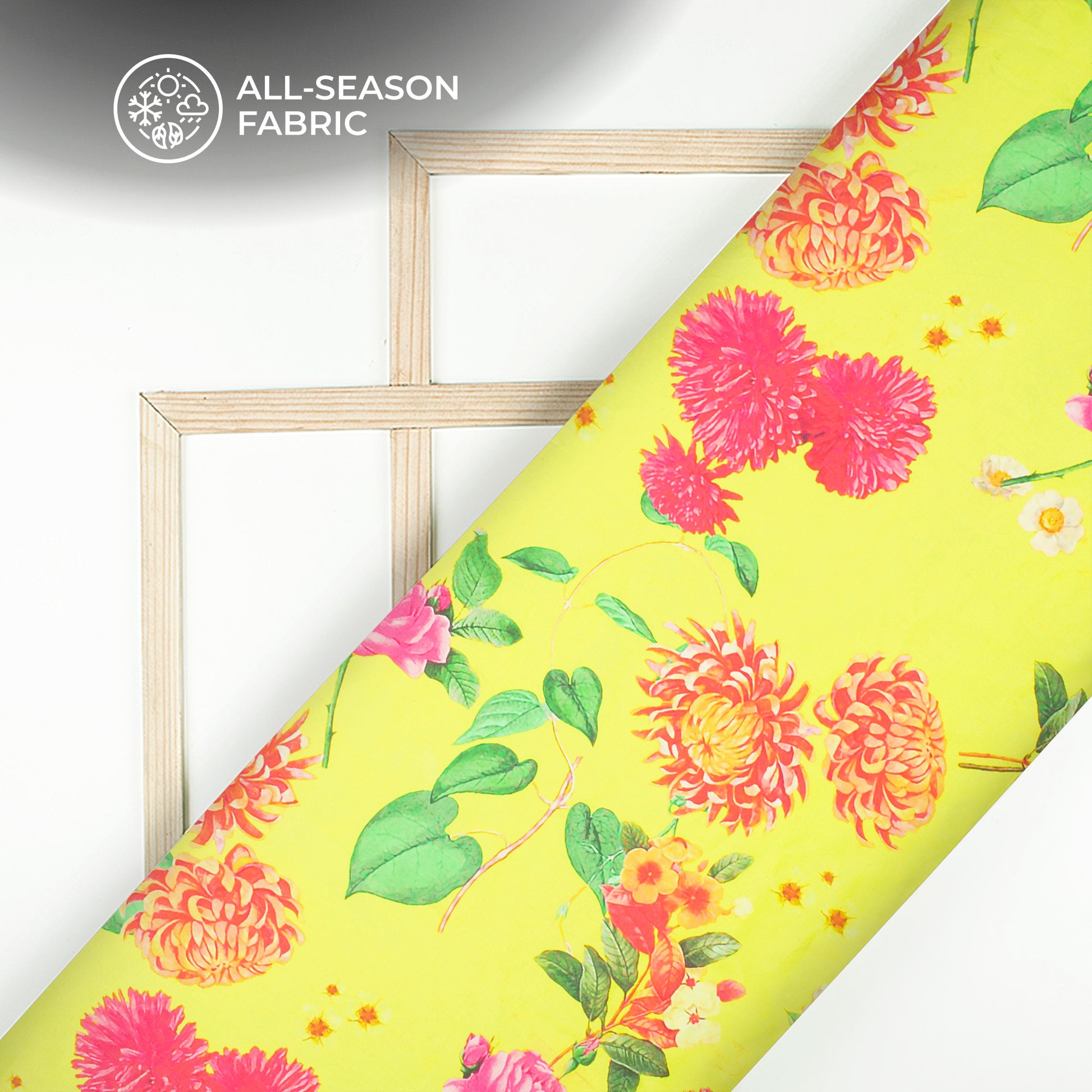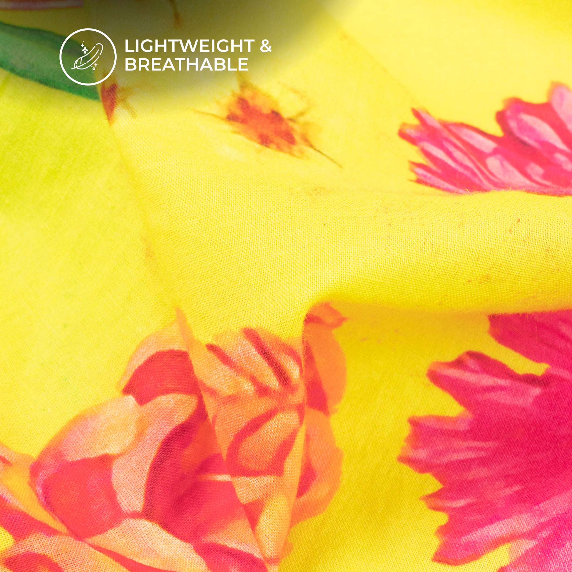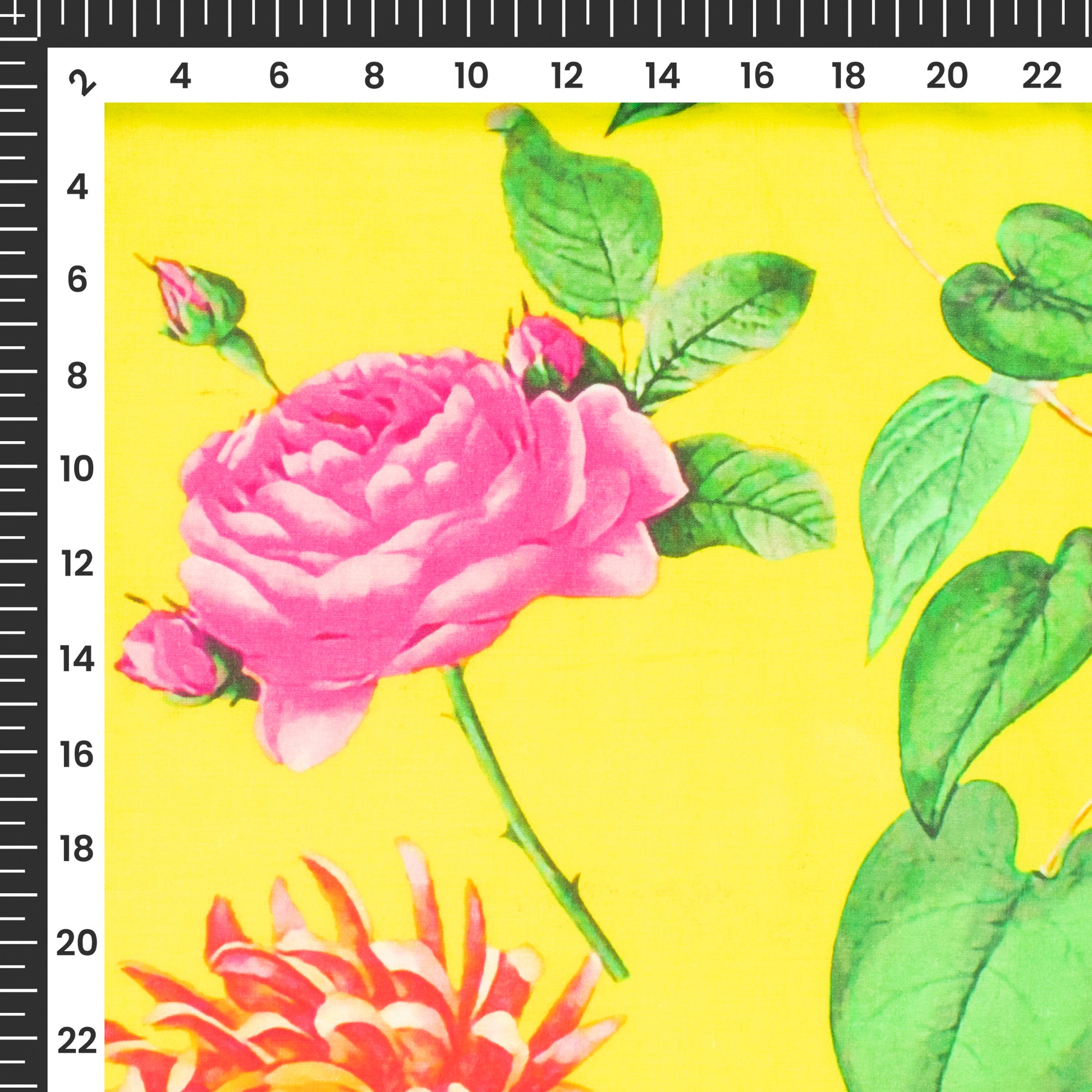 Yellow Rose And Leaf Digital Print Cotton Cambric Fabric