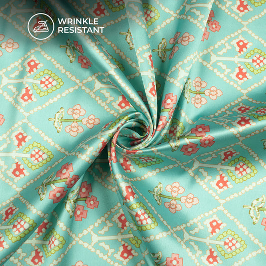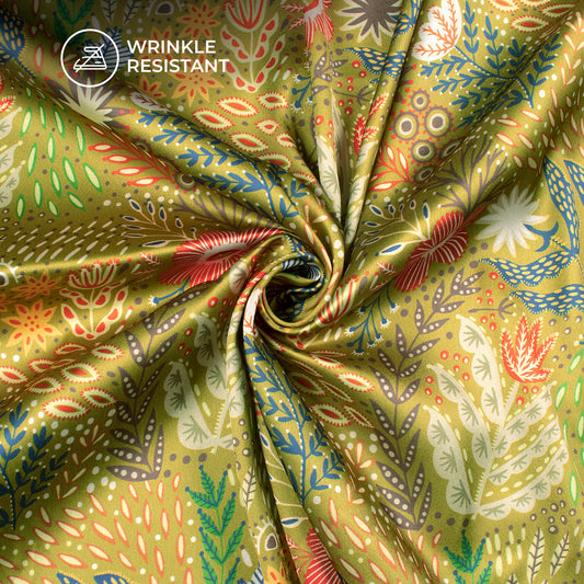 Buy Folk Floral Digital Print Japan Satin Fabric Online - Traditional Print Buy Folk Floral Digital Print Japan Satin Fabric Online - Traditional Print