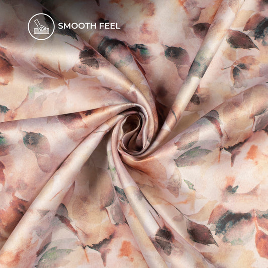 Spanish Pink leaf Abstract Digital Print Charmeuse Satin Fabric (Width 58 Inches) Spanish Pink leaf Abstract Digital Print Charmeuse Satin Fabric (Width 58 Inches)