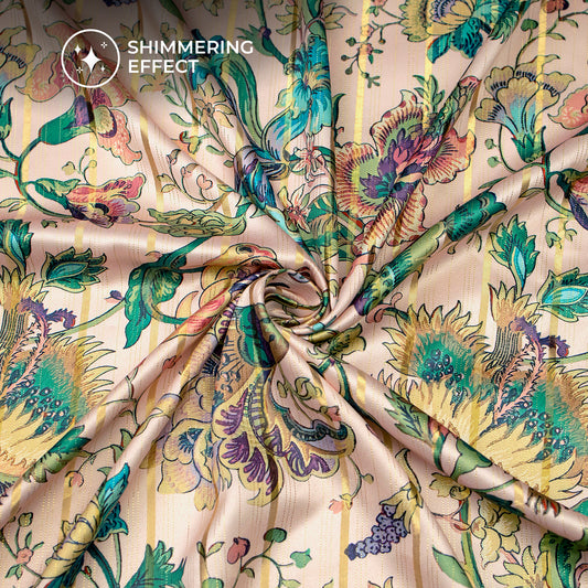 -20% offPlum Purple Floral Digital Print Golden Lurex Satin Fabric Plum Purple Floral Digital Print Golden Lurex Satin Fabric