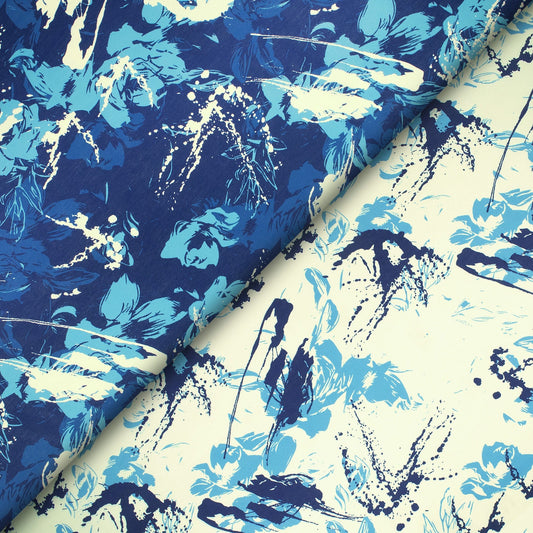 Purssian Blue And White Abstract Digital Print Viscose Rayon Fabric(Width 58 Inches) Purssian Blue And White Abstract Digital Print Viscose Rayon Fabric(Width 58 Inches)