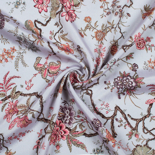 -7% offPearl Grey And Pink Floral Pattern Digital Print Crepe Silk Fabric Pearl Grey And Pink Floral Pattern Digital Print Crepe Silk Fabric