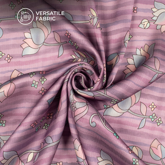 Lavender Purple Floral Digital Print Chiffon Satin Fabric Lavender Purple Floral Digital Print Chiffon Satin Fabric