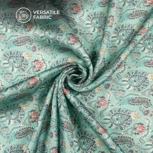Arctic Blue Paisley Digital Print Chiffon Satin Fabric Arctic Blue Paisley Digital Print Chiffon Satin Fabric