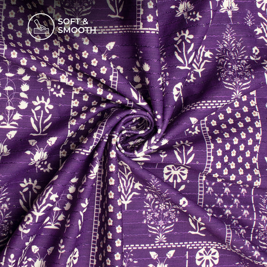 -12% offEminence Purple Floral Digital Print Kota Doria Fabric Eminence Purple Floral Digital Print Kota Doria Fabric