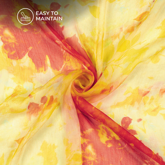 Beautiful Yellow Floral Digital Print Chiffon Satin Fabric Beautiful Yellow Floral Digital Print Chiffon Satin Fabric
