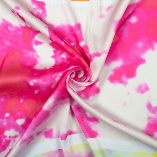 Oyster Beige And Fuchsia Tye And Dye Pattern Digital Print Chiffon Satin Fabric Oyster Beige And Fuchsia Tye And Dye Pattern Digital Print Chiffon Satin Fabric
