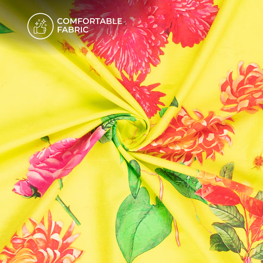-10% offYellow Rose And Leaf Digital Print Cotton Cambric Fabric Yellow Rose And Leaf Digital Print Cotton Cambric Fabric