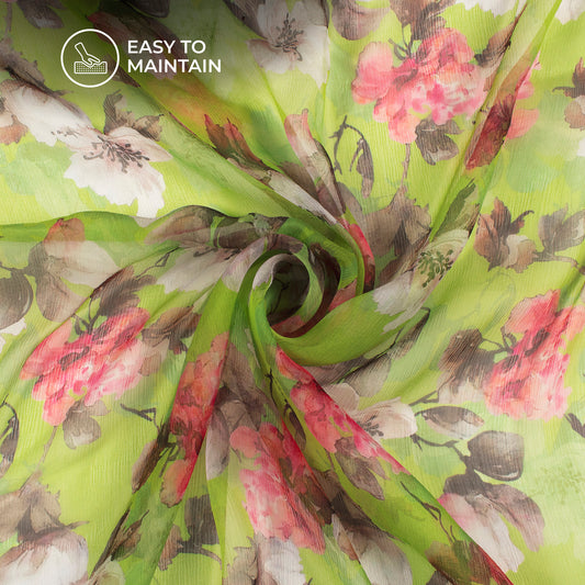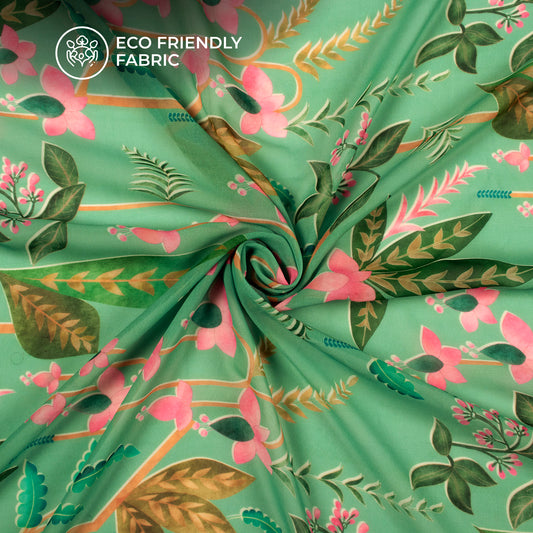 Apple Green Floral Digital Print Blend Pashmina Fabric Apple Green Floral Digital Print Blend Pashmina Fabric