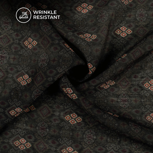 Seaweed Green And Red Ethnic Digital Print Viscose Chanderi Fabric Seaweed Green And Red Ethnic Digital Print Viscose Chanderi Fabric