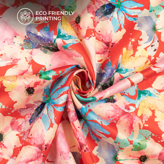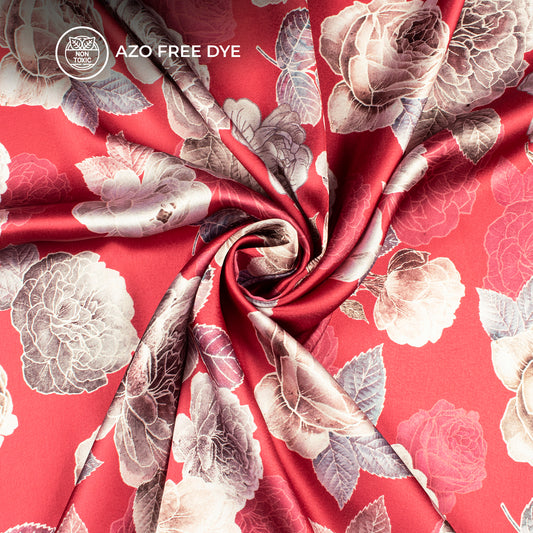 -10% offCherry Red Floral Digital Print Japan Satin Fabric Cherry Red Floral Digital Print Japan Satin Fabric