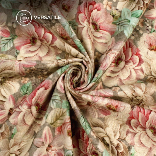 Fuscia Pink Floral Digital Print Viscose Gaji Silk Fabric Fuscia Pink Floral Digital Print Viscose Gaji Silk Fabric