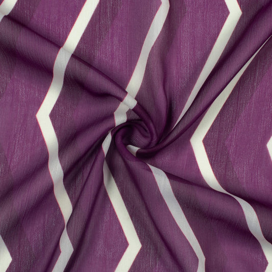 Wine Purple And Cream Chevron Pattern Digital Print Chiffon Fabric Wine Purple And Cream Chevron Pattern Digital Print Chiffon Fabric