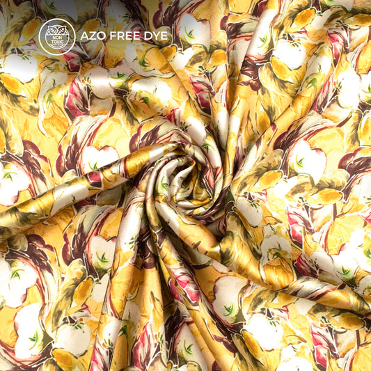 -10% offGolden Yellow Floral Digital Print Japan Satin Fabric Golden Yellow Floral Digital Print Japan Satin Fabric