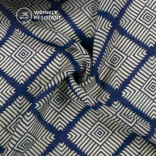 Royal Blue And White Geometric Digital Print Viscose Chanderi Fabric Royal Blue And White Geometric Digital Print Viscose Chanderi Fabric