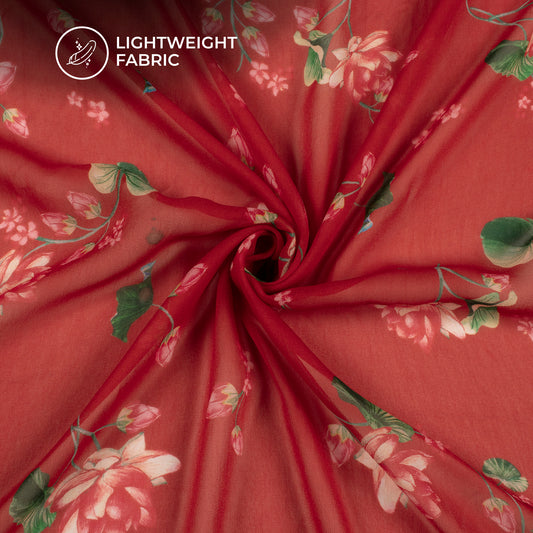 Cherry Red Floral Digital Print Pure Georgette Fabric Cherry Red Floral Digital Print Pure Georgette Fabric