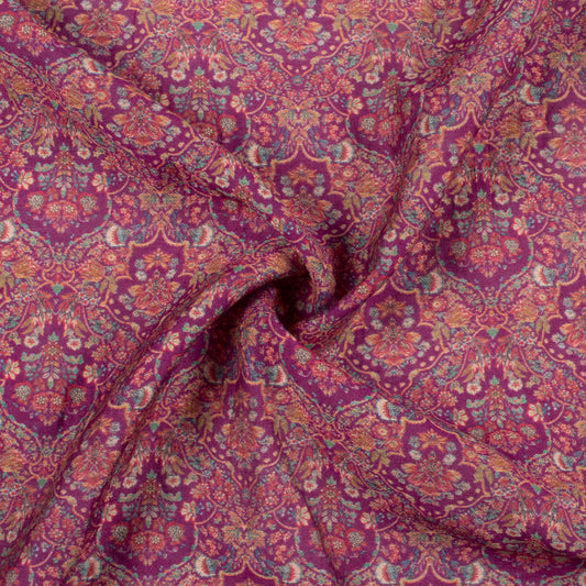 Sangria Purple And Dark Orange Floral Pattern Digital Print Viscose Chanderi Fabric Sangria Purple And Dark Orange Floral Pattern Digital Print Viscose Chanderi Fabric