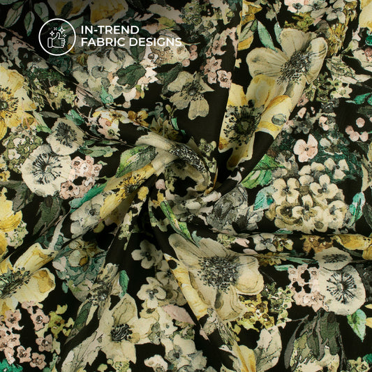 -20% offFlaxen Yellow And Black Floral Digital Print BSY Crepe Fabric Flaxen Yellow And Black Floral Digital Print BSY Crepe Fabric